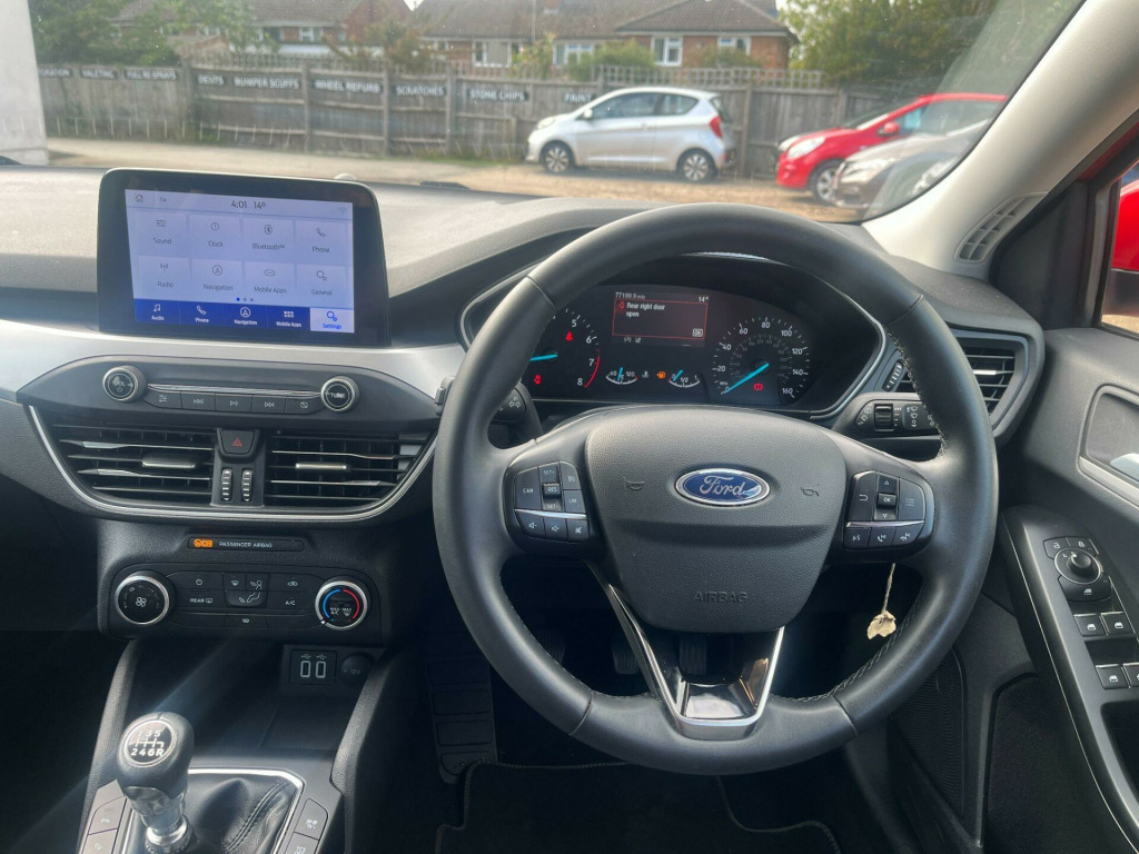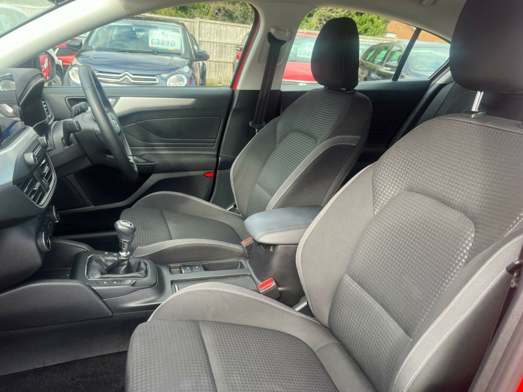 Discover this 2021 Ford Focus T Zetec, a well presented example of this popular model. Powered by an efficient 1.0 litre petrol engine, this Euro 6 compliant vehicle offers a smooth driving experience. It comes equipped with the Convenience Pack, which includes helpful rear parking assistance and a camera, making manoeuvring a breeze. Inside, you'll find the Ford SYNC system featuring an 8 inch TFT touchscreen, complete with Android Auto and Apple CarPlay for seamless smartphone integration. The car also benefits from automatic headlights that switch on and off as needed, and manual air conditioning to keep you comfortable in all conditions.This Ford Focus Zetec stands out with its thoughtful features designed to enhance your daily journeys. The inclusion of both Android Auto and Apple CarPlay means you can easily access your favourite apps, navigation, and music directly through the car's touchscreen, offering a more connected and convenient drive compared to many other vehicles. The automatic headlights and rear parking camera further add to the ease of use, providing peace of mind and practicality for everyday driving. nvenience pack, 16in alloy wheels - 5x2 spoke - sparkle silver, abs - anti-lock braking system, acoustic laminated windscreen, airbags - driver and front passenger, airbags - front side impact, airbags - front and rear side curtain, alarm - thatcham category 1 with volume sensing and perimeter, body colour bumpers, bright finish on upper door line, centre console - premium with sliding armrest - cupholder with sliding cover - 12v front power point, child proof rear door locks, cruise control with speed limiter, door handles - body colour, door mirrors - heated - electric - integrated side indicators - body coloured, esc - electronic stability control, electric parking brake, emergency assistance, floor mats - front velour, fog light bezel - bright, ford easy fuel system, ford sync with 8in tft touchscreen, fordpass connect, front fog lights with cornering function, front lower grille - self colour, front passenger airbag deactivation switch, front passenger seat - rotary recliner, front seat - drivers manual lumbar support adjustment, front seat - passengers manual fore-aft adjustment, front seatback map pockets - driver and passenger, front seats - drivers manual rotary recliner seat, front seats - sports style v-shape with high bolster, front upper grille - silver bars with chrome surround, front and rear seatbelt minder, gearshift knob - leather-trimmed, halogen reflector headlights, headlight bezel - aluminium, headlights - automatic on-off, hill start assist, intelligent speed assistance, led daytime running lights, lane keeping aid with lane departure warning, load compartment area cover, load floor carpet, locking wheel nuts, manual air conditioning, mykey, overhead console - medium length with front and rear led courtesy lights, post collision braking, power steering, pre-collision assist with autonomous emergency braking and pedestrian-cyclist detection, quickclear heated windscreen, rear centre headrest, rear fog lamps, rear seat - 60-40 split folding seats, rear seat fixed cushion, rear spoiler - body colour with centre high mounted stop light, remote central locking and engine immobiliser, seats - drivers manual height and fore-aft adjustment, seats - isofix mounting provision for child seats, selectable drive mode, side skirts - self colour, spare wheel - mini steel, steering column - rake and reach adjustment, steering wheel - 3-spoke - leather trimmed, tailgate wash-wipe, traction control - tc, trip computer, tyre pressure monitoring system, windows - electrically operated front and rear with one touch opening and closing, wipers - standard with 6 speed interval settings