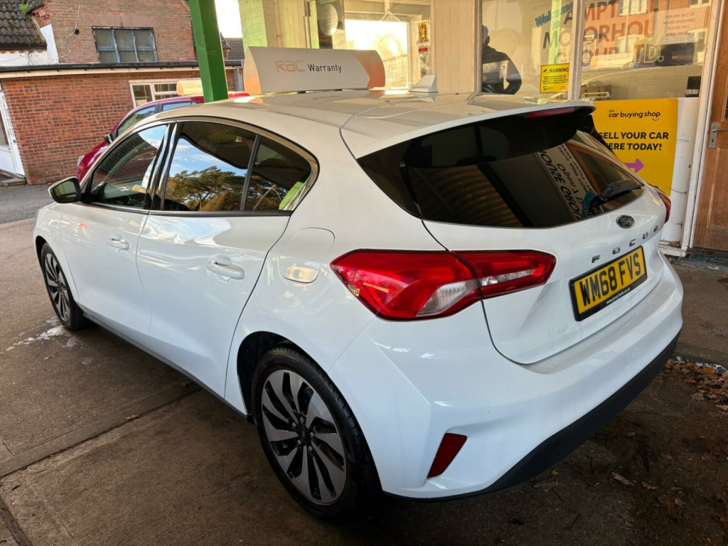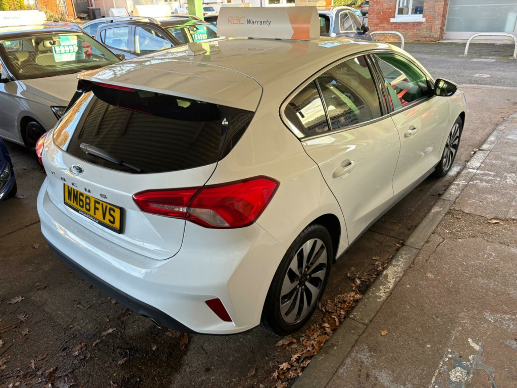 This 2018 Ford Focus Zetec offers a superb blend of modern technology and efficient performance, making it an excellent choice for everyday driving. Powered by a responsive 1.0 litre petrol engine, this Euro 6 compliant model is designed with efficiency in mind, contributing to its low CO2 emissions. Inside, you'll find the Ford SYNC3 DAB Radio system, complete with a clear 6.5 inch touchscreen that seamlessly integrates with your smartphone through Android Auto and Apple CarPlay. The convenience of automatic headlights further enhances the driving experience, ensuring optimal visibility in varying conditions.The Focus Zetec stands out with its impressive acceleration, reaching 0 to 62 miles per hour in just 10.0 seconds, demonstrating its capable performance. These highlights indicate that this Ford Focus offers a more refined and connected driving experience compared to many other vehicles in its class. Its economical engine and advanced infotainment system make it a practical and enjoyable car for any journey. in alloy wheels - 5x2 spoke - sparkle silver, air conditioning - manual, airbags - driver and front passenger, airbags - front side impact, airbags - front and rear side curtain, anti-lock braking system - abs with electronic brake force distribution - ebd, automatic headlights, body colour bumpers, centre console with armrest, courtesy light - front and rear passengers - overhead halogen and load compartment, cruise control with speed limiter, door handles - body colour, door mirrors - heated - electric - integrated side indicators - body coloured, drivers seat lumbar adjust, epas - electric power assisted steering, electric parking brake, emergency brake warning, enhanced electronic stability control - esc with traction control - emergency brake assist - eba - hill start assist - hsa, ford easy fuel - capless refuelling system, ford eco mode - driver information system, ford sync3 dab radio with floating 6.5in touchscreen, front floor mats, front fog lights with cornering function, front passenger airbag deactivation switch, front seat - drivers manual height and fore-aft adjustment, front seat - passengers manual fore-aft adjustment, front seats - sports style, front suspension - independent with macpherson struts and anti-roll bar, front and rear seatbelt minder, gear knob - leather, headlights - halogen, ips - intelligent protection system, intelligent speed assistance, led daytime running lights, lane keeping aid with lane departure warning, locking wheel nuts, mykey, post collision braking, pre-collision assist with autonomous emergency braking and pedestrian-cyclist detection, pre-collision assist with pedestrian detection, quickclear heated windscreen, rear centre headrest, remote central locking and engine immobiliser, seats - isofix mounting provision for child seats, selectable drive mode, spare wheel - mini steel, steering column - rake and reach adjustment, steering wheel - 3-spoke leather trimmed with audio controls, thatcham category 1 alarm, trailer sway control, trip computer, tyre pressure monitoring system, windows - electrically operated front and rear with one touch opening and closing, wipers - standard with 6 speed interval settings