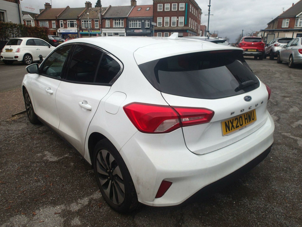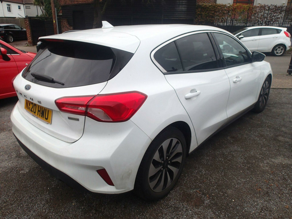 This 2020 Ford Focus T Zetec offers excellent value with a 6 month warranty and partial service history. This popular hatchback is equipped with a 1.0 litre petrol engine and meets Euro 6 emissions standards. Inside, you'll find Ford SYNC with an 8 inch touchscreen, compatible with both Android Auto and Apple CarPlay, alongside manual air conditioning. The Zetec trim also benefits from automatic on off headlights for added convenience.With an impressive fuel economy of 53 miles per gallon, this Focus is designed to be economical. Its low CO2 emissions and low insurance group rating further contribute to its affordability, making it a sensible choice for many drivers. The generous boot space ensures practicality for everyday needs and longer journeys, highlighting its versatility compared to other vehicles in its class., in alloy wheels - 5x2 spoke - sparkle silver, airbags - driver and front passenger, airbags - front side impact, airbags - front and rear side curtain, body colour bumpers, centre console with armrest, cruise control with speed limiter, door handles - body colour, door mirrors - heated - electric - integrated side indicators - body coloured, electric parking brake, ford easy fuel system, ford sync with 8in tft touchscreen, front floor mats, front passenger airbag deactivation switch, front seat - drivers manual lumbar support adjustment, front and rear seatbelt minder, halogen reflector headlights, headlights - automatic on-off, led daytime running lights, lane keeping aid with lane departure warning, leather trimmed gear knob, manual air conditioning, mykey, post collision braking, pre-collision assist with autonomous emergency braking and pedestrian-cyclist detection, pre-collision assist with pedestrian detection, quickclear heated windscreen, rear centre headrest, remote central locking and engine immobiliser, selectable drive mode, spare wheel - mini steel, steering wheel - 3-spoke - leather trimmed, thatcham category 1 alarm, trip computer, tyre pressure monitoring system, windows - electrically operated front and rear with one touch opening and closing