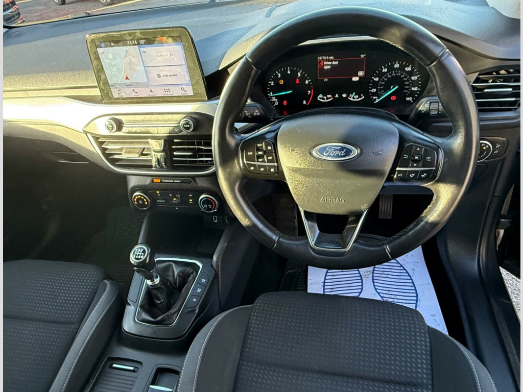 This 2018 Ford Focus Zetec T is a standout choice with remarkably low mileage for its age, having covered just 43,000 miles. Powered by an efficient 1.0 litre petrol engine, this Euro 6 compliant model offers a smooth driving experience. Inside, you'll find a manual air conditioning system to keep you comfortable, and the Ford SYNC3 DAB radio with a 6.5 inch floating touchscreen is ready to connect your devices, offering seamless integration with Android Auto and Apple CarPlay. Automatic headlights are also included, providing added convenience and safety.The Ford Focus Zetec T excels in several areas, making it a superior option compared to other vehicles in its class. Its low CO2 emissions are a significant advantage, contributing to lower running costs and environmental impact. Furthermore, its brisk acceleration, achieving 0 to 62 miles per hour in just 10.0 seconds, demonstrates a responsive and engaging performance from its 1.0 litre engine. This combination of efficiency, technology, and performance makes this Focus a compelling proposition. in alloy wheels - 5x2 spoke - sparkle silver, air conditioning - manual, airbags - driver and front passenger, airbags - front side impact, airbags - front and rear side curtain, anti-lock braking system - abs with electronic brake force distribution - ebd, automatic headlights, body colour bumpers, centre console with armrest, courtesy light - front and rear passengers - overhead halogen and load compartment, cruise control with speed limiter, door handles - body colour, door mirrors - heated - electric - integrated side indicators - body coloured, drivers seat lumbar adjust, epas - electric power assisted steering, electric parking brake, emergency brake warning, enhanced electronic stability control - esc with traction control - emergency brake assist - eba - hill start assist - hsa, ford easy fuel - capless refuelling system, ford eco mode - driver information system, ford sync3 dab radio with floating 6.5in touchscreen, front floor mats, front fog lights with cornering function, front passenger airbag deactivation switch, front seat - drivers manual height and fore-aft adjustment, front seat - passengers manual fore-aft adjustment, front seats - sports style, front suspension - independent with macpherson struts and anti-roll bar, front and rear seatbelt minder, gear knob - leather, headlights - halogen, ips - intelligent protection system, intelligent speed assistance, led daytime running lights, lane keeping aid with lane departure warning, locking wheel nuts, mykey, post collision braking, pre-collision assist with autonomous emergency braking and pedestrian-cyclist detection, pre-collision assist with pedestrian detection, quickclear heated windscreen, rear centre headrest, remote central locking and engine immobiliser, seats - isofix mounting provision for child seats, selectable drive mode, spare wheel - mini steel, steering column - rake and reach adjustment, steering wheel - 3-spoke leather trimmed with audio controls, thatcham category 1 alarm, trailer sway control, trip computer, tyre pressure monitoring system, windows - electrically operated front and rear with one touch opening and closing, wipers - standard with 6 speed interval settings, appearance pack