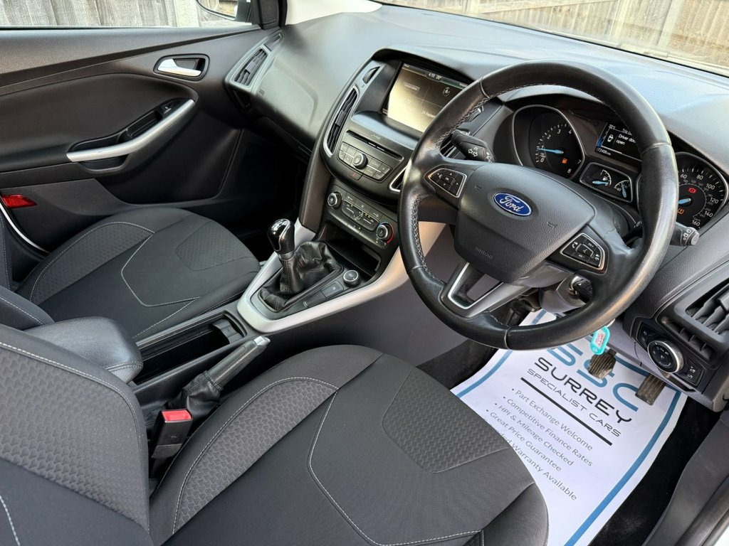 Surrey Specialist Cars are proud to present our lovely Ford Focus Zetec. This amazing car comes with Service History, finished in stunning metallic white with grey contrast interior. The car has a Long MOT until August 2026 so it is ready to go. The 1L Petrol engine offers superb economy at over 63 MPG on combined cycle. Features Include Multifunction Steering Wheel, Trip Computer, Satellite Navigation, Parking Sensors, Stereo/Phone Control, Touch Screen, FM/DAB Radio, CD Player, Bluetooth Audio, AUX Input, USB Input, Air Conditioning, Start/Stop System, 12V Charging Socket, 6 Speed Manual Gearbox, Fog Lights, Electric Windows, 16 Inch Alloy Wheels and two Remote Control Keys to name a few. 16in Alloy Wheels - 5x2 Spoke, 8in TFT Touchscreen with Ford SYNC2, Air Conditioning - Manual, Airbags - Driver and Front Passenger, Airbags - Front Side Impact, Airbags - Front and Rear Side Curtain, Alarm - Thatcham Category 1 with Volume , Anti-Lock Braking System - ABS - with El, Bright Finish on Upper Door Line, Centre Console with Armrest, Chrome Finish on Upper Door Line, Colour TFT Instrument Cluster Display, Courtesy Light - Front and Rear Passenge, Door Mirrors - Heated - Electric - Integ, Drivers Seat Lumbar Adjust, EPAS - Electric Power Assisted Steering, Electric Windows - Front with One Touch , Emergency Brake Warning, Enhanced Electronic Stability Control - , Ford Easy-Fuel Ca