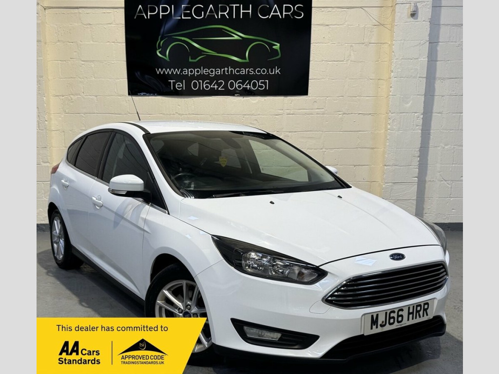 For Sale: FORD FOCUS 1.0T EcoBoost Zetec Hatchback 5dr Petrol Manual Euro 6 (s/s) (100 ps) Registration: MJ66 HRR Price: £5,690 Year: 2016 (16) Mileage: 57,601 miles Engine Size: 1.0L Fuel Type: Petrol Transmission: Manual Body Style: Hatchback Colour: White Doors: 5 Seats: 5 The Ford Focus 1.0 EcoBoost Zetec is a practical, reliable, and economical family hatchback that delivers excellent driving dynamics and low running costs. Powered by Ford's award-winning 1.0L EcoBoost petrol engine producing 100 ps, it offers a great blend of efficiency and responsive performance — ideal for commuting, family life, or motorway journeys. Finished in clean white, this Focus combines smart styling with a spacious and comfortable interior, generous boot space, and the confident road handling the Focus is well known for. Specification Highlights: 16" Alloy Wheels Ford SYNC Infotainment System Bluetooth Hands-Free & Audio Streaming DAB Digital Radio USB Connectivity Air Conditioning Heated Front Windscreen (Quickclear) Cruise Control with Speed Limiter Rear Parking Sensors Multifunction Steering Wheel Electric Front & Rear Windows Electrically Adjustable Heated Door Mirrors ISOFIX Child Seat Mounts Split Folding Rear Seats Start/Stop Technology The Focus Zetec offers comfort, practicality, and strong fuel economy, making it a sensible and dependable choice for drivers looking for a well-rounded hatchback. Contact Applegarth Cars today to arra Cruise Control with Active Speed Limiter, Retractable Trailer Coupling with 13-pin, Appearance Pack 1, Blind Spot Information System, 16in Spare Wheel - Steel, Ford SYNC3 DAB Navigation System, Frozen White, Convenience Pack, Door Edge Protectors, Driver Assistance Pack, Active City Stop, Parking Distance Sensors - Rear, 16in Alloy Wheels - 5x2 Spoke, Air Conditioning - Manual, Alarm - Thatcham Category 1 with Volume , Brake Warning Lights - Automatic Flashin, Centre Console, Chrome Finish on Upper Door Line, Colour TFT Instrument Cluster Display, Courtesy Light - Front and Rear Passenge, Daytime Running Lamps, Door Mirrors - Heated - Electric - Integ, EPAS - Electric Power Assisted Steering