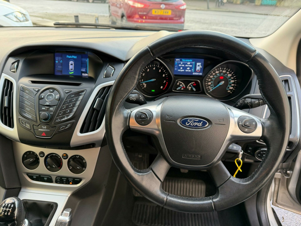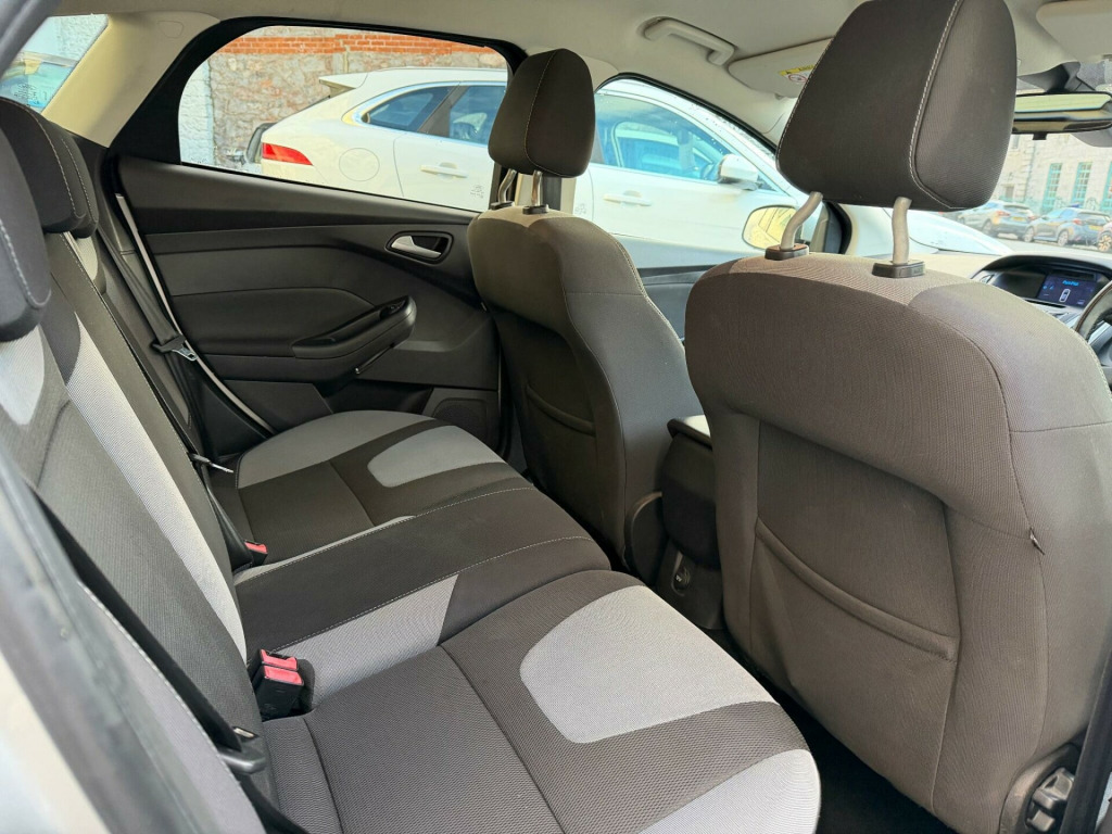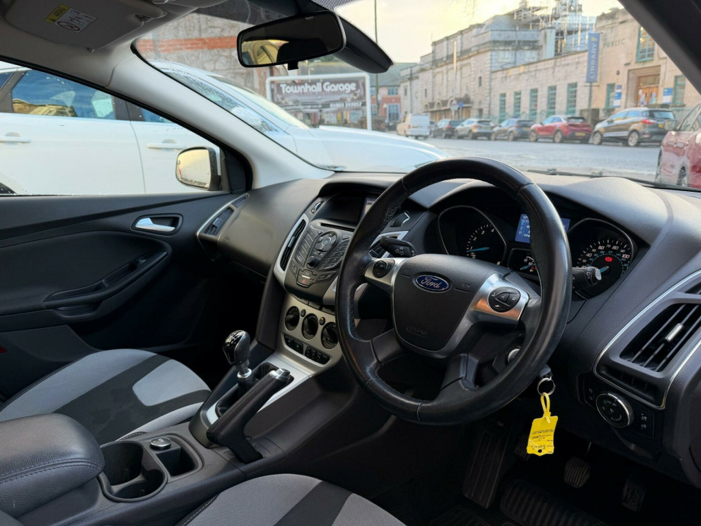 - This 2014 Ford Focus T Zetec Navigator presents an exceptional opportunity with its remarkably low mileage of just 54,000 miles, especially considering its age. This well maintained example has had only two owners from new and is powered by an efficient 1.0 litre petrol engine, Road Tax is only £35 For the Year. Inside, you'll find the convenience of Sat Nav, Parking Scensors, Bluetooth handsfree and voice control, allowing you to stay connected safely on the go, alongside essential air conditioning to ensure a comfortable cabin temperature in all conditions.The Ford Focus Zetec Navigator stands out with its impressive fuel economy, achieving a notable 57 miles per gallon, which is better than many similar vehicles. This efficiency, combined with low CO2 emissions, makes it a cost effective choice for both your wallet and the environment. Furthermore, this model offers generous boot space, providing ample room for shopping, luggage, or equipment, making it a practical and versatile option for everyday use.Great Service History. 2 Keys v power socket - front, 16in alloy wheels - 5 spoke, 5in colour screen, abs - anti-lock braking system, air conditioning, airbags - curtain, airbags - front passenger, airbags - side impact, armrest - centre console mounted with storage box, bluetooth handsfree and voice control, chrome finish on upper door line, door handles - body colour, door mirrors - heated - electric - integrated side indicators - body coloured, drivers airbag, eba - emergency brake assist, ebd - electronic brakeforce distribution, epas - electric power assisted steering, esp - electronic stability programme, electrically-operated front windows with one touch drivers, emergency assistance, emergency brake lights, ford dab audio system with sync, ford dab navigation system, ford eco mode - driver information system, ford sync, front fog lights, heated front windscreen, heated washer jets, high level tft instrument cluster screen, ips - intelligent protection system, isofix - child seat attachments, locking wheel nuts, mini steel spare wheel, rear spoiler - body colour, remote central locking, seats - 60-40 rear split back, seats - drivers lumbar support, seats - drivers manual height and fore-aft adjustment, seats - front sports, steering column - rake and reach adjustment, steering wheel - 4 spoke leather trimmed, steering wheel - multifunction, stereo radio-cd, tvc - torque vectoring control, thatcham category 1 alarm, traction control - tc, trip computer, usb connection - ipod connectivity, voice control - audio