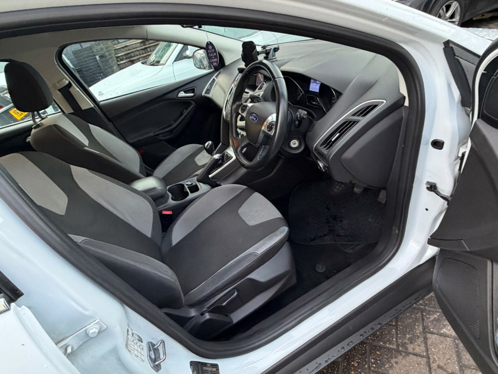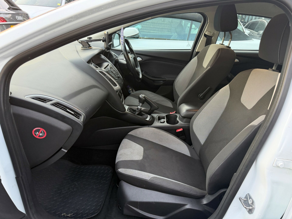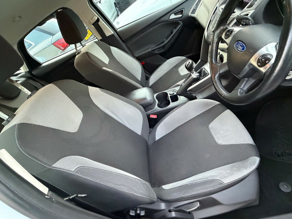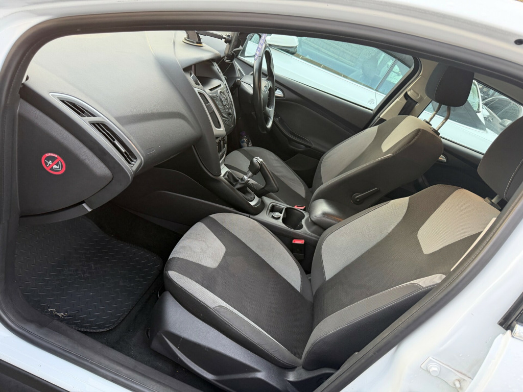 This 2014 Ford Focus 1.0T EcoBoost Zetec Navigator Hatchback with 5 doors and 5 seats is a reliable and efficient vehicle with only 70300 miles on the clock. This petrol car is ULEZ compliant and comes with an MOT that expires on 04/12/2026. Featuring a 5in Colour Screen, Bluetooth Handsfree and Voice Control, and Ford AM-FM CD Audio System, this hatchback also includes emergency assistance and a 12V Power Socket in the front. With a manual transmission and Euro 5 (s/s) engine, this Ford Focus is a practical and stylish option for anyone in the market for a reliable hatchback. v power socket - front, 5in colour screen, bluetooth handsfree and voice control, emergency assistance, ford am-fm cd audio system, ford dab audio system with sync, ford dab navigation system, ford sync, high level tft instrument cluster screen, speakers - x6, usb connection - ipod connectivity, 16in alloy wheels - 5 spoke, chrome finish on upper door line, door handles - body colour, door mirrors - heated - electric - integrated side indicators - body coloured, electrically-operated front windows with one touch drivers, heated front windscreen, heated washer jets, locking wheel nuts, mini steel spare wheel, rear spoiler - body colour, abs - anti-lock braking system, airbags - curtain, airbags - front passenger, airbags - side impact, drivers airbag, eba - emergency brake assist, ebd - electronic brakeforce distribution, esp - electronic stability programme, emergency brake lights, ips - intelligent protection system, isofix - child seat attachments, remote central locking, tvc - torque vectoring control, thatcham category 1 alarm, traction control - tc, air conditioning, armrest - centre console mounted with storage box, seats - 60-40 rear split back, seats - drivers lumbar support, seats - drivers manual height and fore-aft adjustment, seats - front sports, steering column - rake and reach adjustment, steering wheel - 4 spoke leather trimmed, steering wheel - multifunction, epas - electric power assisted steering, ford eco mode - driver information system, trip computer, tyre pressure monitoring system, voice control - audio, front fog lights