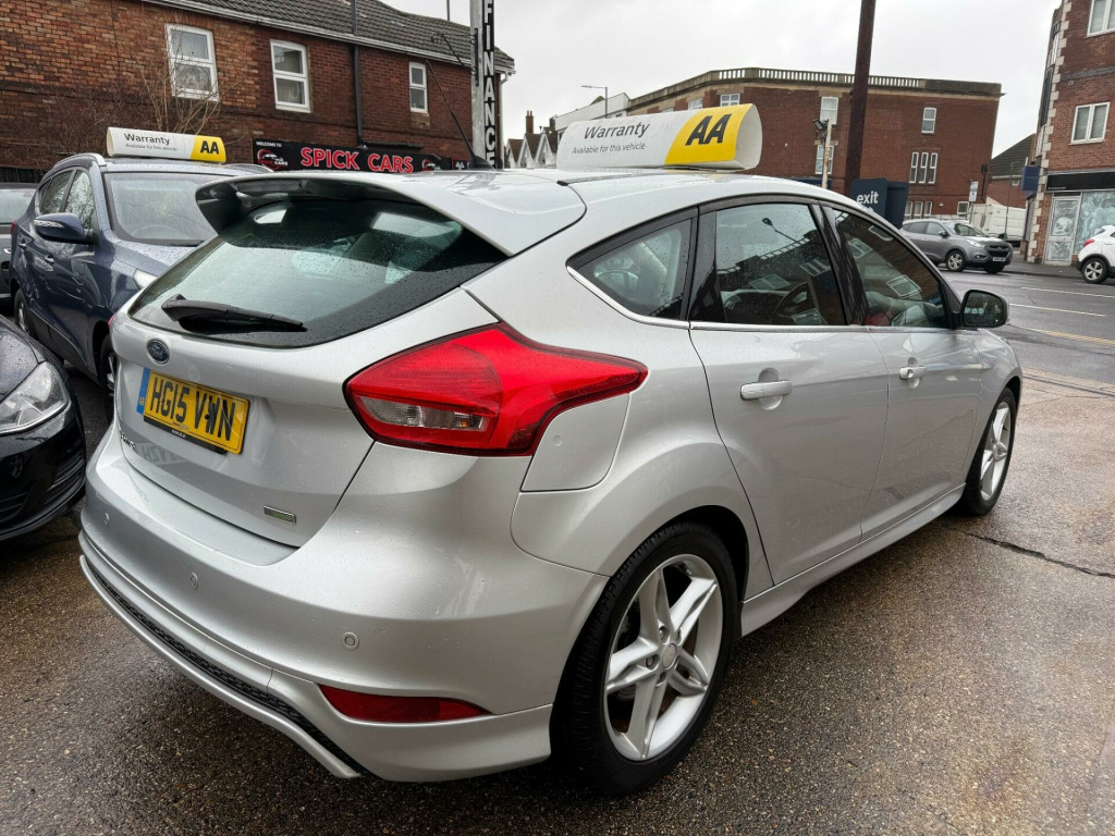 Discover this 2015 Ford Focus T Zetec S with exceptionally low mileage for its age, having covered just 55,032 miles. This well maintained example has had only two owners from new and is powered by an efficient 1.0 litre petrol engine. It meets Euro 6 emissions standards, contributing to its low CO2 output. Inside, you'll find a comfortable cabin equipped with air conditioning to keep you cool, and the KeyFree system allows for convenient keyless entry and starting. Stay connected on the go with Bluetooth audio streaming.This Ford Focus stands out with its impressive fuel economy, achieving an excellent 60 miles per gallon, which indicates it is more economical than many similar vehicles. Furthermore, its large boot space offers practical storage solutions for shopping or luggage, making it a versatile choice. The low CO2 emissions are another key advantage, suggesting a more environmentally friendly performance compared to other cars in its class. in alloy wheels - 5x2 spoke, 4.2in tft display, abs - anti-lock braking system, air conditioning, airbag - front passenger, airbags - curtain, airbags - drivers and front passenger side airbag, bluetooth - audio streaming, chrome finish on upper door line, colour tft instrument cluster display, door handles - body colour, door mirrors - heated - electric - integrated side indicators - body coloured, drivers airbag, eba - emergency brake assist, epas - electric power assisted steering, esp - electronic stability programme, electric windows - front with one touch lowering drivers, emergency assistance, ford am-fm cd audio system, ford dab audio system with sync, ford easy-fuel capless refuelling system, ford eco mode - driver information system, ford sync, front fog lights, full body styling kit, heated front windscreen, hill start assist, ips - intelligent protection system, isofix - child seat attachments, keyfree system, keyless start, led daytime running lights, mykey, pedals - sports, premium centre console, premium centre console - sliding armrest, rear spoiler - body colour, remote central locking, seats - drivers lumbar support, seats - front sports, sports style front seats - inidividual red stitching, steering column - rake and reach adjustment, steering wheel - audio controls, suspension - sports, tvc - torque vectoring control, thatcham category 1 alarm, traction control - tc, trip computer, tyre pressure monitoring system, usb connection, voice control - audio