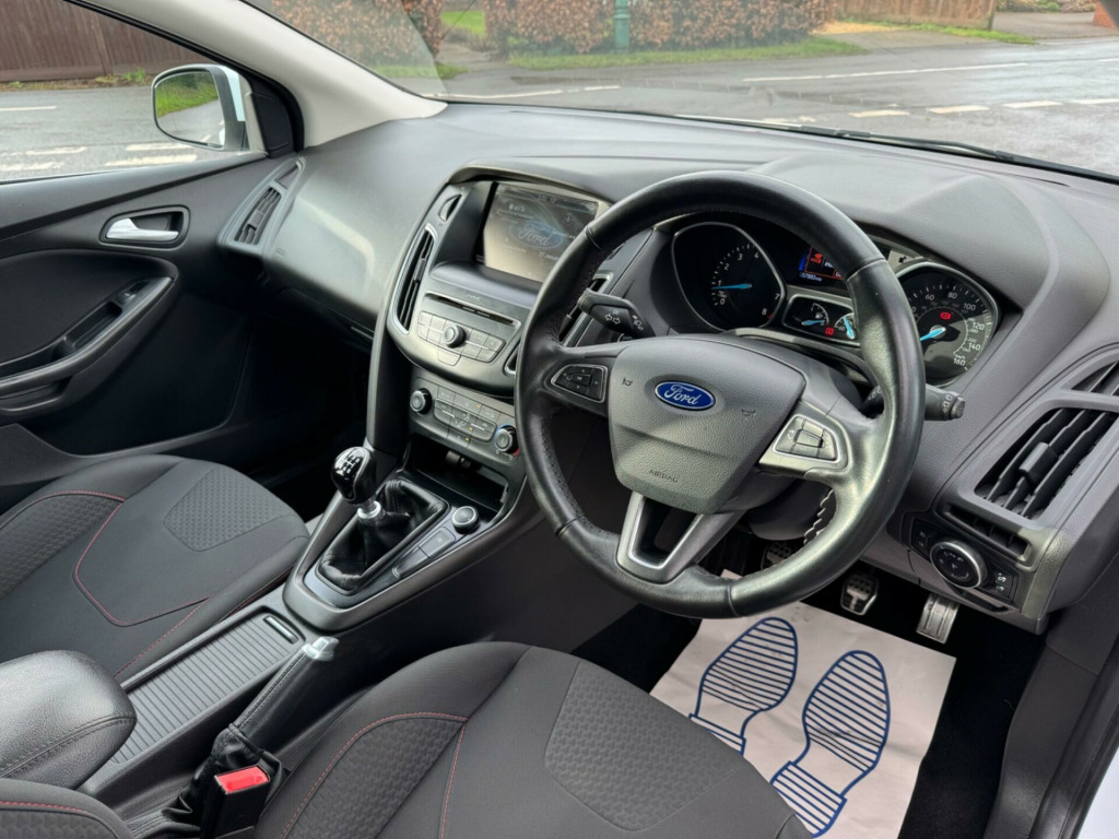 This 2016 Ford Focus Zetec S presents a remarkable opportunity with its exceptionally low mileage of just 57,000 miles for its age. This particular model is powered by an efficient 1.0 litre petrol engine, meeting Euro 6 emission standards. It comes equipped with desirable features such as rear parking sensors for easier manoeuvring, the Ford SYNC2 DAB navigation system to keep you on course, and Bluetooth handsfree for safe connectivity on the go. Comfort is also assured with manual air conditioning, ensuring a pleasant cabin environment in all conditions.The Ford Focus Zetec S stands out with its impressive fuel economy, achieving an excellent 60 miles per gallon, which indicates it is more economical than many other vehicles in its class. Furthermore, its low CO2 emissions highlight its environmental consideration. Practicality is another strong point, boasting a large boot space perfect for shopping trips or luggage. These combined benefits make this Ford Focus a sensible and well equipped choice. v power socket - front, 17in alloy wheels - 5x2 spoke, 4.2in tft display, abs - anti-lock braking system, aux connection, air conditioning - manual, airbag - front passenger, airbags - curtain, airbags - curtain rear, airbags - side impact, anti-submarining seat bases, black headlight bezel, bluetooth handsfree phone system, body colour bumpers, body colour exterior mirrors, body colour side skirts, body coloured front styling kit with centre aero foil, chrome finish on upper door line, colour tft instrument cluster display, door handles - body colour, door mirrors - electrically operated and heated, door mirrors with integrated indicators, drivers airbag, eba - emergency brake assist, ebd - electronic brakeforce distribution, esp - electronic stability programme, electric windows - front with one touch lowering drivers, emergency assistance, emergency brake warning, ford am-fm cd audio system, ford dab audio system, ford easy-fuel capless refuelling system, ford eco mode - driver information system, ford sync, front fog lights, front seat belts with pre-tensioners, fuel computer, handbrake cover - leather, headlights - halogen, heated front windscreen, height-adjustable mounts on front seat belts, hill start assist, ips - intelligent protection system, isofix - child seat attachments, keyless start, led daytime running lights, large rear spoiler, locking wheel nuts, mini steel spare wheel, mykey, pedals - collapsible, pedals - sports, pollen filter, power steering, premium centre console, premium centre console - sliding armrest, rear bumper with integral body coloured diffuser and honeycomb mesh in high-gloss black, remote central locking, scuff plates - front - aluminium finish with ford logo, seats - 60-40 rear split back, seats - drivers height adjustment, seats - drivers lumbar support, speakers - x6, sports style front seats - inidividual red stitching, steering column - collapsible, steering column - rake and reach adjustment, steering wheel - 3 spoke - leather trimmed, steering wheel - audio controls, suspension - sports, tvc - torque vectoring control, thatcham category 1 alarm, traction control - tc, tyre pressure monitoring system, usb connection, upper and lower grille - high gloss black honeycomb design, voice control - audio, ford sync2 dab navigation system, parking sensor - rear