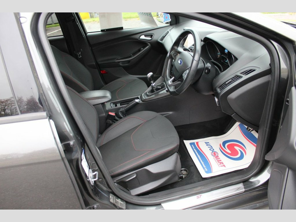 Very Clean Example of this Focus ST-Line ,Very Economical to Run,This 125bhp 6 Speed Returns Average of 60mpg And Only £20 Road Tax,,This ST-Line Model Comes with 18* Alloy Wheels,Remote Central Locking(2 keys) Sat Nav,Air Con,Bluetooth,DAB,Privacy Glass,Heated Front Screeen,Fronrt Foglights, Service History ,Finished in Magnetic Grey Metalic,Very Clean Condition Inside and Out,Looks and drives Superb..ULEZ Compliant 17in Alloy Wheels - Rock Metallic Finish, Air Conditioning - Manual, Alarm - Thatcham Category 1 with Volume , Black Exterior Trim Detailing including , Body Colour Large Rear Spoiler and Side , Body Coloured Front Styling Kit with Cen, Colour TFT Instrument Cluster Display, Courtesy Light - Front and Rear Passenge, Door Mirrors - Heated - Electric - Integ, Drivers Seat Lumbar Adjust, Electronic Stability Programme - ESP - w, EPAS - Electric Power Assisted Steering, Ford Easy-Fuel Capless Refuelling System, Ford Eco Mode - Driver Information Syste, Ford SYNC3 DAB Navigation System, Front Floor Mats, Front Fog Lights, Front Seat - Drivers Manual Height and F, Front Seat - Passenger Manual For