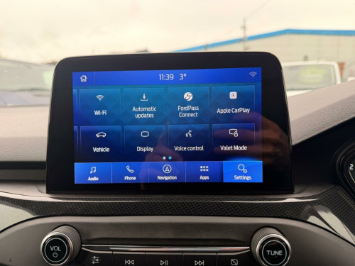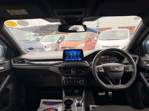 This 2021 Ford Focus ST Line has a comprehensive service history, with its last service completed recently on 26th September 2025 at 39,863 miles, ensuring excellent provenance. This stylish ST Line variant is powered by an efficient 1.5 litre Euro 6 diesel engine. For your convenience, it comes equipped with front and rear parking sensors, including parking assistance, and cruise control for relaxed journeys. Inside, you will find manual driver's seat height adjustment with lumbar support for added comfort, a modern rotary gear shift dial, and a sporty, leather trimmed, flat bottom steering wheel featuring audio controls.The Ford Focus ST Line offers a refined driving experience, enhanced by features that set it apart. The inclusion of both front and rear parking sensors makes manoeuvring in tight spaces significantly easier, a practical advantage over many other vehicles. Cruise control further contributes to a more comfortable and efficient drive, especially on longer trips. The thoughtful interior touches, such as the lumbar support and the leather trimmed steering wheel with integrated audio controls, demonstrate a higher level of attention to detail and driver focus, making this Focus a compelling choice. A 12 month MOT will be provided on purchase, and the vehicle is covered by a 3 month warranty for your peace of mind.. 17in Alloy Wheels - 5x2-Spoke - Rock Metallic, Air Conditioning - Manual, Airbags - Driver and Front Passenger, Airbags - Front Side Impact, Airbags - Front and Rear Side Curtain, Alloy Finish Pedals, Anti-Lock Braking System - ABS with Electronic Brake Force Distribution - EBD, Automatic Headlights, Body Colour Bumpers, Centre Console with Armrest, Cruise Control, Door Handles - Body Colour, Door Mirrors - Heated - Electric - Integrated Side Indicators - Body Coloured, EPAS - Electric Power Assisted Steering, ESC - Electronic Stability Programme, Electric Parking Brake, Ford Easy Fuel System, Ford SYNC3 DAB Radio with Floating 6.5in Touchscreen, FordPass Connect, Front Floor Mats, Front Passenger Airbag Deactivation Switch, Front and Rear Seatbelt Minder, Headlights - Halogen, Headliner - Black Woven, Hill Start Assist, Intelligent Speed Assistance, Keyless Start, LED Daytime Running Lights, LED Front Fog Lights with Cornering Function, Lane Keeping Aid with Lane Departure Warning, Manual Drivers Seat Height Adjustment with Lumbar Support, MyKey, Paddle Shift, Polished Twin Tailpipe, Post Collision Braking, Pre-Collision Assist with Autonomous Emergency Braking and Pedestrian-Cyclist Detection, Quickclear Heated Windscreen, Rear Centre Headrest, Rear Spoiler - Body Colour - Large, Remote Central Locking and Engine Immobiliser, Rotary Gear Shift Dial, Selectable Drive Mode, Spare Wheel - Mini Steel, Sports Tuned Suspension, Steering Wheel - 3-Spoke Flat Bottom - Leather Trimmed with Audio Controls, Thatcham Category 1 Alarm, Trip Computer, Tyre Pressure Monitoring System, Unique ST-Line Upper and Lower Grille and Full Bodystyling Kit and ST-Line Wing Badges, Windows - Electrically Operated Front and Rear with One Touch Opening and Closing, Ford SYNC3 DAB Navigation System, Parking Sensor - Front and Rear, Rear Privacy Glass, Foundry Fabric and Eton Bolster - Ebony with Generic Red Stitching.