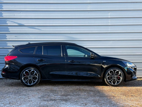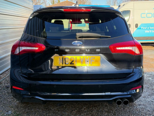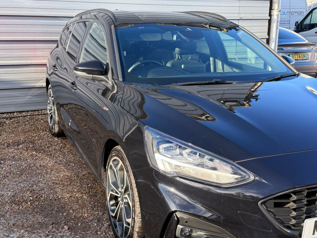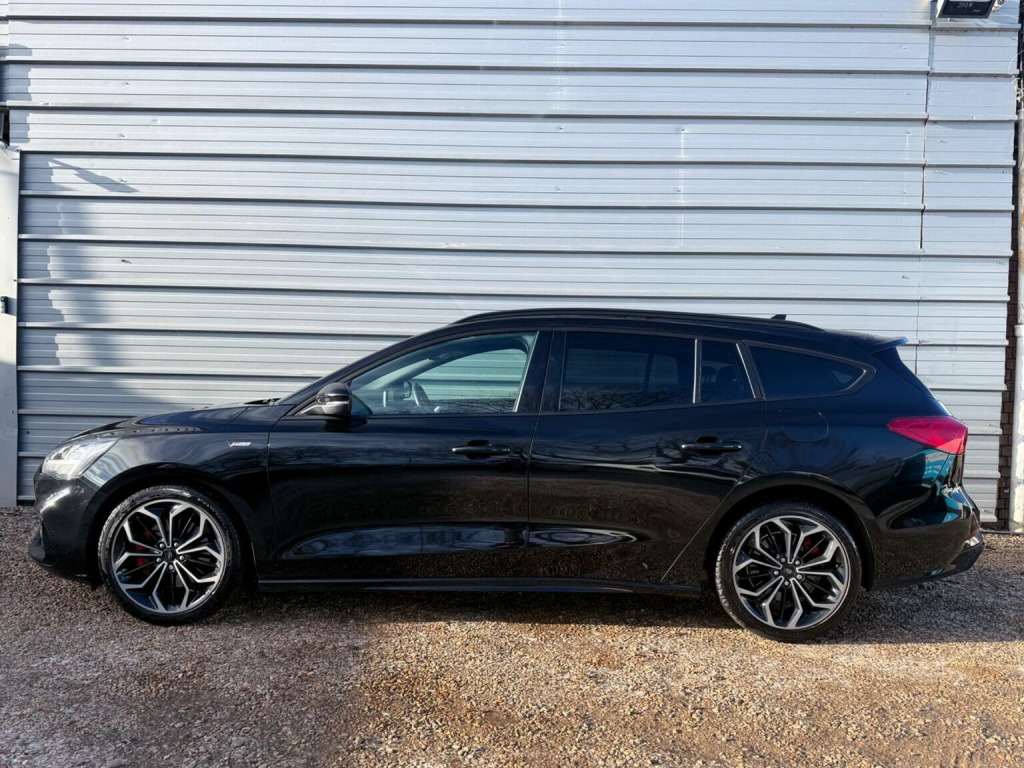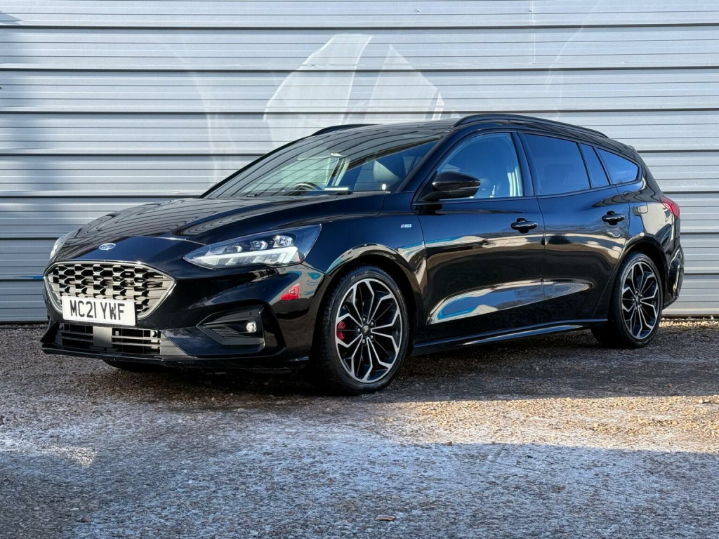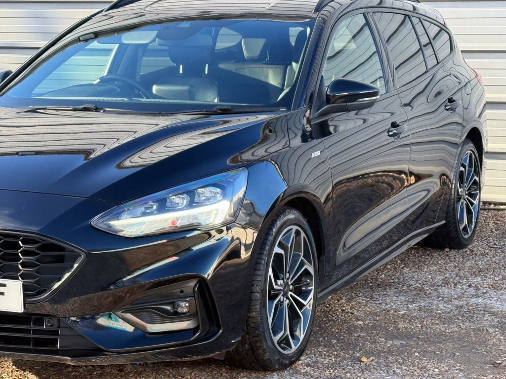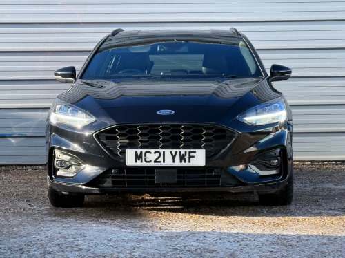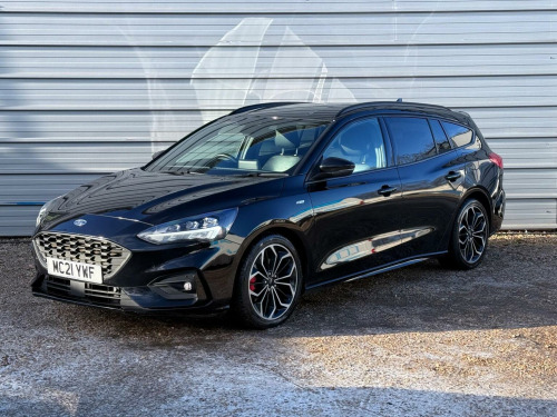 Fresh in 2021 Estate Focus 1.5 ST X finished in black with Half Leather Sports seats with red stitching, Automatic 2 owners Ford serviced at 18k,43k,serviced by ourselves before sale at 57k ,12 months mot 6 month warranty best of all superb spec including heated seats and steering wheel,Cruise control with lane departure warning,front and rear park sensors, dab radio with blue tooth music streaming and Touch screen navigation,heated front screen,paddles with driving modes sport eco and normal,digital speedo with tft screen and traffic sign aware fuel computer,fog lights rubber over mats and boot matfolding mirrors and auto lights and auto wipers ,well worth a closer look call Jon Dexter toarrange a test drive today 07912 600040
