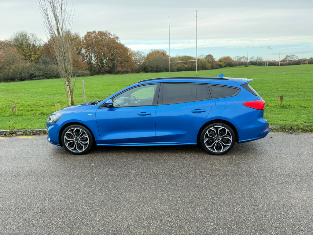 ULEZ COMPLIANT - 19 Reg - Desert Island Blue with Charcoal Half Leather Trim, This utterly stunning looking Focus Estate comes with a very high specification which induces: Apple / Android Carplay, Factory Colour Satellite Navigation, DAB Radio, Bluetooth, Heated Seats, Dual Climate Control, Cruise Control, Trip Computer, Power Folding Mirrors, Auto Lights, Auto Dipping Mirror, Leather Steering Wheel, Airbags, ISO-Fix Seating, 18'' Alloy Wheels, Rear Window Tints, Front Fogs, comes with its latter service history (5 services) and a new brand new MOT, really a stunning looking car in this gorgeous colour, it looks amazing... drives superbly so any inspection welcome, HPI Clear, Part Exchange up or down welcome. **Debit/Credit Cards Accepted** **Open 6 Days a week** **POOR CREDIT NO PROBLEMS - Finance available (subject to status)** (*Sometimes we may still reserve the right to not offer unaccompanied test drives)