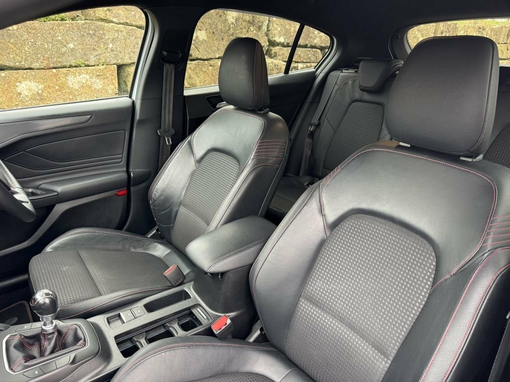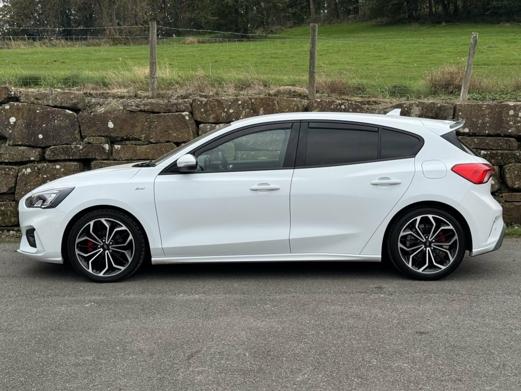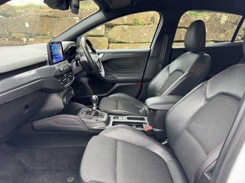Discover this 2020 Ford Focus ST-Line X, a sophisticated 1.5L diesel model that meets Euro 6 emissions standards. This well appointed vehicle offers a comfortable and connected driving experience, featuring front and rear parking sensors with parking assistance to make manoeuvring effortless. Inside, you'll appreciate the convenience of DEATC dual zone electronic automatic temperature control, ensuring a pleasant cabin environment for all occupants. For those chilly mornings, the heated front seats provide welcome warmth, while the Ford SYNC3 DAB navigation system keeps you on track and entertained with Android Auto, Apple CarPlay, and Bluetooth connectivity. The ST-Line X trim level signifies a higher standard of specification, indicating this Focus offers a more premium and feature rich experience compared to other models. The combination of its efficient diesel engine, advanced infotainment system, and driver convenience features like the parking assistance and climate control, makes this 2020 Ford Focus ST-Line X a compelling choice for those seeking a capable and comfortable hatchback. Our cars specification includes: Frozen White Black leather / fabric interior stitched in red Heated seats Apple CarPlay Navigation Bluetooth connectivity for hands free calling DAB / AM / FM Tuner Dual zone climate control Rapid defrost heated windscreen USB sockets Front and rear park distance control Auto Hold Multi function steering wheel Cruise control Lane keeping system Spee 18in Alloy Wheels - 5x2 Spoke - ST-Line , 4.2in TFT Instrument Cluster Screen, 6-Way Power Adjustment Driver Seat, 8in Touchscreen Colour Display, Airbags - Driver and Front Passenger, Airbags - Front Side Impact, Airbags - Front and Rear Side Curtain, Alloy Finish Pedals, Anti-Lock Braking System - ABS with Elec, Automatic Dimming Rear View Mirror, Body Colour Bumpers, Centre Console with Armrest, Courtesy Light - Front and Rear Passenge, Cruise Control with Speed Limiter, DEATC - Dual-Zone Electronic Automatic T, Door Handles - Body Colour, Drivers Seat Lumbar Adjust, EPAS - Electric Power Assisted Steering, Electric Parking Brake, Emergency Brake Warning, Enhanced Electronic Stability Con