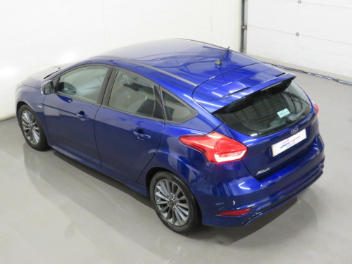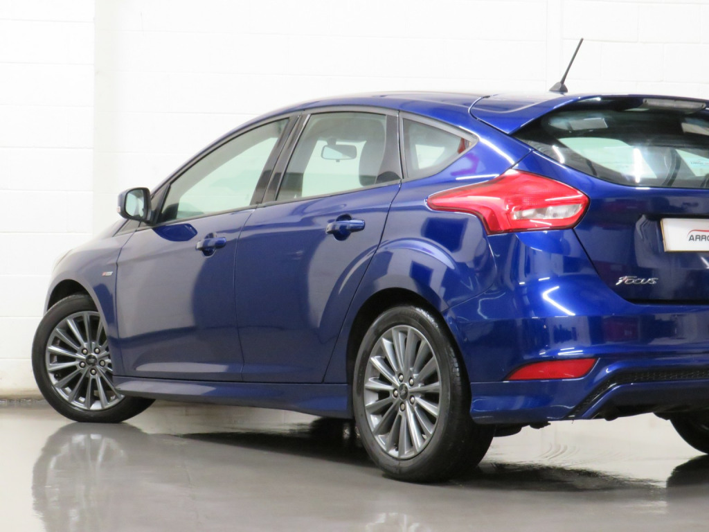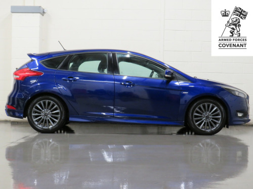 Arrow Motor Company are pleased to present this Fantastic Ford Focus ST-Line Navigation TDCi, finished in the stunning Deep Impact Blue Metallic Gray Paint, with Grey Stitched ST Line Cloth Interior. Equipped with Fords 1.5-Litre Diesel Engine capable of producing 118 bhp whilst providing the most economical of drivers with an incredible 74.3mpg, with potential to rise to 83.1 mpg in Extra-Urban environments. This particular example is complimented by a Full Service History (FSH). This vehicle also benefits from the following impressive list of features…, , …↓ ↓ ↓ ↓ ↓ ↓ ↓ ↓ ↓ ↓ ↓ ↓ ↓ ↓ ↓ ↓ ↓ ↓ ↓ ↓ ↓…, , …Interior Features…, , Ford SYNC 3 Satellite Navigation | Push Button Ford Power Start | Radio, USB, NAV, Phone and App Voice Command | Apple CarPlay / Android Auto | Daytime Running Lights | Wing Mirror Puddle Lights | Ford Quickclear™️ Heated Front Windscreen | Bluetooth | Black Leather Flat Bottom Silver Lined Multi-Functional Steering Wheel | Air Conditioning | CD Player | Ebony Coloured Fabric Red Contrast Stitched ST-Line Sports Seats | Chrome Sports Pedals | Foldable Back Seats | Front Door Pocket Storage | Chrome Lined Air Vents | ST-Line Door Sill Protectors | Ford Branded Foot Rest | Glove Box Storage| Leather Centre Console | Alternative Front and Rear Storage Pockets | Black Leather Shifter and Hand Brake | Mirrored Sun Visors | Front and Rear Illumination | Central Locking | Electric Front Windows | Electrically Adjustable Wing Mirrors | Trip Computer | 2x 12v Port | 2x USB Port |, , …Exterior Features…, , 17-inch ST-Line Grey Multi-Spoke Alloy Wheels | All Round ST-Line Exterior Styling Kit Including Front and Rear Splitters, Rear Roof Spoiler and Side Skirts | Privacy Glass – Rear | LED Day Time Running Lights | Body Coloured Wing Mirrors | Body Coloured Door Handles | Body Coloured Roof | ST-Line Spoiler | Wing Mirror Mounted Indicators | Black Front Grill | Door Mirrors with Built-in Indicators | Heated Washer Jets | Front Fog Lights