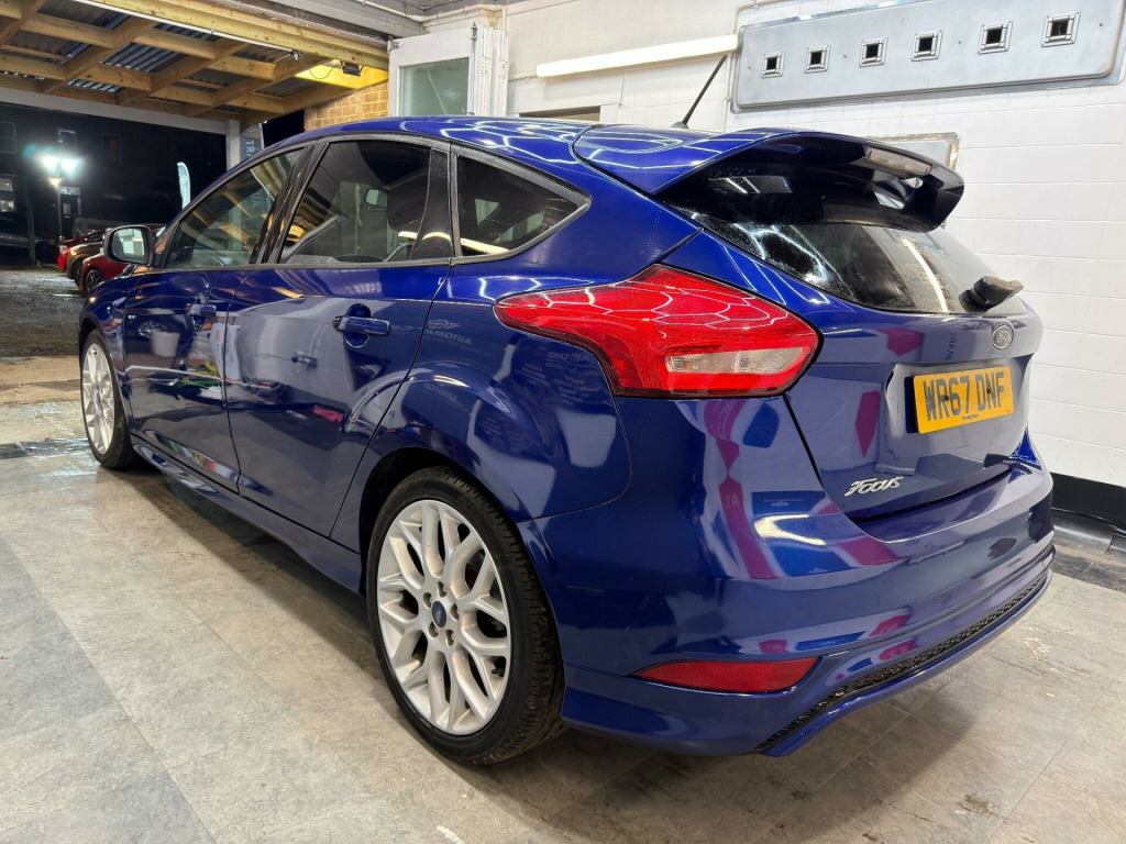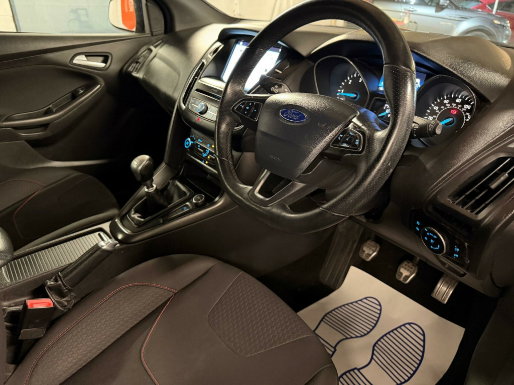 This 2017 Ford Focus TDCi ST Line offers excellent peace of mind with a clear vehicle history check and a 3 month warranty included. This particular model is a Euro 6 compliant 1.5L diesel, presented in the sporty ST Line trim. It comes with 12 months MOT provided on purchase, ensuring its roadworthiness. Inside, you'll find manual air conditioning for your comfort.The Ford Focus TDCi ST Line stands out with its impressive fuel economy, achieving up to 74 mpg, which is significantly better than many other vehicles in its class. This model also boasts low CO2 emissions, making it a more environmentally conscious choice. Furthermore, you'll appreciate the generous boot space, offering ample room for luggage or shopping, making it a practical and efficient option for everyday use.. 17in Alloy Wheels - 5-Spoke with Rock Metallic Finish, Air Conditioning - Manual, Alarm - Thatcham Category 1 with Volume Sensing and Perimeter, Black Exterior Trim Detailing including Upper Door Line and Headlamp Surround, Body Colour Large Rear Spoiler and Side Skirts, Body Coloured Front Styling Kit with Centre Aero Foil, Brake Warning Lights - Automatic Flashing of Brake Lights Under Heavy Braking, Centre Console, Colour TFT Instrument Cluster Display, Courtesy Light - Front and Rear Passengers - Overhead Halogen and Load Compartment, Door Mirrors - Heated - Electric - Integrated Side Indicators - Body Coloured, EPAS - Electric Power Assisted Steering, Electronic Stability Programme - ESP - with Traction Control and Emergency Brake Assist - EBA, Ford Easy-Fuel Capless Refuelling System, Ford Eco Mode - Driver Information System, Ford Power Start Button, Front Floor Mats, Front Fog Lights, Front Seat - Drivers Manual Height and Fore-Aft Adjustment, Front Seat - Drivers Manual Lumbar Support Adjustment, Front Seat - Passenger Manual Fore-Aft Adjustment, Front Seats - Sports Style, Front Suspension - Independent with MacPherson Struts and Anti-Roll Bar, Gearshift Knob - Leather, Halogen Headlights with Black Surround, Headlights - LED Daytime Running Lights, Headliner - Black Woven, IPS - Intelligent Protection System, Interior Door Lever - Chrome Finish, Leather-Trimmed Handbrake, Locking Wheel Nuts, MyKey, Quickclear Heated Front Windscreen with Heated Washer Jets, Rear Bumper with Integral Body Coloured Diffuser and Honeycomb Mesh in High-Gloss Black, Rear Lights - LED, Rear Seat - 60-40 Split Back and Cushion, Rear Suspension - Independent Control Blade Multi-Link System and Anti-Roll Bar, Remote Central-Double Locking, SYNC3 with 8in Touchscreen DAB Audio System, Scuff Plates - Front Stainless Steel Finish with ST-Line Logo, Spare Wheel - Mini Steel, Sports Style Pedals - Gear Knob and Steering Wheel, Steering Column - Rake and Reach Adjustment, Steering Wheel - 3 Spoke - Leather Trimmed, Suspension - Sports, TVC - Torque Vectoring Control, Trip Computer, Tyre Pressure Monitoring System, Upper and Lower Grille - High Gloss Black Honeycomb Design, Windows - Electrically Operated Front with One Touch Lowering on Drivers Side, Wipers - Standard with 6 Speed Interval Settings.