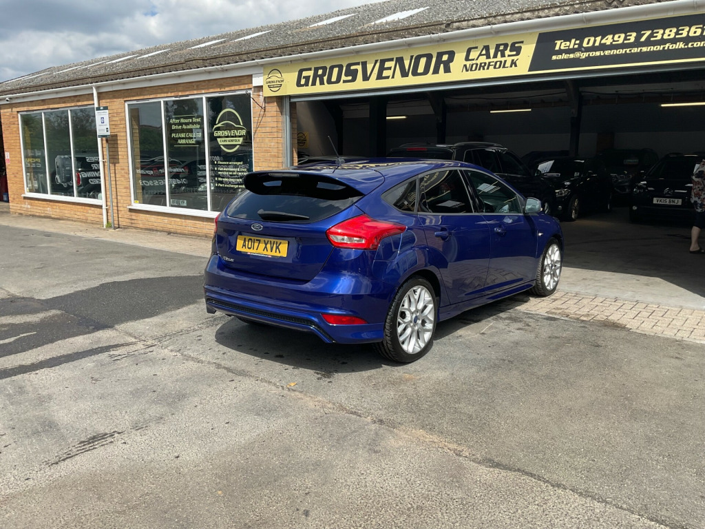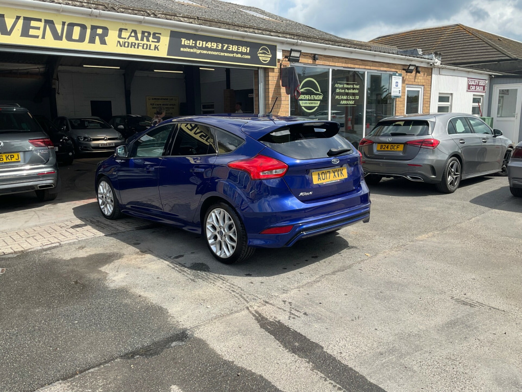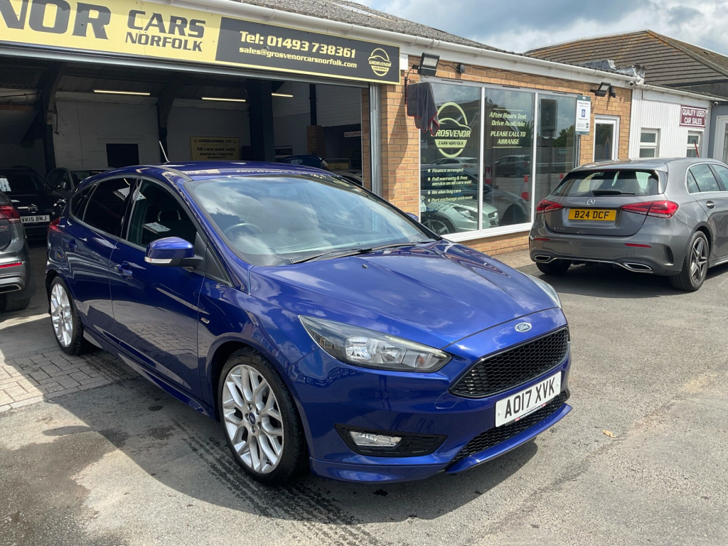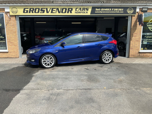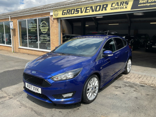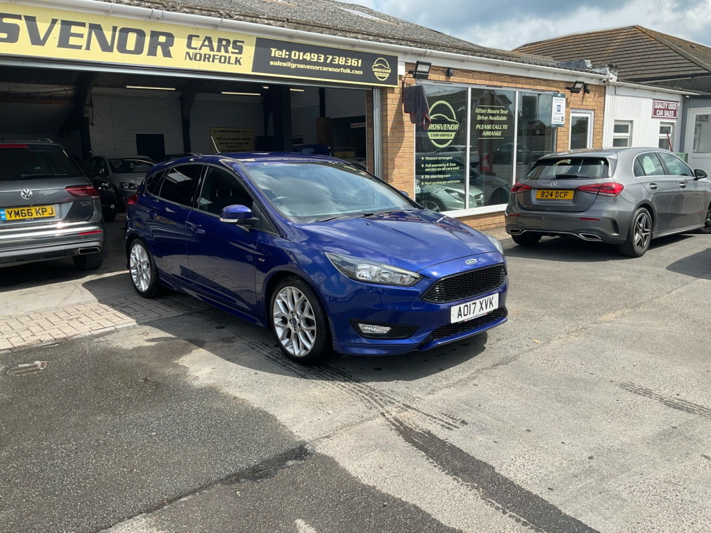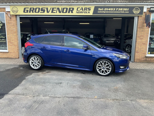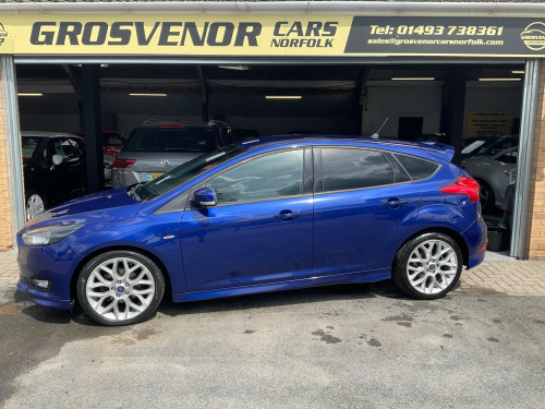 This 2017 Ford Focus 1.5 TDCi ST-Line is a sleek and practical hatchback with a powerful diesel engine, perfect for those who love to hit the road. It has covered 70000 miles, with a long MOT until 23/02/2026, and is ULEZ compliant, making it a great choice for city dwellers. With 5 seats and 5 doors, this car is spacious and versatile, ideal for families or those who need extra space. The exterior is fitted with 17in Alloy Wheels in a Rock Metallic Finish, giving it a stylish and sporty look. Inside, you'll find manual air conditioning and a range of safety features including multiple airbags for driver and passengers. This Ford Focus is a reliable and fuel-efficient vehicle that offers a smooth and enjoyable driving experience.At Grosvenor Cars Norfolk all our customers have the added peace of mind that all our vehicles are supplied with a minimum of 8 months mot, sales service, pre delivery inspection & 6 months parts & labour warranty for total peace of mind. We also have our own workshop facilities on site with use of free courtesy cars available. Part exchange welcome & finance available. We offer both PCP and Hire Purchase agreements, please call us for a free quotation or more information. All our vehicles have vast specifications, in most cases, far too much too list, so please always check the vehicles exact specification prior to purchase. We always have at least 30 vehicles in stock to choose from. For more information, please call 01493 738361 or visit our website www.grosvenorcarsnorfolk.co.uk in alloy wheels - rock metallic finish, black exterior trim detailing including upper door line and headlamp surround, body colour large rear spoiler and side skirts, body coloured front styling kit with centre aero foil, door mirrors - heated - electric - integrated side indicators - body coloured, locking wheel nuts, quickclear heated front windscreen with heated washer jets, rear bumper with integral body coloured diffuser and honeycomb mesh in high-gloss black, st line stainless steel scuff plates, spare wheel - mini steel, upper and lower grille - high gloss black honeycomb design, windows - electrically operated front with one touch lowering on drivers side, wipers - standard with 6 speed interval settings, air conditioning - manual, centre console - premium with sliding armrest - covered stowage bins, courtesy light - front and rear passengers - overhead halogen and load compartment, drivers seat lumbar adjust, ford power starter button, front floor mats, front seat - drivers manual height and fore-aft adjustment, front seat - passenger manual fore-aft adjustment, front seats - sports style, gearshift knob - leather, headliner - black woven, keyless start, leather-trimmed handbrake, mykey, sports style pedals - gear knob and steering wheel, steering column - rake and reach adjustment, steering wheel - 3-spoke flat bottom - leather trimmed, airbags - driver and front passenger, airbags - front side impact, airbags - front and rear side curtain, alarm - thatcham category 1 with volume sensing and perimeter, anti-lock braking system - abs with electronic brake force distribution - ebd, electronic stability programme - esp - with traction control and emergency brake assist - eba, emergency brake warning - automatic hazard warning lights, ford easy-fuel capless refuelling system, hill start assist, ips - intelligent protection system, remote central-double locking, seats - isofix mounting provision for child seats, tvc - torque vectoring control, colour tft instrument cluster display, ford sync3 dab navigation system, sync3 with 8in touchscreen dab audio system, epas - electric power assisted steering, ford eco mode - driver information system, front suspension - independent with macpherson struts and anti-roll bar, rear suspension - independent control blade multi-link system and anti-roll bar, suspension - sports, trip computer, tyre pressure monitoring system, front fog lights, halogen headlights with black surround, headlights - courtesy delay, led daytime running lights, rear lights - led