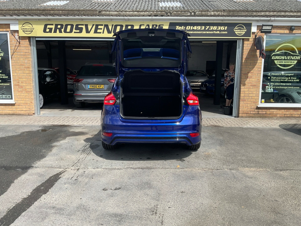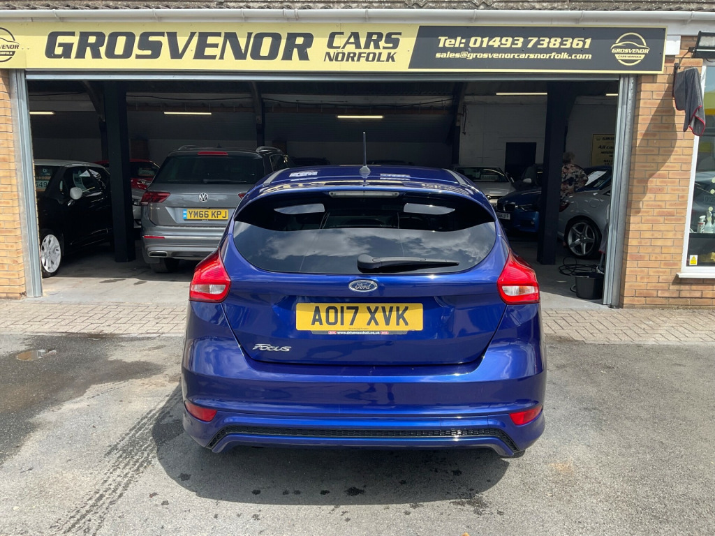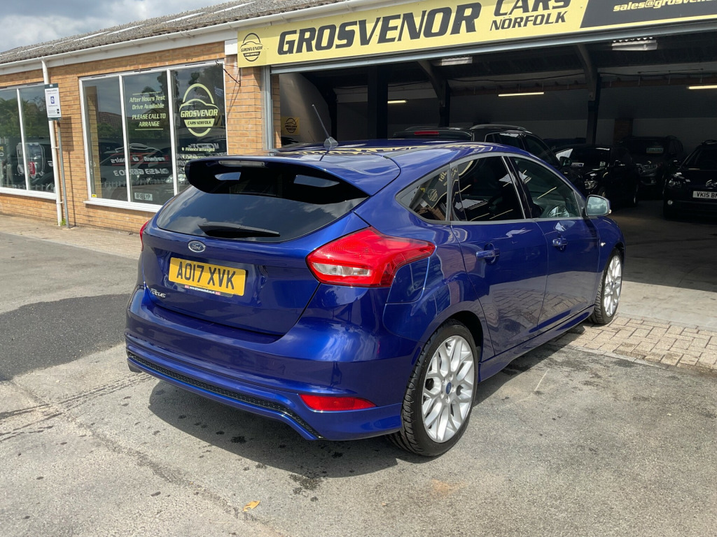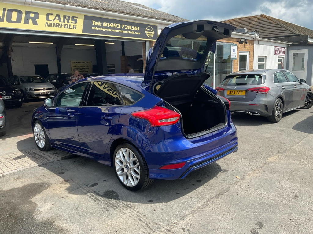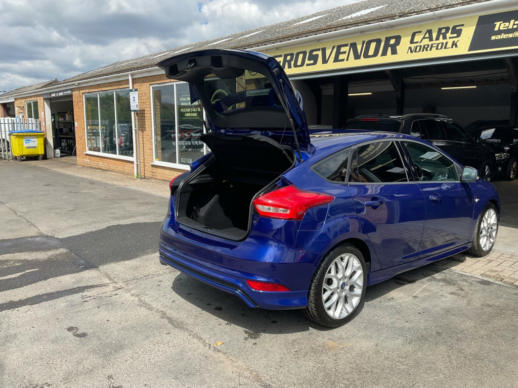 This 2017 Ford Focus 1.5 TDCi ST-Line is a sleek and practical hatchback with a powerful diesel engine, perfect for those who love to hit the road. It has covered 70000 miles, with a long MOT until 23/02/2026, and is ULEZ compliant, making it a great choice for city dwellers. With 5 seats and 5 doors, this car is spacious and versatile, ideal for families or those who need extra space. The exterior is fitted with 17in Alloy Wheels in a Rock Metallic Finish, giving it a stylish and sporty look. Inside, you'll find manual air conditioning and a range of safety features including multiple airbags for driver and passengers. This Ford Focus is a reliable and fuel-efficient vehicle that offers a smooth and enjoyable driving experience.At Grosvenor Cars Norfolk all our customers have the added peace of mind that all our vehicles are supplied with a minimum of 8 months mot, sales service, pre delivery inspection & 6 months parts & labour warranty for total peace of mind. We also have our own workshop facilities on site with use of free courtesy cars available. Part exchange welcome & finance available. We offer both PCP and Hire Purchase agreements, please call us for a free quotation or more information. All our vehicles have vast specifications, in most cases, far too much too list, so please always check the vehicles exact specification prior to purchase. We always have at least 30 vehicles in stock to choose from. For more information, please call 01493 738361 or visit our website www.grosvenorcarsnorfolk.co.uk in alloy wheels - rock metallic finish, black exterior trim detailing including upper door line and headlamp surround, body colour large rear spoiler and side skirts, body coloured front styling kit with centre aero foil, door mirrors - heated - electric - integrated side indicators - body coloured, locking wheel nuts, quickclear heated front windscreen with heated washer jets, rear bumper with integral body coloured diffuser and honeycomb mesh in high-gloss black, st line stainless steel scuff plates, spare wheel - mini steel, upper and lower grille - high gloss black honeycomb design, windows - electrically operated front with one touch lowering on drivers side, wipers - standard with 6 speed interval settings, air conditioning - manual, centre console - premium with sliding armrest - covered stowage bins, courtesy light - front and rear passengers - overhead halogen and load compartment, drivers seat lumbar adjust, ford power starter button, front floor mats, front seat - drivers manual height and fore-aft adjustment, front seat - passenger manual fore-aft adjustment, front seats - sports style, gearshift knob - leather, headliner - black woven, keyless start, leather-trimmed handbrake, mykey, sports style pedals - gear knob and steering wheel, steering column - rake and reach adjustment, steering wheel - 3-spoke flat bottom - leather trimmed, airbags - driver and front passenger, airbags - front side impact, airbags - front and rear side curtain, alarm - thatcham category 1 with volume sensing and perimeter, anti-lock braking system - abs with electronic brake force distribution - ebd, electronic stability programme - esp - with traction control and emergency brake assist - eba, emergency brake warning - automatic hazard warning lights, ford easy-fuel capless refuelling system, hill start assist, ips - intelligent protection system, remote central-double locking, seats - isofix mounting provision for child seats, tvc - torque vectoring control, colour tft instrument cluster display, ford sync3 dab navigation system, sync3 with 8in touchscreen dab audio system, epas - electric power assisted steering, ford eco mode - driver information system, front suspension - independent with macpherson struts and anti-roll bar, rear suspension - independent control blade multi-link system and anti-roll bar, suspension - sports, trip computer, tyre pressure monitoring system, front fog lights, halogen headlights with black surround, headlights - courtesy delay, led daytime running lights, rear lights - led