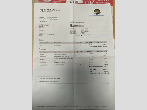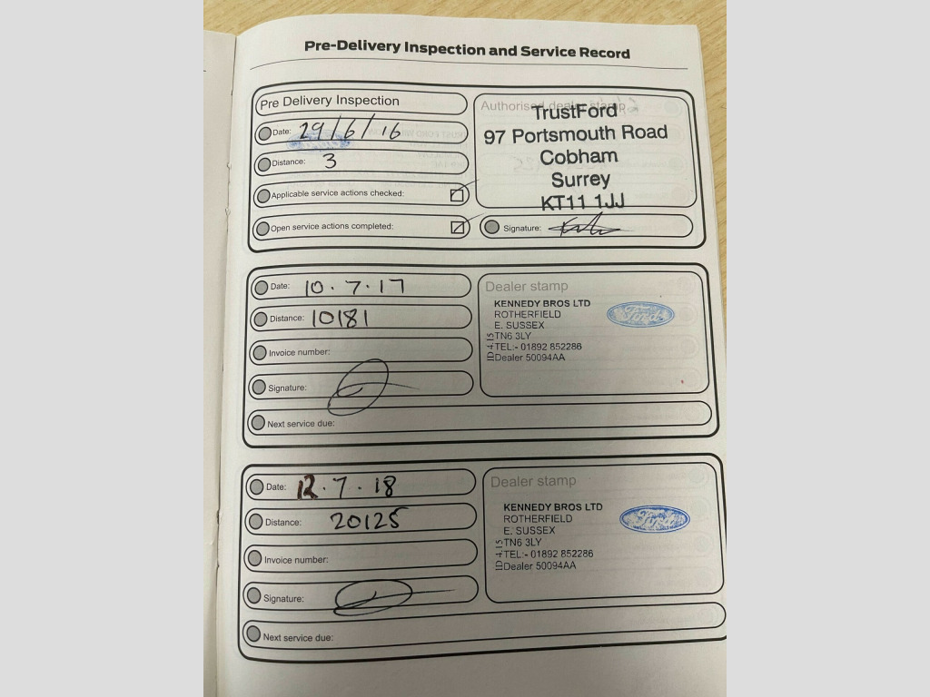 12 MONTH MOT. 12V Power Socket - Front, 16in Alloy Wheels - 5x2 Spoke, 4.2in TFT Display, ABS - Anti-lock Braking System, AUX Connection, Air Conditioning - Manual, Airbag - Front Passenger, Airbags - Curtain, Airbags - Curtain Rear, Airbags - Side Impact, Anti-Submarining Seat Bases, Armrest - Centre Console, Black Headlight Bezel, Bluetooth Handsfree Phone System, Body Colour Bumpers, Body Colour Exterior Mirrors, Chrome Finish on Upper Door Line, Colour TFT Instrument Cluster Display, Door Handles - Body Colour, Door Mirrors - Electrically Operated and Heated, Door Mirrors with Integrated Indicators, Drivers Airbag, EBA - Emergency Brake Assist, EBD - Electronic Brakeforce Distribution, ESP - Electronic Stability Programme, Electric Windows - Front with One Touch Lowering Drivers, Emergency Assistance, Emergency Brake Warning, Ford AM-FM CD Audio System, Ford DAB Audio System, Ford Easy-Fuel Capless Refuelling System, Ford Eco Mode - Driver Information System, Ford SYNC, Front Fog Lights, Front Seat Belts with Pre-Tensioners, Front Upper Grille - Chrome Finish Surround, Fuel Computer, Headlights - Halogen, Heated Front Windscreen, Height-Adjustable Mounts on Front Seat Belts, Hill Start Assist, IPS - Intelligent Protection System, ISOFIX - Child Seat Attachments, Locking Wheel Nuts, Mini Steel Spare Wheel, MyKey, Pedals - Collapsible, Pollen Filter, Power Steering, Premium Centre Console, Rear Spoiler - Body Colour, Remote Central Locking, Seats - 60-40 Rear Split Back, Seats - Drivers Height Adjustment, Seats - Drivers Lumbar Support, Seats - Front Sports, Speakers - x6, Steering Column - Collapsible, Steering Column - Rake and Reach Adjustment, Steering Wheel - 3 Spoke - Leather Trimmed, Steering Wheel - Audio Controls, Suspension - Sports, TVC - Torque Vectoring Control, Thatcham Category 1 Alarm, Traction Control - TC, Tyre Pressure Monitoring System, USB Connection, Voice Control - Audio. Part service history