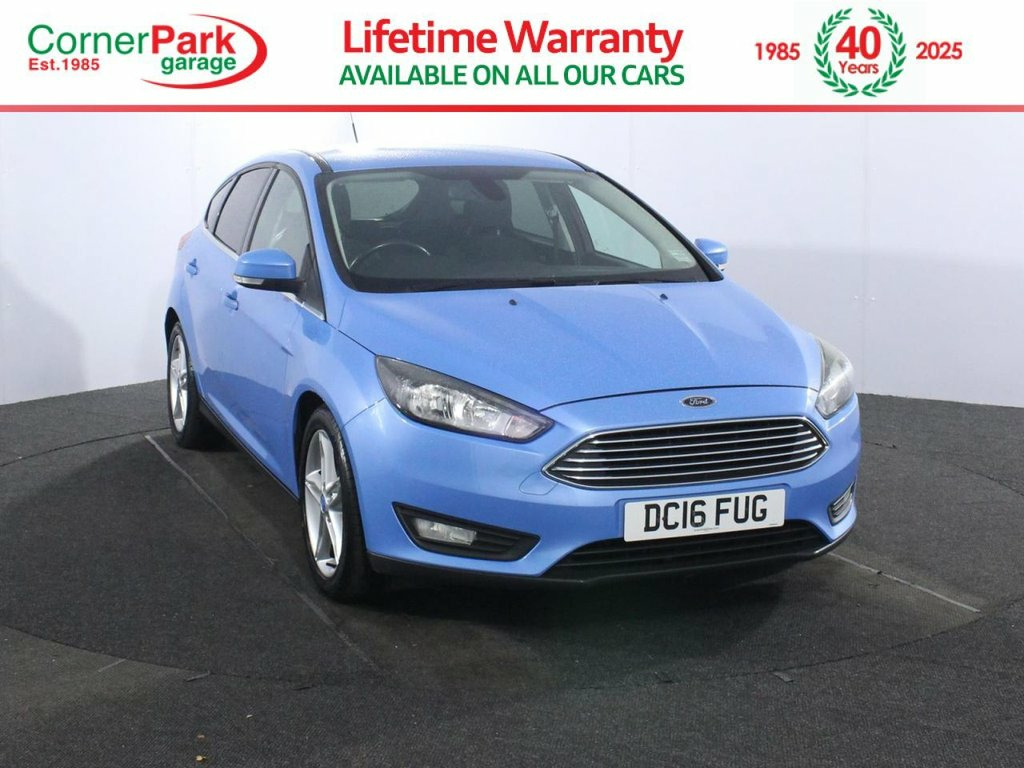 Comprehensive service history with 5 services. Last serviced at 74,103 miles in October 2025. Introducing the 2016 Ford Focus 1.5 TDCi Zetec, a versatile 5-door diesel hatchback offering a rich blend of efficiency, technology, and sporty style. Finished in Iceberg Blue with 16-inch 5x2 spoke alloy wheels, chrome-finished upper door line, and body-coloured heated electric door mirrors with integrated indicators, this Euro 6 manual model features an eye-catching rear spoiler and halogen headlights with black surround. Enhanced by an appearance pack, front fog lights, and a chrome-trimmed front grille, the Focus Zetec ensures an instantly recognisable road presence. Powered by a responsive 1.5-litre TDCi diesel engine delivering 120ps with stop-start efficiency, the Focus is renowned for its smooth, economical performance and engaging handling. Inside, the cabin includes an 8-inch TFT touchscreen with Ford SYNC2 and optional DAB navigation, front and rear courtesy lighting, a colour TFT instrument cluster, manual air conditioning, front sports seats and driver lumbar adjustment for added comfort. Other practical features include Quickclear heated windscreen, electric front windows, a centre armrest console, 60-40 split rear seat, and a mini steel spare wheel for peace of mind. Safety is well covered thanks to multiple airbags including front, side, and curtain protection, ISOFIX mounts, enhanced electronic stability control with traction control, emergency brake assist, hill s 16in Alloy Wheels - 5x2 Spoke, 8in TFT Touchscreen with Ford SYNC2, Air Conditioning - Manual, Airbags - Driver and Front Passenger, Airbags - Front and Rear Side Curtain, Airbags - Front Side Impact, Alarm - Thatcham Category 1 with Volume , Anti-Lock Braking System - ABS - with El, Appearance Pack 1, Bright Finish on Upper Door Line, Centre Console with Armrest, Chrome Finish on Upper Door Line, Colour TFT Instrument Cluster Display, Courtesy Light - Front and Rear Passenge, Design Body Colour, Door Mirrors - Heated - Electric - Integ, Drivers Seat Lumbar Adjust, Electric Windows - Front with One Touch , Emergency Brake Warning, Enhanced Electronic Stability Control - , EPAS - Electric Pow