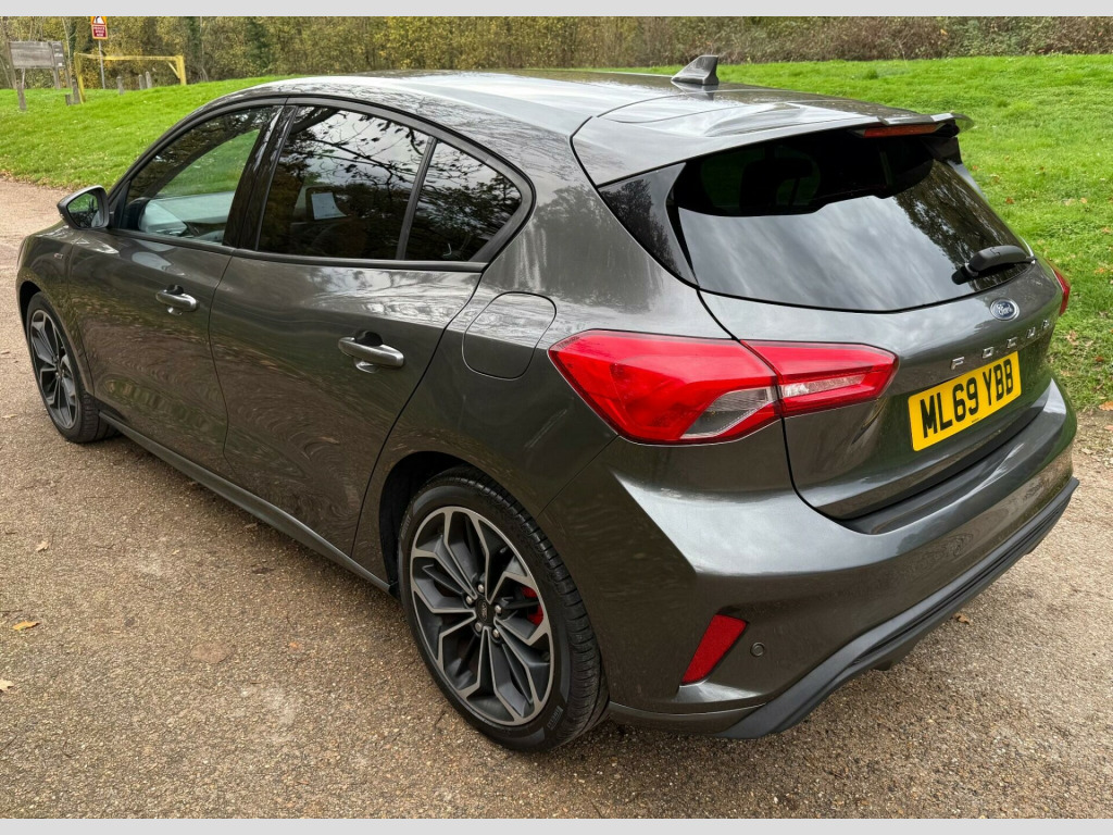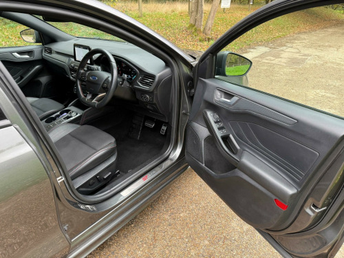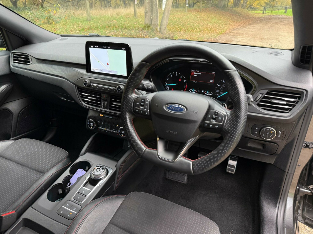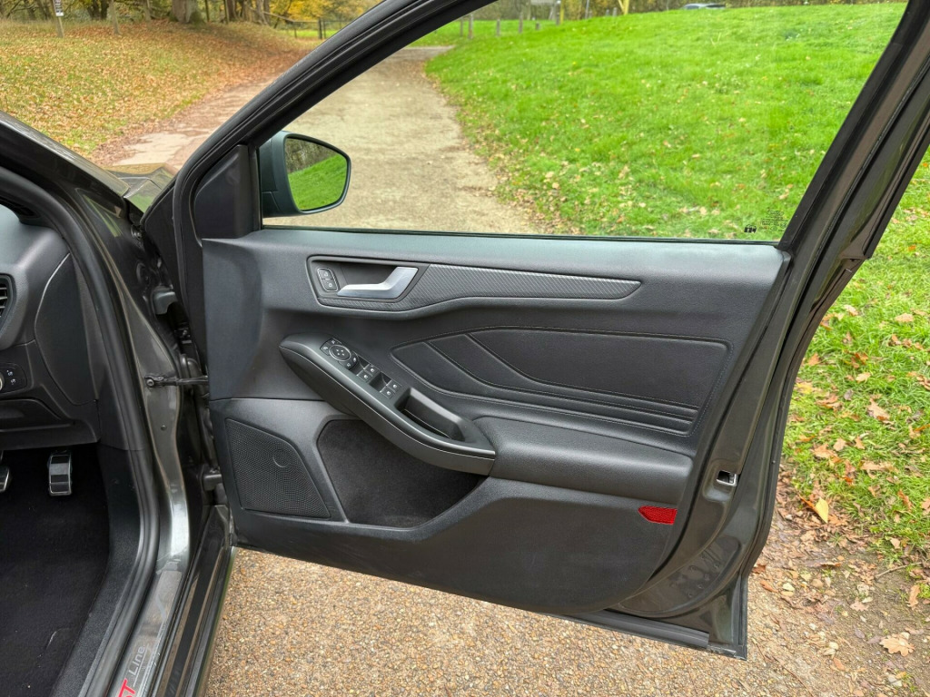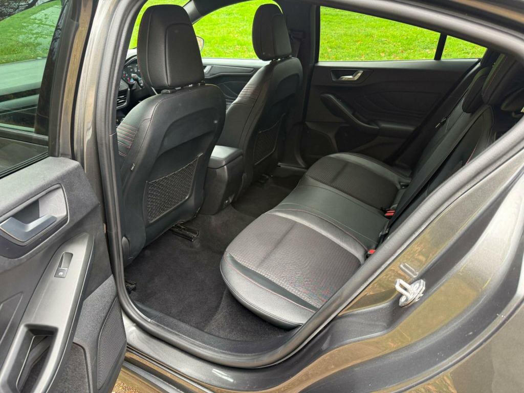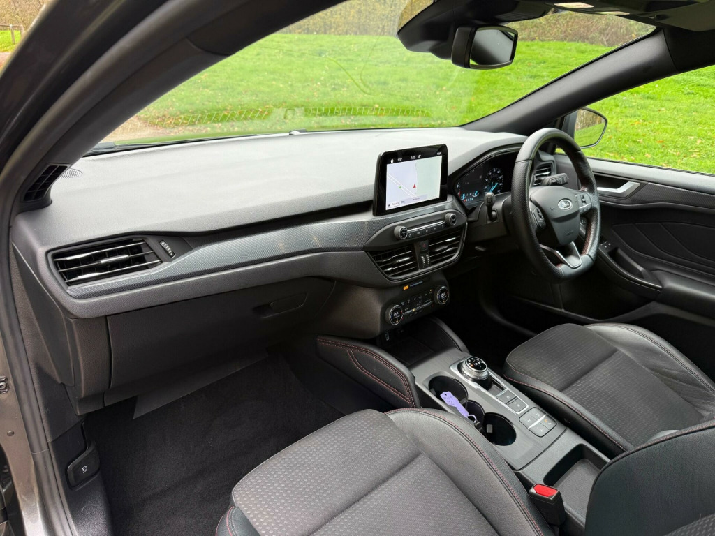 This 2019 Ford Focus ST-Line X presents an exceptional opportunity with its remarkably low mileage of just 31,700 miles, a clear vehicle history check, and a powerful 1.5L petrol engine. As a Euro 6 compliant model, it combines performance with efficiency. The ST-Line X trim level ensures a sporty aesthetic and a host of desirable features, including a convenient 2nd load floor for added practicality.Experience enhanced comfort and connectivity with this Focus. The DEATC dual-zone electronic automatic temperature control allows for personalised cabin climate, while the Ford SYNC3 DAB Navigation System, compatible with Android Auto and Apple CarPlay, keeps you informed and entertained on every journey. For those chilly mornings, the driver and passenger heated seats offer welcome warmth. The impressive 0-62mph acceleration in just 8.4 seconds highlights its dynamic driving capabilities, setting it apart from other vehicles in its class. Front and rear parking sensors, along with parking assistance, make manoeuvring in tight spaces effortless. undry partial leather and salerno leather - vinyl bolster - ebony with generic red stitching, 2nd load floor, 18in alloy wheels - 5x2 spoke - matt black - machined finish, airbags - driver and front passenger, airbags - front side impact, airbags - front and rear side curtain, alloy finish pedals, automatic dimming rear view mirror, body colour bumpers, cruise control with speed limiter, deatc - dual-zone electronic automatic temperature control, dark headliner, door handles - body colour, door mirrors - electrically-operated - heated - power-foldable - body colour housings - side indicators - puddle lights, esc - electronic stability control, electric parking brake, flat bottomed steering wheel with red stitching, ford easy fuel system, ford sync3 dab navigation system, fordpass connect, front passenger airbag deactivation switch, front seat - drivers manual lumbar support adjustment, front seats - driver and passenger heated seats, front and rear floor mats with red stitching, front and rear seatbelt minder, halogen reflector headlights, headlights - automatic on-off, instrument cluster - 4.2in colour tft display, keyless start with ford power start button, led daytime running lights, led front fog lights with cornering function, lane keeping aid with lane departure warning, large rear spoiler - body colour with centre high mounted stop light, mykey, paddle shift, parking sensor - front and rear, passenger seat manual height and lumbar adjust, polished twin tailpipe, post collision braking, pre-collision assist with autonomous emergency braking and pedestrian-cyclist detection, pre-collision assist with pedestrian detection, quickclear heated windscreen, rain sensitive windshield wipers, rear centre headrest, rear privacy glass, red brake calipers, remote central locking and engine immobiliser, selectable drive mode, soft console knee pads with red stitching, spare wheel - mini steel, sports tuned suspension, steering wheel - 3-spoke - leather trimmed, steering wheel - st-line sports style - flat bottom, thatcham category 1 alarm, trip computer, tyre pressure monitoring system, unique door and instrument panel inserts, unique st-line upper and lower grille and full bodystyling kit and st-line wing badges, windows - electrically operated front and rear with one touch opening and closing