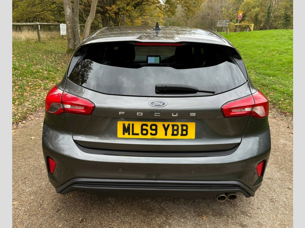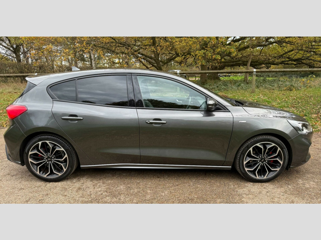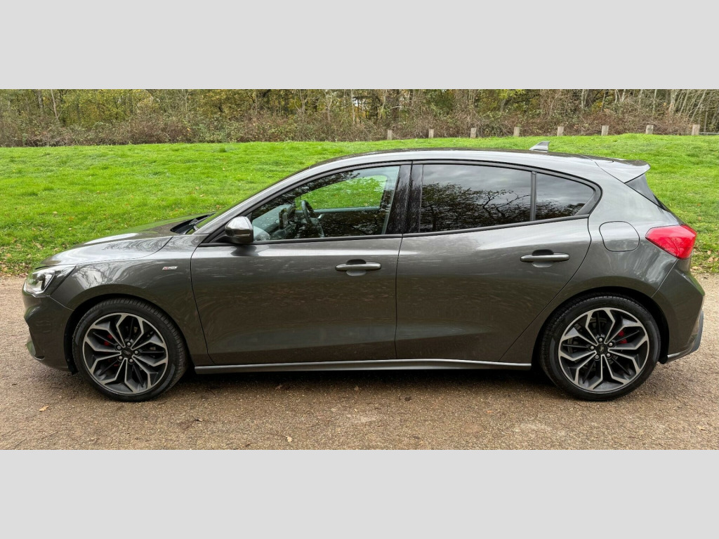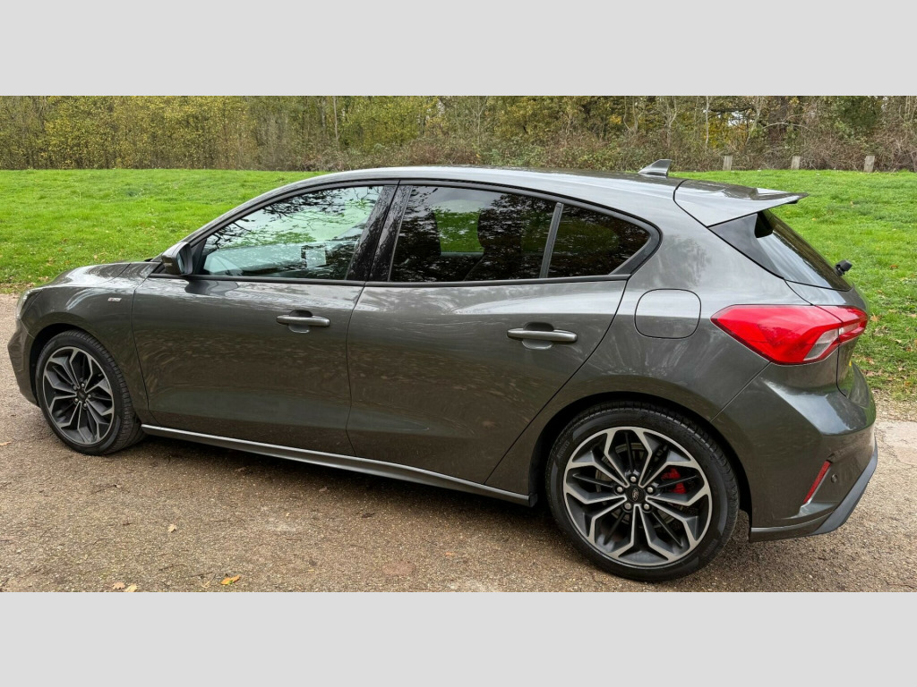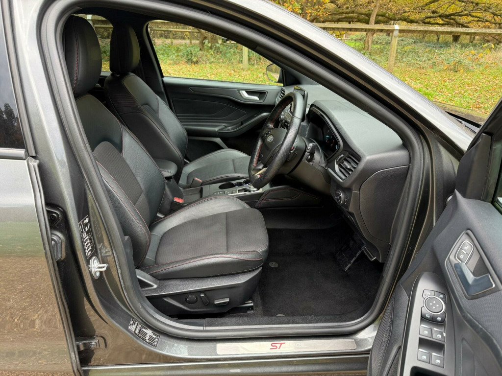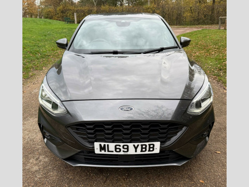 This 2019 Ford Focus ST-Line X presents an exceptional opportunity with its remarkably low mileage of just 31,700 miles, a clear vehicle history check, and a powerful 1.5L petrol engine. As a Euro 6 compliant model, it combines performance with efficiency. The ST-Line X trim level ensures a sporty aesthetic and a host of desirable features, including a convenient 2nd load floor for added practicality.Experience enhanced comfort and connectivity with this Focus. The DEATC dual-zone electronic automatic temperature control allows for personalised cabin climate, while the Ford SYNC3 DAB Navigation System, compatible with Android Auto and Apple CarPlay, keeps you informed and entertained on every journey. For those chilly mornings, the driver and passenger heated seats offer welcome warmth. The impressive 0-62mph acceleration in just 8.4 seconds highlights its dynamic driving capabilities, setting it apart from other vehicles in its class. Front and rear parking sensors, along with parking assistance, make manoeuvring in tight spaces effortless. undry partial leather and salerno leather - vinyl bolster - ebony with generic red stitching, 2nd load floor, 18in alloy wheels - 5x2 spoke - matt black - machined finish, airbags - driver and front passenger, airbags - front side impact, airbags - front and rear side curtain, alloy finish pedals, automatic dimming rear view mirror, body colour bumpers, cruise control with speed limiter, deatc - dual-zone electronic automatic temperature control, dark headliner, door handles - body colour, door mirrors - electrically-operated - heated - power-foldable - body colour housings - side indicators - puddle lights, esc - electronic stability control, electric parking brake, flat bottomed steering wheel with red stitching, ford easy fuel system, ford sync3 dab navigation system, fordpass connect, front passenger airbag deactivation switch, front seat - drivers manual lumbar support adjustment, front seats - driver and passenger heated seats, front and rear floor mats with red stitching, front and rear seatbelt minder, halogen reflector headlights, headlights - automatic on-off, instrument cluster - 4.2in colour tft display, keyless start with ford power start button, led daytime running lights, led front fog lights with cornering function, lane keeping aid with lane departure warning, large rear spoiler - body colour with centre high mounted stop light, mykey, paddle shift, parking sensor - front and rear, passenger seat manual height and lumbar adjust, polished twin tailpipe, post collision braking, pre-collision assist with autonomous emergency braking and pedestrian-cyclist detection, pre-collision assist with pedestrian detection, quickclear heated windscreen, rain sensitive windshield wipers, rear centre headrest, rear privacy glass, red brake calipers, remote central locking and engine immobiliser, selectable drive mode, soft console knee pads with red stitching, spare wheel - mini steel, sports tuned suspension, steering wheel - 3-spoke - leather trimmed, steering wheel - st-line sports style - flat bottom, thatcham category 1 alarm, trip computer, tyre pressure monitoring system, unique door and instrument panel inserts, unique st-line upper and lower grille and full bodystyling kit and st-line wing badges, windows - electrically operated front and rear with one touch opening and closing
