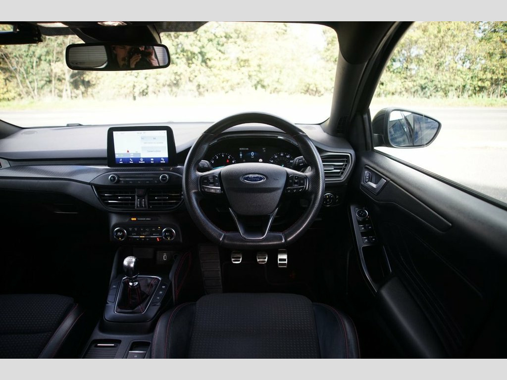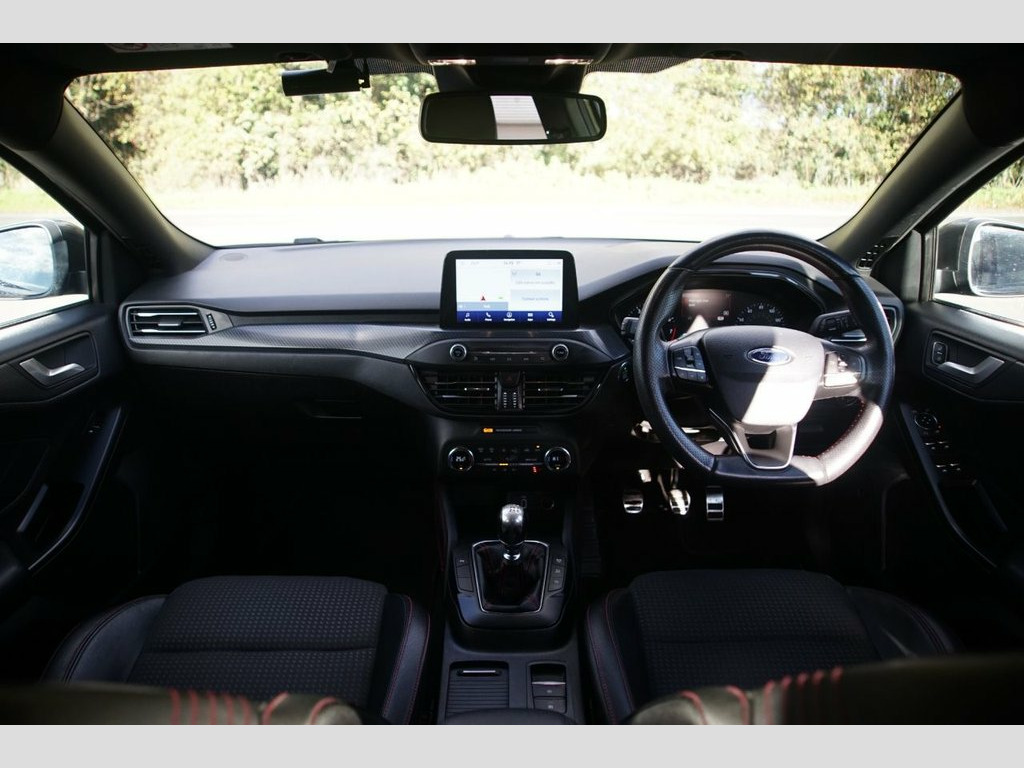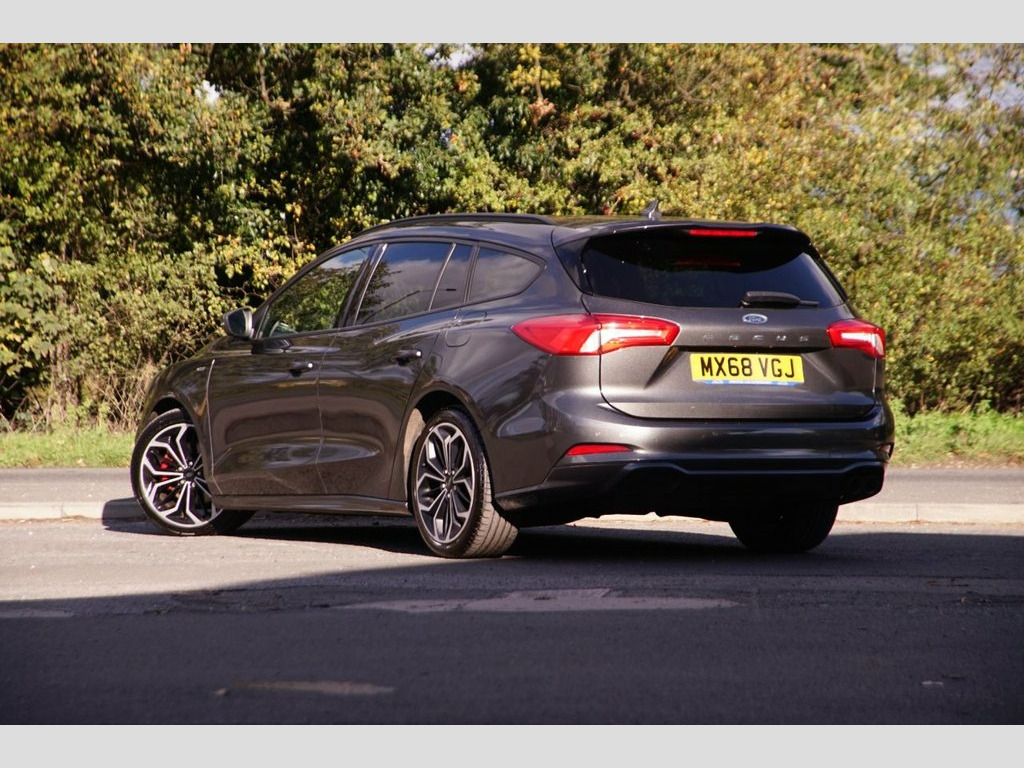 Prestige Car Supermarket in York presents this sporty and highly-equipped 2018 Ford Focus 1.5T EcoBoost ST-Line X Estate. Finished in optional Magnetic metallic paintwork, costing £700.00, and featuring a contemporary interior with Foundry Partial Leather and Salerno Leather with contrasting Generic Red Stitching, this manual petrol estate offers a strong 182 horsepower performance and excellent practicality. It rides on 18in 5x2 Spoke Matt Black Machined Finish alloy wheels and features a Large Rear Spoiler, Unique ST-Line Bodystyling, Red Brake Calipers, and a Polished Twin Tailpipe. Illumination is provided by Halogen Reflector Headlights with Automatic On-Off, LED Daytime Running Lights, and LED Front Fog Lights with Cornering Function. Step inside the highly appointed cabin to find Heated Front Seats, a Flat Bottomed ST-Line Sports Steering Wheel, an Aluminium Gear Knob, and Dual-Zone Electronic Automatic Temperature Control (DEATC). Technology is comprehensive with Ford SYNC3 DAB Navigation System on an 8in Touchscreen, FordPass Connect, and an Instrument Cluster with 4.2in Colour TFT Display. Convenience is a priority with Keyless Start, Quickclear Heated Windscreen, Front and Rear Parking Sensors, and Rain Sensitive Wipers. Safety and driver assistance systems are extensive, including Pre-Collision Assist with Autonomous Emergency Braking, Post Collision Braking, and Lane Keeping Aid, ensuring a secure and well-connected drive. Foundry Partial Leather and Salerno Leat, Magnetic, 18in Alloy Wheels - 5x2 Spoke - Matt Bla, 2nd Load Floor, Airbags - Driver and Front Passenger, Airbags - Front Side Impact, Airbags - Front and Rear Side Curtain, Alloy Finish Pedals, Automatic Dimming Rear View Mirror, Body Colour Bumpers, Cruise Control with Speed Limiter, DEATC - Dual-Zone Electronic Automatic T, Dark Headliner, Door Handles - Body Colour, Door Mirrors - Electrically-operated - H, ESC - Electronic Stability Control, Electric Parking Brake, Flat Bottomed Steering Wheel with Red St, Ford Easy Fuel System, Ford SYNC3 DAB Navigation System, FordPass Connect, Front Passenger Airbag Deactivation Swit, Front Seat - Drivers Man