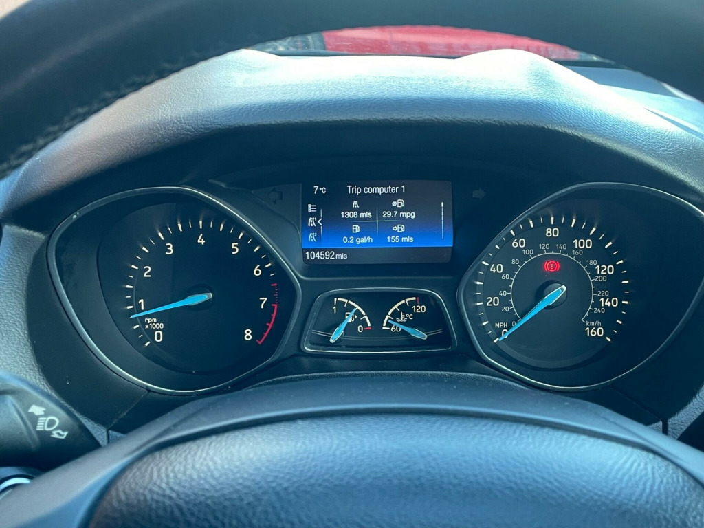 This 2015 Ford Focus Titanium is a well maintained example, ready for its next owner. It features a responsive 1.5 litre petrol engine, meeting Euro 6 emissions standards. Inside, you'll find the convenience of Electronic Automatic Temperature Control for effortless climate management, and Bluetooth connectivity allowing for seamless audio streaming. For added ease, it comes equipped with rear parking sensors and automatic headlights, which also include an automatic on function.The Ford Focus T Titanium offers a compelling blend of performance and practicality. Its acceleration from 0 to 62 miles per hour in just 8.9 seconds demonstrates its lively performance, making it a more engaging drive than many comparable vehicles. Furthermore, the generous boot space ensures you have ample room for shopping, luggage, or any other essentials, highlighting its versatility for everyday use and longer journeys., in alloy wheels - 10 spoke, 8in high resolution touchscreen, abs - anti-lock braking system, active city stop, airbag - front passenger, airbags - curtain, airbags - drivers and front passenger side airbag, automatic dimming rear view mirror, automatic rain sensing wipers, bluetooth - audio streaming, chrome finish on upper door line, colour tft instrument cluster display, cruise control with speed limiter, door handles - body colour, door mirrors - heated - electric - integrated side indicators - body coloured, drivers airbag, eatc - electronic automatic temperature control - climate control, eba - emergency brake assist, epas - electric power assisted steering, esp - electronic stability programme, electric windows - front with one touch lowering drivers, emergency assistance, ford am-fm cd audio system, ford dab audio system with sync, ford easy-fuel capless refuelling system, ford eco mode - driver information system, ford power starter button, ford sync, front fog lights, full body styling kit, headlights - automatic, heated front windscreen, hill start assist, ips - intelligent protection system, isofix - child seat attachments, keyless start, led daytime running lights, mykey, parking sensor - rear, pedals - sports, premium centre console, premium centre console - sliding armrest, rear spoiler - body colour, remote central locking, seats - drivers lumbar support, seats - front sports, sports style front seats - inidividual red stitching, steering column - rake and reach adjustment, steering wheel - audio controls, suspension - sports, tvc - torque vectoring control, thatcham category 1 alarm, traction control - tc, trip computer, tyre pressure monitoring system, usb connection, voice control - audio, ford sync2 dab navigation system