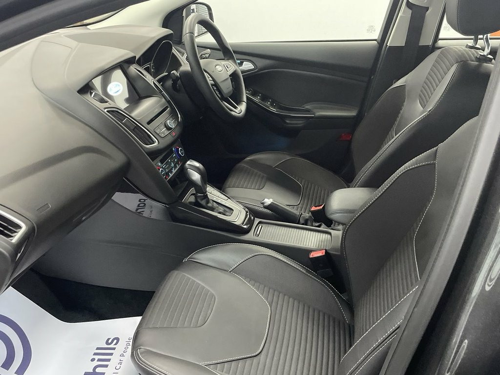 5930 MILES ONLY, ONE OWNER, AUTOMATIC, FULL FORD SERVICE HISTORY, 8 STAMPS, FORD TOUCHSCREEN INFOTAINMENT SYSTEM FEATURING HDD SAT NAV AND BLUETOOTH PHONE AND MEDIA ENABLING SEAMLESS MUSIC STREAMING, AIR CON, 17" ALLOYS, DAYTIME RUNNING LIGHTS, HALF LEATHER, FINANCE MONTHLY PAYMENTS AVAILABLE ON THIS CAR. This 2017 Ford Focus Titanium X Finished in Magnetic grey metallic with black premium half leather interior presents an exceptional opportunity with its remarkably low mileage of just 5927 miles, a testament to its single owner history. This Euro 6 compliant 1.5 litre petrol model offers a refined driving experience. The Titanium X trim level ensures a host of desirable features designed for comfort and convenience. You'll appreciate the ease of Keyless Entry and the Ford Key Free System, allowing you to unlock and start the car without fumbling for keys. Stay comfortable in any weather with Dual Zone Electronic Automatic Temperature Control, and navigate tight spaces with confidence thanks to the Enhanced Active Park Assist, which includes front and rear parking sensors. The Bi Xenon headlights with adaptive lighting provide excellent visibility, adjusting their beam for optimal illumination. This Focus achieves 0-60mph in a brisk 8.9 seconds, demonstrating a responsive performance that sets it apart from other vehicles in its class. Heated screen, start-stop, electric windows and mirrors, remote central locking alarm and immobilizer, centre arm rest, isofix rea 17in Alloy Wheels - 15 Spoke, Active City Stop, Airbags - Driver and Front Passenger, Airbags - Front and Rear Side Curtain, Airbags - Front Side Impact, Alarm - Thatcham Category 1 with Volume , Anti-Lock Braking System - ABS with Elec, Automatic Dimming Rear View Mirror, Automatic Headlights, Bi-Xenon Headlights with Adaptive Lighti, Capretto - Groove Cloth - Leather - Char, Centre Console - Premium with Sliding Ar, Chrome Finish on Upper Door Line, City Pack, Colour TFT Instrument Cluster Display, Convenience Pack, Courtesy Light - Ambient LED Courtesy Li, Courtesy Light - Front and Rear Passenge, Cruise Control with Active Speed Limiter, DEATC - Dual-Zone Electronic Automatic T, Door Mir
