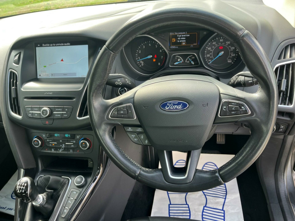 This 2016 Ford Focus Titanium X boasts exceptionally low mileage for its age, having covered just 22,379 miles, and benefits from a full dealership service history. This 1.5L petrol model, registered in 2016, is a Euro 6 compliant vehicle and comes with a 3 month warranty for your peace of mind. Its MOT is valid until April 2026, and a clear vehicle history check confirms its excellent provenance.The Ford Focus Titanium X is equipped with a premium Ford SYNC2 DAB Navigation System, a power tilt and slide sunroof, and the convenient KeyFree System for keyless entry. For added practicality, it features door edge protectors and a rear view camera with parking assistance. This model offers impressive performance with a 0-62mph acceleration time of 8.6 seconds, and its large boot space provides ample room for luggage or shopping, setting it apart from other vehicles in its class. The last service was completed on 2025-04-09 at 21,535 miles.Please call 07976 200011 for further details.Appointment only, wer tilt and slide sunroof, premium ford sync2 dab navigation system, keyfree system, door edge protectors, 12v power socket - front, 17in alloy wheels - 15 spoke, 8in touchscreen colour display, abs - anti-lock braking system, aux connection, active city stop, air conditioning - dual zone electronic automatic temperature control, airbag - front passenger, airbags - curtain, airbags - curtain rear, airbags - side impact, anti-submarining seat bases, armrest - folding centre - rear, automatic dimming rear view mirror, automatic rain sensing wipers, bi-xenon headlights, black headlight bezel, bluetooth handsfree phone system, body colour bumpers, body colour exterior mirrors, centre console - additional 12v power socket, chrome finish on upper door line, city pack, colour tft instrument cluster display, convenience pack, cruise control with adjustable speed limiter, door handles - body colour, door mirrors with integrated indicators, drivers airbag, eba - emergency brake assist, ebd - electronic brakeforce distribution, esp - electronic stability programme, electric windows - front and rear with one touch, electric windows - global opening-closing, emergency assistance, emergency brake warning, floor mats - carpet - front, floor mats - carpet - front and rear, ford am-fm cd audio system, ford dab audio system, ford easy-fuel capless refuelling system, ford eco mode - driver information system, ford sync2, front fog lights, front grille - chrome, front parking sensors, front seat - passenger manual adjustment, front seat belts with pre-tensioners, fuel computer, handbrake cover - leather, headlights - adaptive, headlights - automatic, headlights - jet wash, headlights - static cornering lights, heated driver and passenger seats, heated front windscreen, heated washer jets, height-adjustable mounts on front seat belts, hill start assist, ips - intelligent protection system, isofix - child seat attachments, interior door lever - chrome finish, keyless start, led daytime running lights, locking wheel nuts, mini steel spare wheel, multi-colour ambient led lighting, mykey, park assist - active, parking sensor - rear, pedals - collapsible, pollen filter, power adjustable driver seat, power fold door mirrors, power steering, premium centre console, premium centre console - sliding armrest, rear auxiliary power socket - 12v, rear lights - led technology, rear seat - folding centre armrest with 2 integrated cup holders and flip up storage, rear spoiler - body colour, rear view camera, remote central locking, sd card reader, scuff plates - front - aluminium finish with ford logo, seat - driver electric height adjustment, seats - 60-40 rear split back, seats - drivers lumbar support, seats - front sports, seats - passenger height adjustment, seats - passenger lumbar support, speakers - x6, steering column - collapsible, steering column - rake and reach adjustment, steering wheel - 3 spoke - leather trimmed, steering wheel - audio controls, tvc - torque vectoring control, thatcham category 1 alarm, traction control - tc, tyre pressure monitoring system, usb connection, voice control - audio