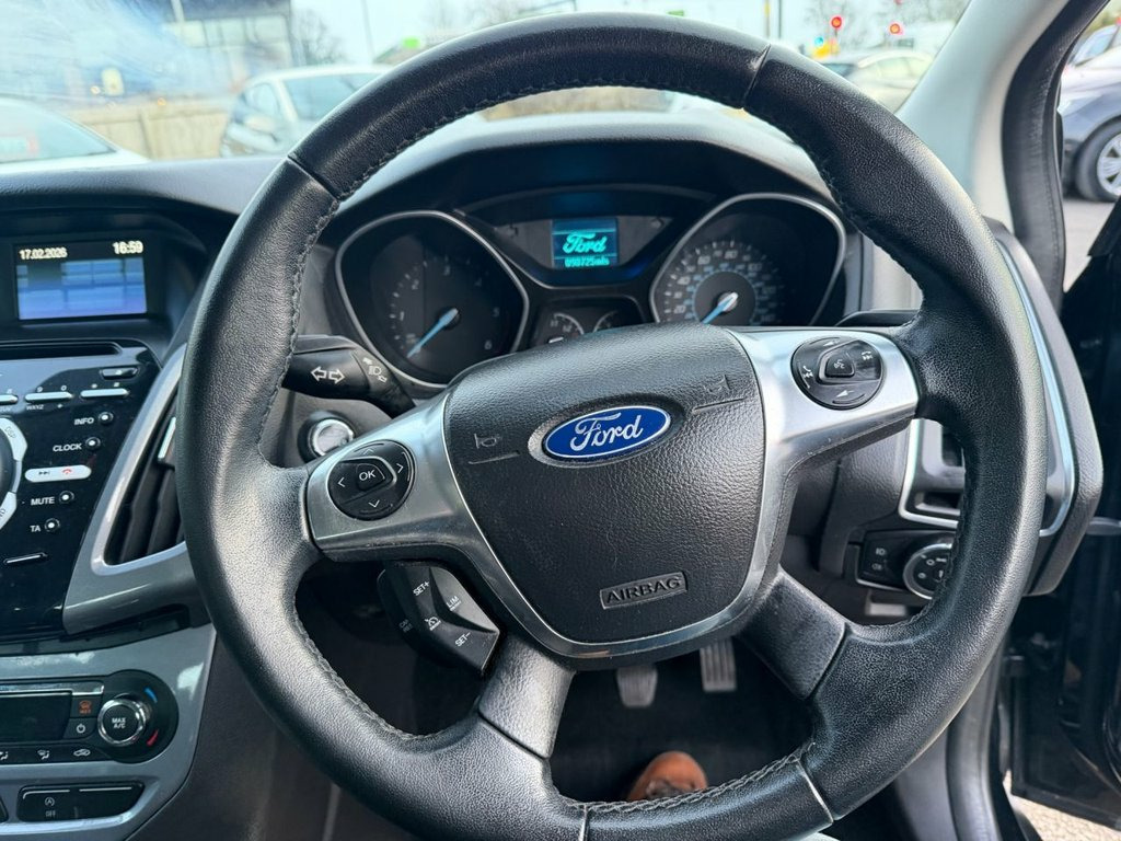 LOADS OF SERVICE HISTORY. LONG MOT. This 2013 Ford Focus TDCi Titanium presents an exceptional opportunity with its remarkably low mileage of just 90,000 miles for its age, and a clear vehicle history check. This well appointed Titanium trim model is powered by an efficient 1.6 litre diesel engine, offering a compelling blend of performance and economy. You will appreciate the impressive fuel economy of up to 76 miles per gallon, which, combined with its low CO2 emissions, makes this Focus a very economical choice. Furthermore, its low insurance group rating contributes to lower running costs, and the generous boot space ensures practicality for all your needs. These factors collectively highlight how this Ford Focus stands out as a superior option compared to other vehicles in its class. 12V Power Socket - Front, 12V Power Socket - Rear, 16in Alloy Wheels - 10x2 Spoke, ABS - Anti-lock Braking System, Air Conditioning - Dual Zone Electronic , Airbags - Front Passenger, Airbags - Front and 2nd Row Curtain, Airbags - Side Impact, Armrest - Centre Console Mounted with St, Armrest - Folding Centre - Rear, Automatic Dimming Rear View Mirror, Automatic Rain Sensing Wipers, Bluetooth Handsfree and Voice Control, Body Colour Exterior Mirrors, Bright Finish on Upper Door Line, Centre Console with open Stowage Bins, Cruise Control with Speed Limiter, Cupholders - Rear, Door Mirrors - Electrically Operated and, Door Mirrors with Integrated Indicators, Drivers Airbag, EBA - Emergency Bra