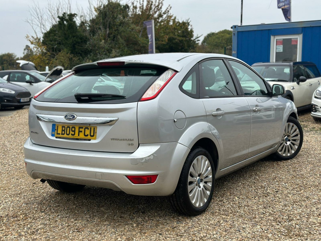 CAM BELT AND WATER PUMP CHANGED AT 103647 MILES, 2 KEYS, 1 FORMER KEEPER SINCE NEW, This 2009 Ford Focus Titanium boasts a clear vehicle history, offering you peace of mind. Powered by a reliable 1.6L petrol engine, this model is presented in the well appointed Titanium trim. Its MOT is valid until January 2026, and it comes with a 3 month warranty for added security. The Ford Focus Titanium is a practical choice, offering generous boot space for all your needs, from weekly shopping to weekend getaways. Furthermore, its position within a low insurance group means that running costs are kept to a minimum, making it an economical option compared to many other vehicles in its class.. Adjustable Steering Column/Wheel, Air Bag Driver, Air Bag Passenger, Air Bag Side, Air-Conditioning, Alarm, Alloy Wheels (16in), Anti-Lock Brakes, Body Coloured Bumpers, Central Door Locking, Centre Rear Seat Belt, Computer (Driver Information System), Deadlocks, Electric Windows (Front), Head Air Bags, Head Restraints, Heated Front Screen, Immobiliser, In Car Entertainment (Radio/CD/MP3), Mirrors External, Mirrors Internal, Power-Assisted Steering, Seat - ISOFIX Anchorage Point, Seat Height Adjustment, Seat Lumbar Support, Side Protection Mouldings, Spare Wheel (Space Saver), Speakers, Steering Wheel Mounted Controls (Audio), Tinted Glass, Upholstery Cloth. Full service history