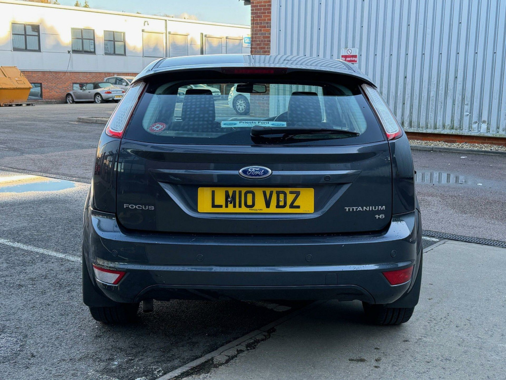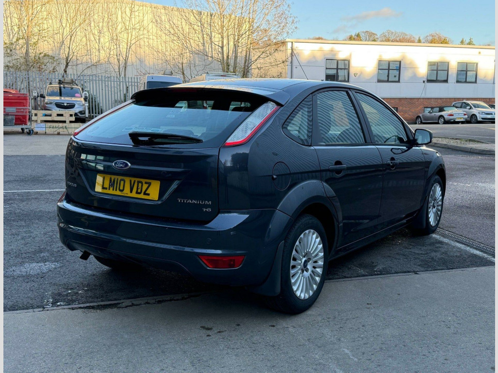 ULEZ Compliant, Warranty Cover Incl, Nationwide Delivery Available, Warranted Mileage, Only Two Owners From New, 2010 Model Ford Focus 1.6 Titanium 5dr 6 Speed Manual, Registered June 2010/10. Finished In Grey Metallic With Charcoal Interior & Titanium Inserts. Comes With Full Service History, Ford Main Dealer & Independent, 15 Service Entries, Recent Service At 84k, 2 key Fobs & 1 Key, Leather Folder & all The Manuals, MOT Exp: 30/06/2026. Great Spec: Titanium Pack, Tailgate Spoiler, 16'' Alloys, Rear Parking Sensors, Privacy Glass, DAB/Radio/CD/MP3/USB/Aux, Bluetooth, Auto Lights & Auto Wipers, Heated Charcoal Seats With Titanium Trim, Air-Conditioning, Multi Function Leather Steering Wheel, Voice Control, Electric Heated Door Mirrors, Full Electric Windows, ESP, Isofix, Spare Wheel. speakers, 7 x 16in multi-spoke alloy wheels, air-conditioning, airbags - front side impact and side curtain, alarm, anti-lock brakes (abs) and emergency brake assist (eba), auto-dimming rear-view mirror, body colour bumpers, centre rear seat belt, computer (driver information system), deadlocks, drivers airbag, drivers seat side manual lumbar adjustment, drivers and passengers manual comfort seat height and fore/aft adjustment, comfort style, electric hydraulic power assisted steering (ehpas), front passengers airbag, front and rear head restraints, head air bags, heated front windscreen, immobiliser, mini spare wheel, power - operated/heated door mirrors w. body colour housings and approach lights, power front and rear windows, privacy glass (rear window only), remote central locking, seat - isofix anchorage point, side protection mouldings, sony cd/mp3 radio with remote, steering column - rake and reach adjustable, steering wheel mounted controls (audio), upholstery - new york cloth, cruise control, dab radio/cd player/mobile nav. & bluetooth/usb, heated driver/passenger seats, premium velour floor mats, park assist rear sensors, alloy wheels - 17in, metallic paint