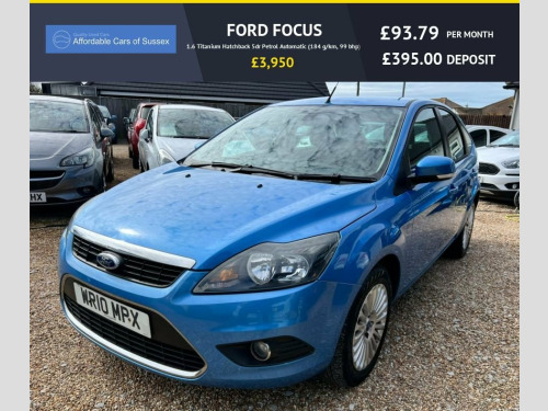 This 2010 Ford Focus 1.6 Titanium Hatchback 5dr Petrol Automatic (184 g Hatchback is currently available for £3,950 in Peacehaven East Sussex with Petrol engine and Automatic gearbox. For more information or to arrange a viewing, click here to send us an email using form below.