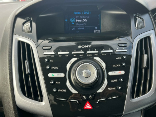 This 2014 Ford Focus Titanium Navigator offers a superb blend of style and practicality, making it an excellent choice for any driver. Powered by an efficient 1.6 litre petrol engine, this model boasts a Titanium Navigator trim, ensuring a high level of specification. You'll appreciate the convenience of rear parking sensors with parking assistance, automatic headlights that illuminate the road ahead without you needing to think about it, and dual zone electronic automatic climate control for personalised comfort. Furthermore, the integrated Bluetooth handsfree and voice control system allows for safe and easy management of calls and music while on the move.This particular Ford Focus stands out with its low insurance group, indicating that running costs are likely to be more affordable compared to similar vehicles. The inclusion of features such as automatic headlights and dual zone climate control demonstrates a thoughtful specification that enhances the driving experience. Combined with the reliable Ford Focus platform and the Titanium Navigator's comprehensive equipment list, this car represents a well rounded and appealing option for those seeking a dependable and feature rich vehicle.. 12V Power Socket - Front, 12V Power Socket - Rear, 16in Alloy Wheels - 5x3 Spoke, 5in Colour Screen, ABS - Anti-lock Braking System, Air Conditioning - Dual Zone Electronic Automatic Temperature Control, Airbags - Curtain, Airbags - Front Passenger, Airbags - Side Impact, Armrest - Centre Console Mounted with Storage Box, Armrest - Folding Centre - Rear, Automatic Dimming Rear View Mirror, Automatic Rain Sensing Wipers, Bluetooth Handsfree and Voice Control, Centre Console - Two Cup Holders, Chrome Finish on Upper Door Line, City Pack, Cruise Control with Speed Limiter, Door Handles - Body Colour, Door Mirrors - Heated - Electric - Auto Foldable - Integrated Side Indicators - Body Coloured, Drivers Airbag, EBA - Emergency Brake Assist, EBD - Electronic Brakeforce Distribution, ESP - Electronic Stability Programme, Electric Windows - Front and Rear with One Touch Drivers, Emergency Assistance, Emergency Brake Lights, Ford Eco Mode - Driver Information System, Ford Power Starter Button, Ford SYNC, Front Fog Lights, Gearshift Knob - Leather, Headlights - Automatic, Headlights - Follow Me Home, Heated Front Windscreen, Heated Washer Jets, High Level TFT Instrument Cluster Screen, Hill Start Assist, IPS - Intelligent Protection System, ISOFIX - Child Seat Attachments, LED Ambient Courtesy Lighting, Load Compartment Tonneau Cover, Locking Wheel Nuts, Mini Steel Spare Wheel, Parking Sensor - Rear, Power Assisted Steering, Rear Lights - LED, Rear Spoiler - Body Colour, Remote Central Locking, Scuff plates - Front aluminium-finish with Ford logo, Seats - 60-40 Rear Split Back, Seats - Drivers Lumbar Support, Seats - Drivers Manual Height and Fore-Aft Adjustment, Seats - Front Sports, Silver Roof Rails, Sony DAB CD MP3 and USB, Sony DAB Navigation System, Speakers - x9, Steering Column - Rake and Reach Adjustment, Steering Wheel - 4 Spoke Leather Trimmed, Steering Wheel - Multifunction, Stereo radio-CD, TVC - Torque Vectoring Control, Thatcham Category 1 Alarm, Traction Control - TC, Trip Computer, USB Connection - iPod Connectivity, Voice Control - Audio.