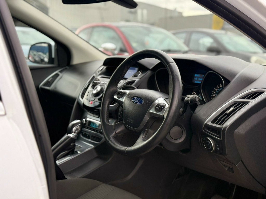 This 2013 Ford Focus Titanium presents an exceptional opportunity with its remarkably low mileage of just 60,000 miles for its age. This well maintained example features a 1.6 litre petrol engine and comes with partial service history, offering peace of mind. Inside, you'll find dual zone electronic automatic climate control for personalised comfort, and Bluetooth handsfree with voice control for seamless connectivity. The headlights automatically adjust to lighting conditions, and the premium Sony DAB audio system with branded sound provides an enjoyable listening experience.The Ford Focus Titanium is a practical choice, boasting a large boot space perfect for shopping trips or luggage. Furthermore, its position within a low insurance group makes it an economical option for many drivers, indicating it is likely to be less expensive to insure than comparable vehicles. This combination of low mileage, practical features, and cost effective ownership makes this Focus a compelling proposition. v power socket - front, 12v power socket - rear, 16in alloy wheels - 10x2 spoke, abs - anti-lock braking system, air conditioning - dual zone electronic automatic temperature control, airbags - front passenger, airbags - front and 2nd row curtain, airbags - side impact, armrest - centre console mounted with storage box, automatic dimming rear view mirror, automatic rain sensing wipers, bluetooth handsfree and voice control, bright finish on upper door line, centre console - two cup holders, chrome finish on upper door line, courtesy light - footwell illumination, cruise control with speed limiter, door mirrors - heated - electric - integrated side indicators - body coloured, drivers airbag, eba - emergency brake assist, ebd - electronic brakeforce distribution, esp - electronic stability programme, electric windows - front and rear with one touch drivers, emergency brake lights, ford am-fm cd audio system, ford easy-fuel capless refuelling system, ford eco mode - driver information system, front fog lights, front seat - passengers manual fore-aft adjustment, front lower grille - high-gloss black, front suspension - independent with macpherson struts, front upper grille - high-gloss black with chrome bar, fuel computer, gear knob - leather, headlights - automatic, headlights - follow me home, heated front windscreen, heated washer jets, hill start assist, ips - intelligent protection system, isofix - child seat attachments, interior door lever - chrome finish, led ambient courtesy lighting, locking wheel nuts, map reading lights front and rear, mini steel spare wheel, pollen filter, power steering, premium centre console, rear lights - led, rear spoiler, remote central locking, scuff plates - front aluminium-finish with ford logo, seats - 60-40 rear split back, seats - drivers lumbar support, seats - drivers manual height and fore-aft adjustment, seats - front sports, sony dab audio system, speed limiter, steering column - rake and reach adjustment, steering wheel - 4 spoke leather trimmed, steering wheel - multifunction, thatcham category 1 alarm, traction control - tc, usb connection - ipod connectivity, z-shape handbrake