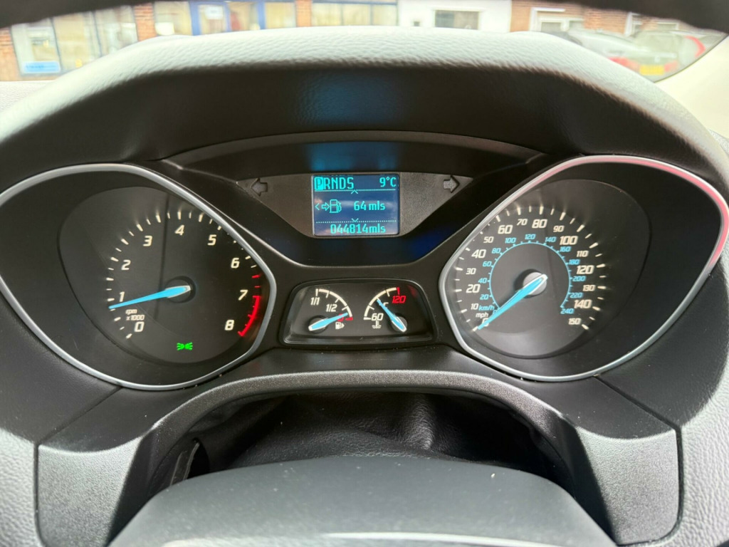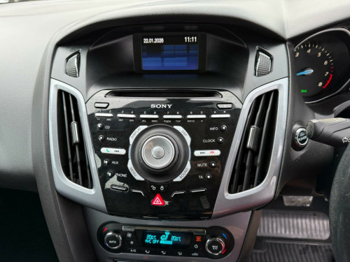 This 2013 Ford Focus Titanium presents an exceptional opportunity with its remarkably low mileage of just 44,000 miles. This well maintained example is powered by a 1.6 litre petrol engine and features the desirable Titanium trim. Inside, you'll find a host of convenient features including a Sony DAB audio system with a branded sound system, dual zone electronic automatic climate control for personalised comfort, and Bluetooth handsfree with voice control for seamless connectivity on the go. The automatic headlights ensure optimal visibility in varying conditions.The Ford Focus Titanium offers excellent value, indicated by its low insurance group and impressive fuel economy of 45 miles per gallon. Its low CO2 emissions also contribute to its appeal, making it a more economical choice compared to many other vehicles. This combination of efficiency, technology, and low running costs makes this Focus a smart and practical option for any driver. v power socket - front, 12v power socket - rear, 16in alloy wheels - 10x2 spoke, abs - anti-lock braking system, air conditioning - dual zone electronic automatic temperature control, airbags - front passenger, airbags - front and 2nd row curtain, airbags - side impact, armrest - centre console mounted with storage box, automatic dimming rear view mirror, automatic rain sensing wipers, bluetooth handsfree and voice control, bright finish on upper door line, centre console - two cup holders, centre console with open stowage bins, chrome finish on upper door line, courtesy light - footwell illumination, cruise control with speed limiter, door mirrors - heated - electric - integrated side indicators - body coloured, drivers airbag, eba - emergency brake assist, ebd - electronic brakeforce distribution, epas - electric power assisted steering, esp - electronic stability programme, electric windows - front and rear with one touch drivers, emergency assistance, emergency brake lights, ford am-fm cd audio system, ford easy-fuel capless refuelling system, ford eco mode - driver information system, ford sync, front fog lights, front seat - passengers manual fore-aft adjustment, front lower grille - high-gloss black, front suspension - independent with macpherson struts, front upper grille - high-gloss black with chrome bar, gear knob - leather, gearshift knob - leather, headlights - automatic, headlights - follow me home, heated front windscreen, heated washer jets, hill start assist, ips - intelligent protection system, isofix - child seat attachments, interior door lever - chrome finish, led ambient courtesy lighting, locking wheel nuts, map reading lights front and rear, mini steel spare wheel, pollen filter, premium centre console, rear lights - led, remote central locking, scuff plates - front aluminium-finish with ford logo, seats - 60-40 rear split back, seats - drivers lumbar support, seats - drivers manual height and fore-aft adjustment, seats - front sports, silver roof rails, sony dab audio system, steering column - rake and reach adjustment, steering wheel - 4 spoke leather trimmed, steering wheel - multifunction, tft display screen, tvc - torque vectoring control, thatcham category 1 alarm, tonneau cover, traction control - tc, trip computer, usb connection - ipod connectivity, z-shape handbrake
