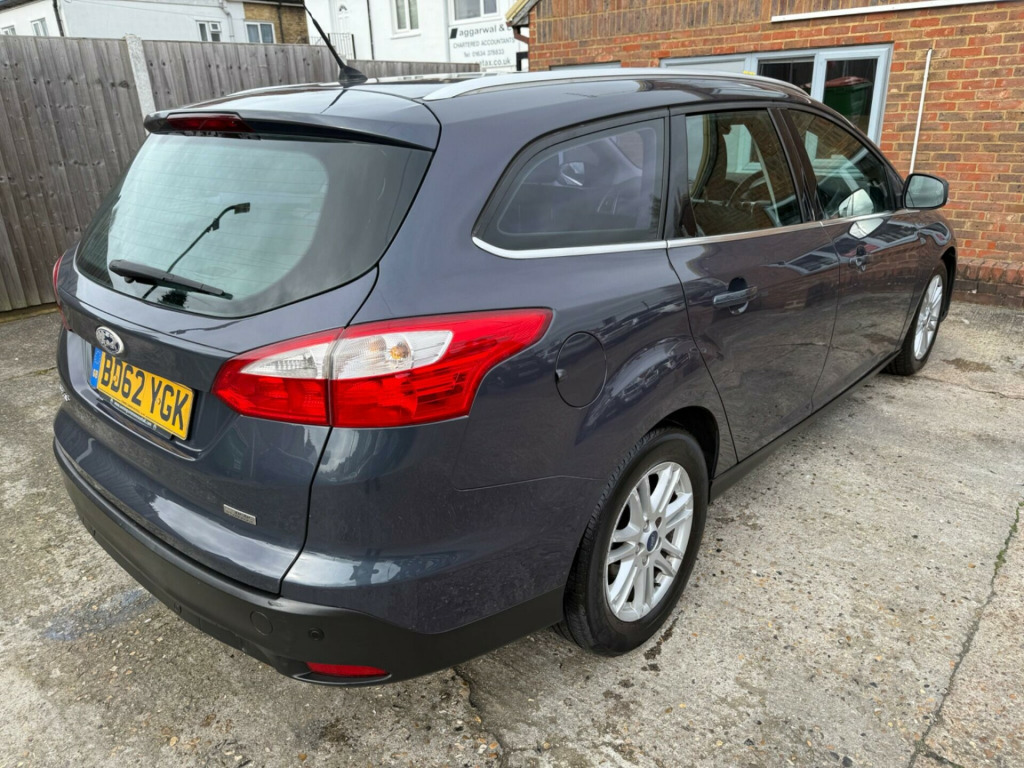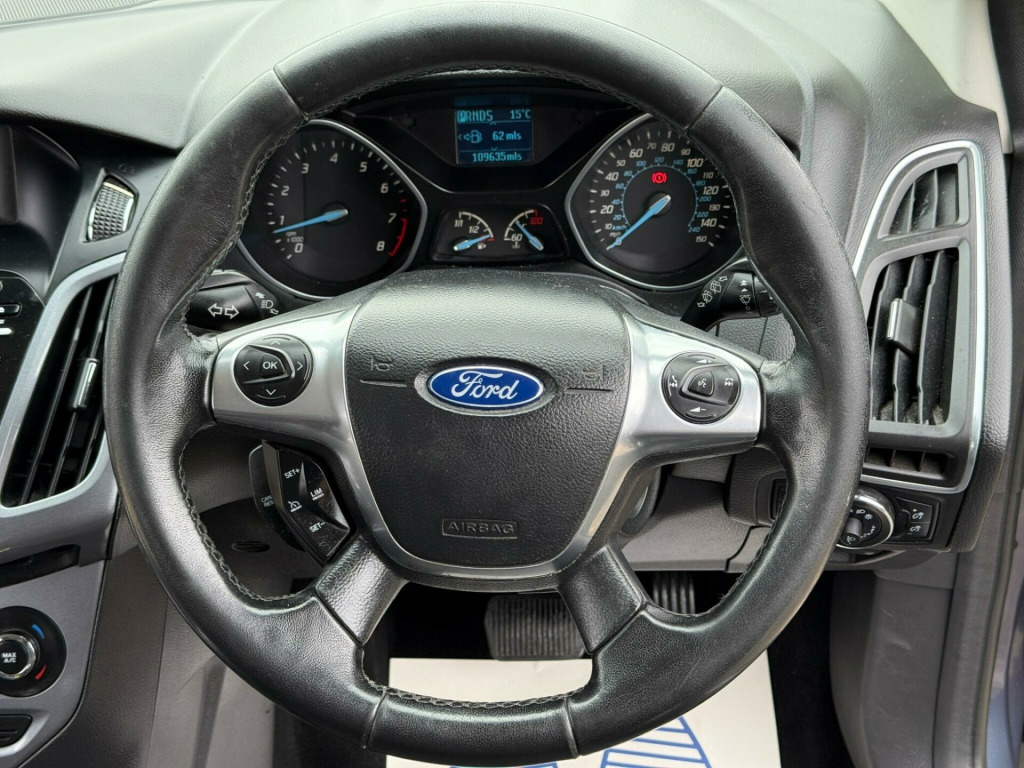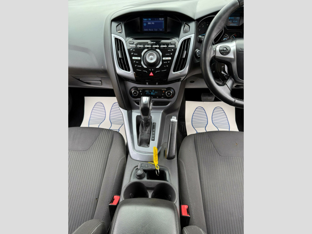 This 2013 Ford Focus Titanium is presented with a clear vehicle history check, offering you peace of mind. This popular model features a 1.6 litre petrol engine and comes in the well appointed Titanium trim. You will find the City Pack enhances its usability, while the Sony DAB Premium Sound System, complete with Ford Sync and Bluetooth handsfree with voice control, ensures your journeys are both entertaining and connected. Automatic headlights and dual zone electronic automatic temperature control for the air conditioning add to the convenience.The Ford Focus Titanium stands out with its impressive fuel economy, achieving up to 45 miles per gallon, which is better than many other vehicles in its class. Furthermore, its low CO2 emissions and low insurance group rating indicate that running costs are kept to a minimum, making this a sensible and economical choice for everyday driving. ny dab audio system - radio/cd/usb/mp3/music streaming via bluetooth, air conditioning - dual zone electronic automatic temperature control, headlights - automatic, automatic rain sensing wipers, heated front windscreen, cruise control with speed limiter, electric windows - front and rear with one touch drivers, tinted glass, door mirrors - heated - electric - integrated side indicators - body coloured, 16in alloy wheels - 10x2 spoke, keyless entry/start with 1 remote key fob, steering wheel - multifunction, fuel computer, ford eco mode - driver information system, seats - drivers manual height and fore-aft adjustment, seats - drivers lumbar support, armrest - centre console mounted with storage box, isofix - child seat attachments, seats - 60-40 rear split back, 12v power socket - front, 12v power socket - rear, abs - anti-lock braking system, airbags - front passenger, airbags - front and 2nd row curtain, airbags - side impact, automatic dimming rear view mirror, bright finish on upper door line, centre console - two cup holders, chrome finish on upper door line, courtesy light - footwell illumination, drivers airbag, eba - emergency brake assist, ebd - electronic brakeforce distribution, esp - electronic stability programme, emergency brake lights, ford easy-fuel capless refuelling system, front fog lights, front seat - passengers manual fore-aft adjustment, front lower grille - high-gloss black, front suspension - independent with macpherson struts, front upper grille - high-gloss black with chrome bar, gear knob - leather, headlights - follow me home, heated washer jets, hill start assist, ips - intelligent protection system, interior door lever - chrome finish, led ambient courtesy lighting, locking wheel nuts, map reading lights front and rear, mini steel spare wheel, pollen filter, power steering, premium centre console, rear lights - led, scuff plates - front aluminium-finish with ford logo, silver roof rails, steering column - rake and reach adjustment, steering wheel - 4 spoke leather trimmed, thatcham category 1 alarm, tonneau cover, traction control - tc, z-shape handbrake, parking sensors, bluetooth handsfree and voice control, sony dab premium sound system - includes ford sync, city pack