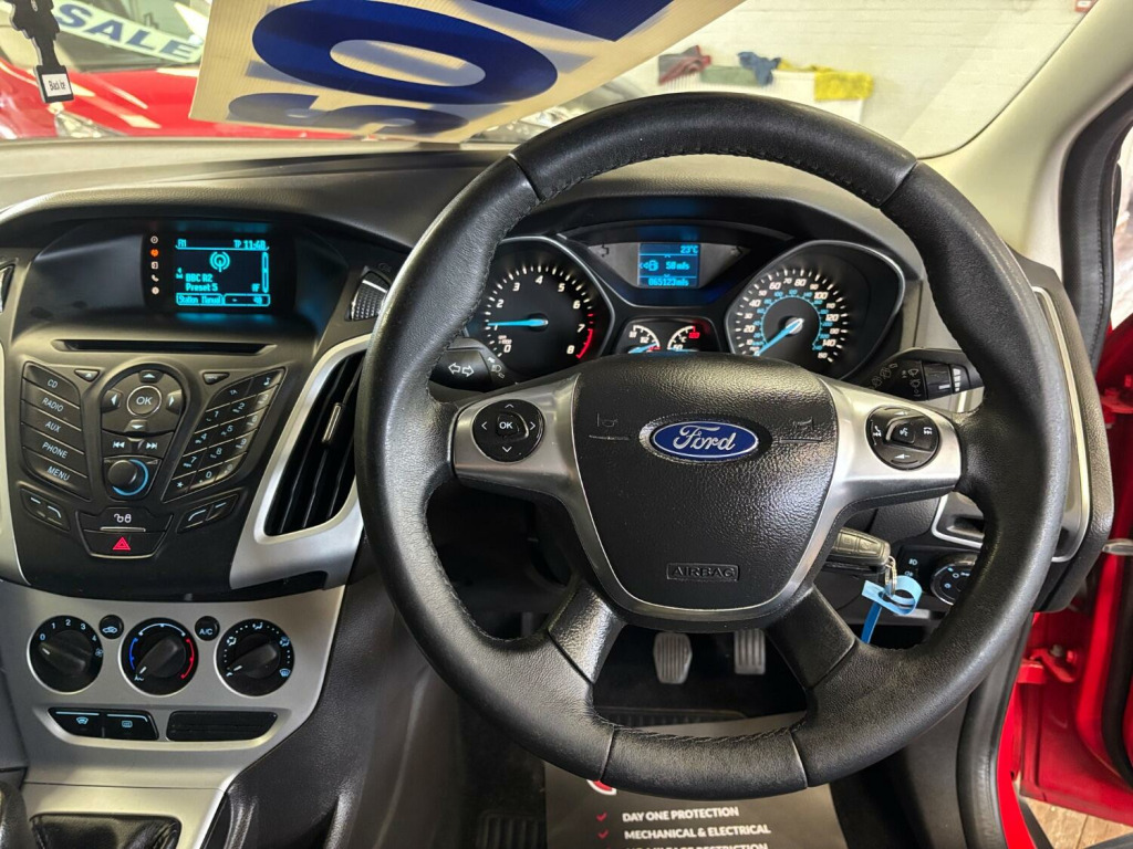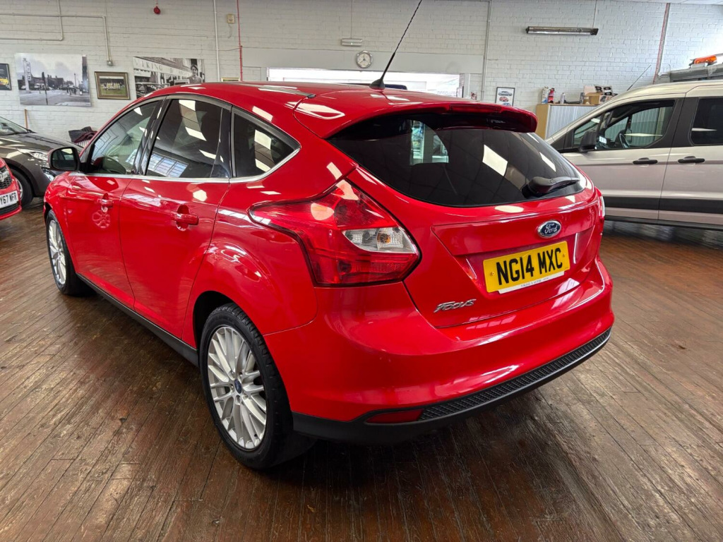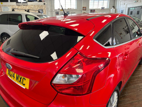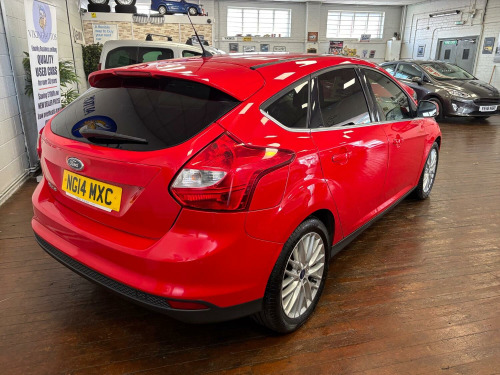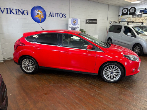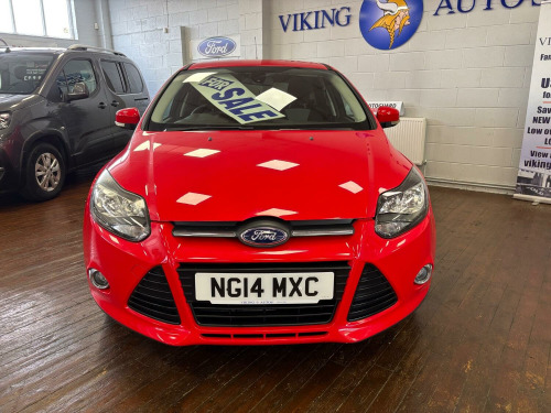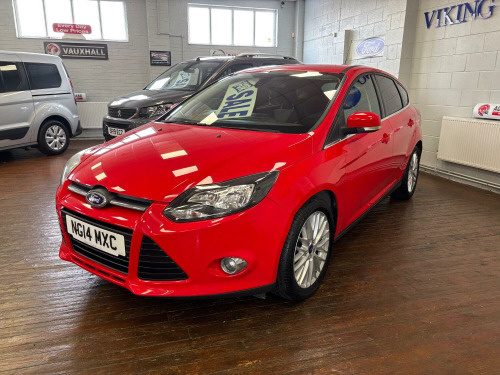 2014 Ford Focus 1.6 Zetec 5 door in race red, 2 former keepers, 65,000 miles with full service history, optional extra appearance pack including upgraded alloy wheels and privacy glass, Bluetooth, air conditioning, heated front screen, great value at £4995. , www.vikingautos.co.uk, , Local family run business from the same premises on Doncaster Road in Scunthorpe since 1981.