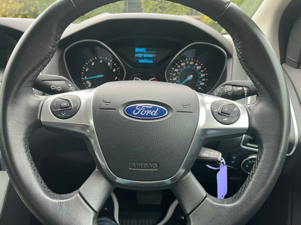 Discover this exceptional 2014 Ford Focus Zetec, boasting remarkably low mileage for its age, having covered just 26,427 miles. This well maintained example comes with a full service history, with its last service completed on 14 October 2025 at 26,427 miles, and a clear vehicle history check. It has had only two owners from new and will be provided with 12 months MOT for your peace of mind. The 1.6L petrol engine offers a balanced driving experience, complemented by desirable features such as rear parking sensors for easier manoeuvring, Bluetooth handsfree and voice control for seamless connectivity, and air conditioning to ensure a comfortable cabin environment.This Ford Focus Zetec stands out with its very low mileage, indicating it has been lightly used and well cared for, making it a superior choice compared to other vehicles of its age. Its low insurance group rating also suggests that running costs will be economical. Furthermore, the generous boot space provides ample room for shopping, luggage, or equipment, adding practicality to its appeal. New MOT, Advisories dealt with, 2 new tyres.Please call 07976 200011 for further information.Appointment only, rking sensor - rear, 16in spare wheel - steel, 12v power socket - front, 16in alloy wheels - 5x2 spoke, abs - anti-lock braking system, air conditioning, airbags - curtain, airbags - front passenger, airbags - side impact, bluetooth handsfree and voice control, chrome finish on upper door line, door handles - body colour, door mirrors - heated - electric - integrated side indicators - body coloured, drivers airbag, eba - emergency brake assist, ebd - electronic brakeforce distribution, esp - electronic stability programme, electrically-operated front windows with one touch drivers, emergency assistance, emergency brake lights, ford dab audio system with sync, ford eco mode - driver information system, ford sync, front fog lights, heated front windscreen, heated washer jets, ips - intelligent protection system, isofix - child seat attachments, locking wheel nuts, mini steel spare wheel, power assisted steering, rear spoiler - body colour, remote central locking, seats - 60-40 rear split back, seats - drivers lumbar support, seats - drivers manual height and fore-aft adjustment, seats - front sports, steering column - rake and reach adjustment, steering wheel - 4 spoke leather trimmed, steering wheel - multifunction, stereo radio-cd, tvc - torque vectoring control, thatcham category 1 alarm, traction control - tc, trip computer, usb connection - ipod connectivity, voice control - audio