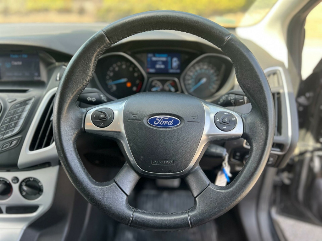 2014 Ford Focus Zetec Navigator 1.6 petrol finished in black. Only 48,000 warranted miles on the clock. MOT til 17th July 2026. 1 former keeper from new! Service history available; 11 services, 7 Main dealers. Comes with a fresh service. Cambelt and Waterpump done. Full V5 available. Comes with a top spec including; alloy wheels, leather steering wheel, multi-functional steering wheel, Radio DAB/FM, electric windows, central locking, AC/Climate control, Bluetooth, TPMS, cup holders and many more. Nationwide Delivery Available. P/X Welcome. HPI Clear. ULEZ Compliant. 2 Keys. Any questions don't hesitate to contact us on 07443456706. v power socket - front, 16in alloy wheels - 5 spoke, 5in colour screen, abs - anti-lock braking system, air conditioning, airbags - curtain, airbags - front passenger, airbags - side impact, armrest - centre console mounted with storage box, bluetooth handsfree and voice control, chrome finish on upper door line, door handles - body colour, door mirrors - heated - electric - integrated side indicators - body coloured, drivers airbag, eba - emergency brake assist, ebd - electronic brakeforce distribution, esp - electronic stability programme, electrically-operated front windows with one touch drivers, emergency assistance, emergency brake lights, ford dab audio system with sync, ford dab navigation system, ford eco mode - driver information system, ford sync, front fog lights, heated front windscreen, heated washer jets, high level tft instrument cluster screen, ips - intelligent protection system, isofix - child seat attachments, locking wheel nuts, mini steel spare wheel, power assisted steering, rear spoiler - body colour, remote central locking, seats - 60-40 rear split back, seats - drivers lumbar support, seats - drivers manual height and fore-aft adjustment, seats - front sports, steering column - rake and reach adjustment, steering wheel - 4 spoke leather trimmed, steering wheel - multifunction, stereo radio-cd, tvc - torque vectoring control, thatcham category 1 alarm, traction control - tc, trip computer, usb connection - ipod connectivity, voice control - audio