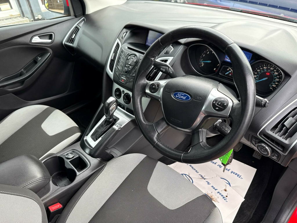 This 2014 Ford Focus Zetec Navigator presents a superb ownership proposition with its remarkably low mileage of just 65,000 miles and a history of only two previous owners, all confirmed by a clear vehicle history check. Powered by an efficient 1.6 litre petrol engine, this Focus Zetec Navigator is equipped with essential features for modern driving, including Bluetooth handsfree and voice control for seamless connectivity, and air conditioning to ensure a comfortable cabin environment regardless of the weather.This particular Focus Zetec Navigator stands out from others thanks to its favourable low insurance group, making it an economical choice for many drivers. Furthermore, its low CO2 emissions highlight its efficiency and environmental consideration. These factors combined with its well maintained provenance and desirable features make this Ford Focus a sensible and appealing option.. 12V Power Socket - Front, 12V Power Socket - Rear, 16in Alloy Wheels - 5 Spoke, 5in Colour Screen, ABS - Anti-lock Braking System, Air Conditioning, Airbags - Curtain, Airbags - Front Passenger, Airbags - Side Impact, Armrest - Centre Console Mounted with Storage Box, Bluetooth Handsfree and Voice Control, Chrome Finish on Upper Door Line, Door Handles - Body Colour, Door Mirrors - Heated - Electric - Integrated Side Indicators - Body Coloured, Drivers Airbag, EBA - Emergency Brake Assist, EBD - Electronic Brakeforce Distribution, ESP - Electronic Stability Programme, Electrically-Operated Front Windows with One Touch Drivers, Emergency Assistance, Emergency Brake Lights, Ford DAB Audio System with SYNC, Ford DAB Navigation System, Ford Eco Mode - Driver Information System, Ford SYNC, Front Fog Lights, Heated Front Windscreen, Heated Washer Jets, High Level TFT Instrument Cluster Screen, IPS - Intelligent Protection System, ISOFIX - Child Seat Attachments, Load Compartment Tonneau Cover, Locking Wheel Nuts, Mini Steel Spare Wheel, Power Assisted Steering, Rear Spoiler - Body Colour, Remote Central Locking, Seats - 60-40 Rear Split Back, Seats - Drivers Lumbar Support, Seats - Drivers Manual Height and Fore-Aft Adjustment, Seats - Front Sports, Silver Roof Rails, Speakers - x6, Steering Column - Rake and Reach Adjustment, Steering Wheel - 4 Spoke Leather Trimmed, Steering Wheel - Multifunction, Stereo radio-CD, TVC - Torque Vectoring Control, Thatcham Category 1 Alarm, Traction Control - TC, Trip Computer, USB Connection - iPod Connectivity, Voice Control - Audio.