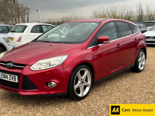 Boasting a full dealership service history and only two previous owners, this 2014 Ford Focus T Titanium X presents a superb example of a well cared for vehicle. Powered by a responsive 1.6 litre petrol engine, this Titanium X trim model offers an engaging driving experience with a swift 0-60mph time of just 7.9 seconds. You'll appreciate the convenience of front and rear parking sensors, making manoeuvring in tight spaces effortless. The impressive Sony DAB audio system, complete with Bluetooth handsfree and voice control, ensures your journeys are accompanied by excellent sound quality and seamless connectivity. Furthermore, the Bi-Xenon headlights provide superior illumination for safer driving in all conditions. This Ford Focus stands out from others thanks to its comprehensive provenance and desirable features. The full dealership service history indicates meticulous maintenance, offering peace of mind for the next owner. The inclusion of both front and rear parking sensors, alongside the advanced Bi-Xenon headlights, demonstrates a higher level of specification compared to many similar vehicles. The powerful yet efficient 1.6 litre petrol engine, combined with the quick acceleration, ensures a dynamic and enjoyable drive. With an MOT valid until October 2026, this Focus is ready for many more miles of reliable service. 12V Power Socket - Front, 12V Power Socket - Rear, 17in Alloy Wheels - 15 Spoke, ABS - Anti-lock Braking System, Air Conditioning - Dual Zone Electronic , Airbags - Front Passenger, Airbags - Front and 2nd Row Curtain, Airbags - Side Impact, Armrest - Centre Console Mounted with St, Automatic Dimming Rear View Mirror, Automatic Rain Sensing Wipers, Bi-Xenon Headlights, Bluetooth Handsfree and Voice Control, Bright Finish on Upper Door Line, Centre Console - Two Cup Holders, Centre Console with open Stowage Bins, Chrome Finish on Upper Door Line, City Pack, Convenience Pack, Courtesy Light - Footwell Illumination, Cruise Control with Speed Limiter, DDS - Deflation Detection System, Door Mirro