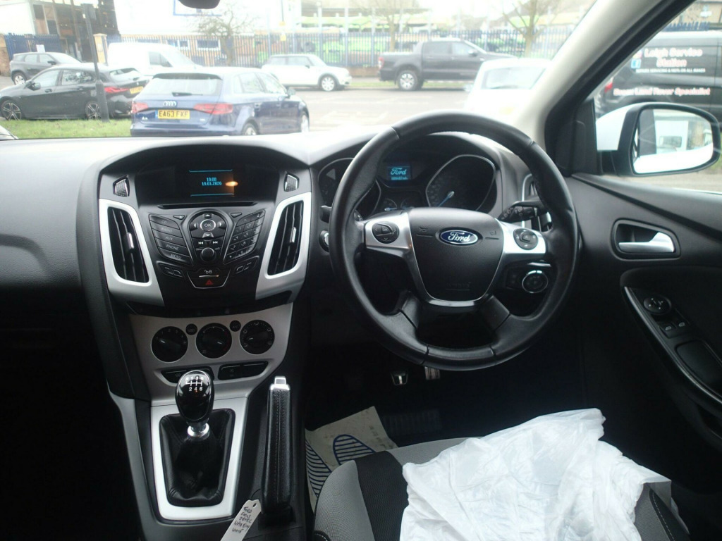 This 2014 Ford Focus T Zetec S offers a compelling blend of performance and practicality. Powered by a responsive 1.6 litre petrol engine, this model boasts an impressive 0 to 62 miles per hour acceleration time of just 7.9 seconds, demonstrating its dynamic capability. Inside, you'll find the convenience of Bluetooth handsfree and voice control, allowing for seamless connectivity on the go, alongside air conditioning to ensure a comfortable cabin environment in all conditions. The generous boot space further enhances its appeal, making it a versatile choice for everyday use and longer journeys alike.The Zetec S trim level signifies a focus on sporty styling and enhanced features, setting this Ford Focus apart from other vehicles in its class. Its brisk acceleration means you can enjoy a more engaging driving experience, while the inclusion of Bluetooth and air conditioning adds significant everyday convenience. Combined with its ample luggage capacity, this 2014 Ford Focus T Zetec S presents a well rounded package for those seeking a capable and feature rich hatchback., v power socket - front, 12v power socket - rear, 17in alloy wheels - 5x2 spoke - premium, abs - anti-lock braking system, air conditioning, airbags - front passenger, airbags - front and 2nd row curtain, airbags - side impact, armrest - centre console mounted with storage box, bluetooth handsfree and voice control, bright finish on upper door line, centre console with open stowage bins, chrome finish on upper door line, door mirrors - heated - electric - integrated side indicators - body coloured, drivers airbag, eba - emergency brake assist, ebd - electronic brakeforce distribution, epas - electric power assisted steering, esp - electronic stability programme, electrically-operated front windows with one touch drivers, emergency assistance, emergency brake lights, ford am-fm cd audio system, ford dab audio system, ford easy-fuel capless refuelling system, ford eco mode - driver information system, ford power engine start-stop button, ford sync, front fog lights, front lower grille - black, front seat - passengers manual fore-aft adjustment, front suspension - independent with macpherson struts, front upper grille - black with chrome bar, heated front windscreen, heated washer jets, ips - intelligent protection system, isofix - child seat attachments, locking wheel nuts, mid mfd - 3.5in dot matrix, mini steel spare wheel, pedals - sports, pollen filter, premium centre console, rear spoiler, remote central locking, seats - 60-40 rear split back, seats - drivers lumbar support, seats - drivers manual height and fore-aft adjustment, seats - front sports, steering column - rake and reach adjustment, steering wheel - 4 spoke leather trimmed, steering wheel - multifunction, tvc - torque vectoring control, thatcham category 1 alarm, traction control - tc, trip computer, usb connection - ipod connectivity, voice control - audio, z-shape handbrake