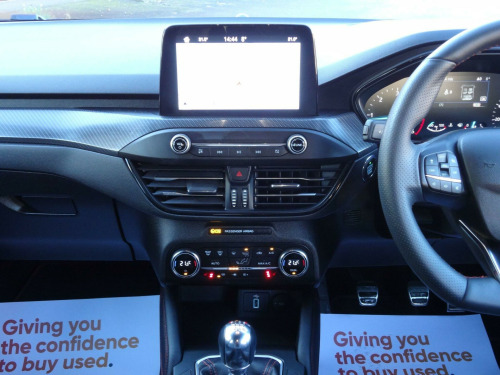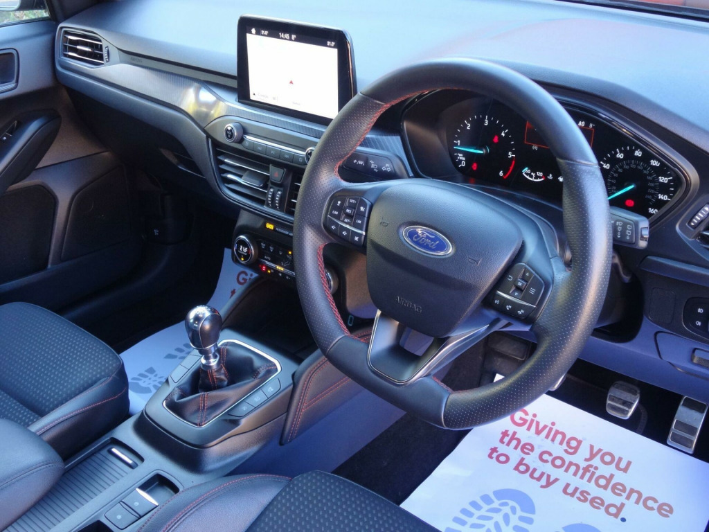 NEW SHAPE. INCREDIBLY RARE 2.0 DIESEL ST LINE X MODEL. JUST BEEN SERVICED AND MOT'D. 6 MONTHS WARRANTYThis stunning looking ST Line is also the X Pack model. Massive specification including- Sat Nav, Heated 1/2 Leather Seats, Adaptive Radar Cruise Control, Electric Drivers Seat, Front and Rear Parking Sensors, Power Folding Mirrors, LED Daytime Running Lights, Rain Sensing Wipers, Lane Keeping Assist, Pre Collision Warning, 18 inch Diamond Cut Alloys, Keyless Start, Dual Zone Digital Air Conditioning, Tyre Pressure Monitoring, Auto Headlights, Rear Privacy Glass, Traffic Sign Recognition (shows the speed limit on dash), Sliding Front Arm Rest, Bluetooth, DAB and much more.Service History- just been serviced, mot'd, had new front brake pads and will come with 6 Months Warrantywise Warranty ready to drive away. An incredibly rare car with the superb 2.0 engine. Perfect for the motorways and will give huge miles per gallon.FULLY HPI CLEAR AND NEVER BEEN SMOKED IN. Only 2 owners from new. Taken in part exchange at the main dealer then supplied directly to ourselves. Exceptionally clean and tidy car. Has clearly been cherished all of its life. These cars drive superb. Incredible vale for a top of the range new shape Focus ST Line X. 18in Alloy Wheels - 5x2 Spoke - ST-Line Matt Black Machined Black, 4.2in TFT Instrument Cluster Screen, 6-Way Power Adjustment Driver Seat, 8in Touchscreen Colour Display, Airbags - Driver and Front Passenger, Airbags - Front Side Impact, Airbags - Front and Rear Side Curtain, Alloy Finish Pedals, Anti-Lock Braking System - ABS with Electronic Brake Force Distribution - EBD, Automatic Dimming Rear View Mirror, Body Colour Bumpers, Centre Console with Armrest, Courtesy Light - Front and Rear Passengers - Overhead Halogen and Load Compartment, Cruise Control with Speed Limiter, DEATC - Dual-Zone Electronic Automatic Temperature Control, Door Handles - Body Colour, Drivers Seat Lumbar Adjust, EPAS - Electric Power Assisted Steering, Electric Parking Brake, Emergency Brake Warning, Enhanced Electronic Stability Control - ESC with Traction Control - Emergency Brake Assist - EBA - Hill Start Assist - HSA, Ford Easy Fuel - Capless Refuelling System, Ford Eco Mode - Driver Information System, Ford SYNC3 DAB Navigation System, FordPass Connect, Front Passenger Airbag Deactivation Switch, Front Seat - Drivers Manual Height and Fore-Aft Adjustment, Front Seat - Passengers Manual Fore-Aft Adjustment, Front Seats - Sports Style, Front Suspension - Independent with MacPherson Struts and Anti-Roll Bar, Front and Rear Floor Mats with Red Stitching, Front and Rear Seatbelt Minder, Gear Knob - Aluminium, Headlights - Halogen, Headliner - Black Woven, Heated Front Seats, IPS - Intelligent Protection System, Intelligent Speed Assistance, LED Daytime Running Lights, LED Front Fog Lights with Cornering Function, Lane Keeping Aid with Lane Departure Warning, Leather-Trimmed Handbrake, Locking Wheel Nuts, MyKey, Parking Sensor - Front and Rear, Passenger Seat Manual Height and Lumbar Adjust, Polished Twin Tailpipe, Post Collision Braking, Power Folding Door Mirrors with Puddle Lights, Pre-Collision Assist with Autonomous Emergency Braking and Pedestrian-Cyclist Detection, Pre-Collision Assist with Pedestrian Detection, Quickclear Heated Windscreen, Rain Sensitive Windshield Wipers, Rear Centre Headrest, Rear Privacy Glass, Rear Spoiler - Body Colour - Large, Red Brake Calipers, Remote Central Locking and Engine Immobiliser, ST Line Stainless Steel Scuff Plates, Seats - ISOFIX Mounting Provision for Child Seats, Selectable Drive Mode, Soft Console Knee Pads with Red Stitching, Spare Wheel - Mini Steel, Sports Tuned Suspension, Steering Column - Rake and Reach Adjustment, Steering Wheel - 3-Spoke Flat Bottom - Leather Trimmed with Red Stitching, Thatcham Category 1 Alarm, Trip Computer, Tyre Pressure Monitoring System, Unique ST-Line Upper and Lower Grille and Full Bodystyling Kit and ST-Line Wing Badges, Windows - Electrically Operated Front and Rear with One Touch Opening and Closing, Wipers - Standard with 6 Speed Interval Settings, Partial Leather - Ebony with Red Stitching, Convenience Pack, Driver Assistance Pack, Adaptive Radar Cruise Control, Front and Rear Parking Sensors, Power Folding Mirrors.