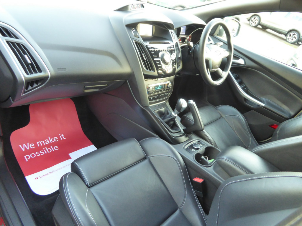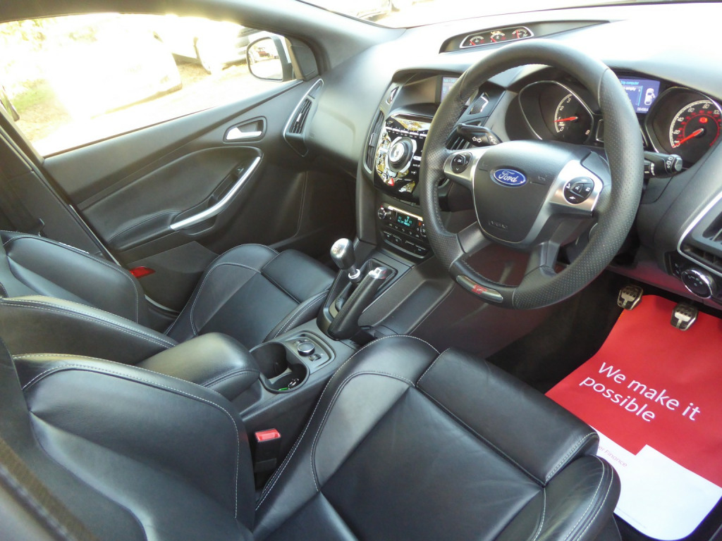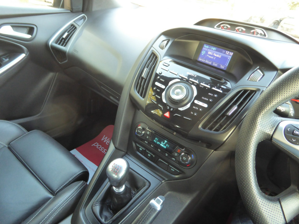 6 Speed Manual, Low Mileage & Low Ownership Focus ST-3 With A Comprehensive Service History Consisting Of 10x Recorded Services (8x Ford & 2x Independent) Just 3 Owners From New, 2 Keys. Presented In Moon Dust Silver With Freshly Powder Coated Gloss Black Alloy Wheels. The ST-3 Boasts A Huge Spec List As Standard With Full Black Leather Recaro Interior, Electric Front Seats, Heated Front Seats, Keyless Entry & Push Button Start, Xenon Headlights, Sony Audio With Bluetooth, DAB Radio, CD Player & USB Input. Power Fold Door Mirrors, Parking Sensors, Dual Zone Climate Control, Space Saver Spare Wheel. Excellent Condition Throughout, All Original Handbooks Present. Hpi Clear, Warranty Included, Part Exchange Welcome, No Hidden Fees, Open 7 Days