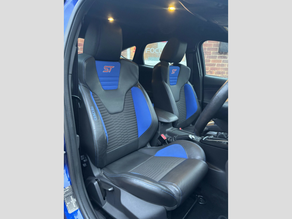 We are pleased to offer this absolute gem! 2 OWNERS FROM NEW Focus ST-2 finished in Deep Impact Blue. It has ONLY COVERED 19,800 MILES SINCE NEW! It has been meticulously looked after coming with all invoices for every service ever done, also with full health checks every year and no expense has ever been spared. It has been kept in a garage its whole life too. It is completely standard and original and has never been modified. Comes with a great factory spec including:*RECARO HALF LEATHER HALF COLOUR CODED BLUE CLOTH SPORT SEATS.*18'' GENUINE FORD ALLOY WHEELS WITH A MATCHING SET OF GOODYEAR EAGLE F1 TYRES. *QUICK CLEAR HEATED FRONT WINDSCREEN.* SYNC 2 MEDIA SYSTEM.*DUAL CLIMATE CONTROL.*ESC SPORT BUTTON.*ISOFIX POINTS IN THE REAR FOR CHILD SEATS.*MUCH MORE....We can offer finance on this vehicle if required and we also accept part exchange... Please be aware if a third party finance company is used there will be a small fee applied.WWW.ST-FOCUS.COM 01293 536444.EMAIL: ST-FOCUSHOTMAIL.COM'THE ORIGINAL FORD PERFORMANCE SPECIALISTS!' v power socket - front, 4.2in tft display, 8in touchscreen colour display, aux connection, bluetooth handsfree phone system, centre console - additional 12v power socket, colour tft instrument cluster display, emergency assistance, ford am-fm cd audio system, ford dab audio system, ford sync2, rear auxiliary power socket - 12v, speakers - x6, usb connection, 18in alloy wheels - unique st, body colour bumpers, body colour exterior mirrors, door handles - body colour, door mirrors - electrically operated and heated, door mirrors with integrated indicators, electric windows - front and rear with one touch, electric windows - global opening-closing, heated front windscreen, locking wheel nuts, mini steel spare wheel, st front door scuff plates, st full body styling kit, unique st rear spoiler, abs - anti-lock braking system, airbag - front passenger, airbags - curtain, airbags - curtain rear, airbags - side impact, anti-submarining seat bases, drivers airbag, eba - emergency brake assist, ebd - electronic brakeforce distribution, esp - electronic stability programme, emergency brake warning, enhance tvc - torque vectoring control, ford easy-fuel capless refuelling system, front seat belts with pre-tensioners, hill start assist, ips - intelligent protection system, isofix - child seat attachments, pedals - collapsible, remote central locking, steering column - collapsible, thatcham category 1 alarm, traction control - tc, air conditioning - dual zone electronic automatic temperature control, automatic dimming rear view mirror, automatic rain sensing wipers, floor mats - carpet - front and rear, handbrake cover - leather, height-adjustable mounts on front seat belts, keyless start, mykey, pollen filter, premium centre console, premium centre console - sliding armrest, seats - 60-40 rear split back, seats - drivers height adjustment, seats - front recaro sports, steering column - rake and reach adjustment, steering wheel - audio controls, steering wheel - st leather with red st logo, unique st leather gearshift knob, fuel computer, power steering, suspension - sports, tyre pressure monitoring system, voice control - audio, headlights - automatic, headlights - follow me home, headlights - halogen, led daytime running lights