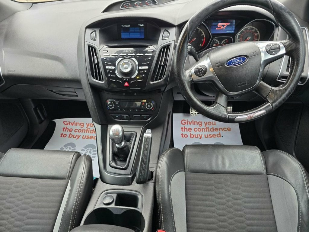 We're delighted to offer this stunning Ford Focus ST-2, a true performance hatchback combining power, style, and everyday practicality. This example has just been freshly serviced and comes with a new 12-month MOT, so it's fully prepared and ready to drive away today. Powered by the 2.0-litre EcoBoost engine producing 250 bhp, this Focus delivers thrilling performance through a precise 6-speed manual gearbox, all while offering the comfort and reliability Ford is known for. It's in excellent condition inside and out, clearly cared for throughout its life. Key Features: 12 Months MOT Just Serviced 6 Months Warranty Included (Extended Warranty Available) Finance Options Available Excellent Condition Inside & Out 2.0L EcoBoost Engine – 250 bhp Sporty ST Styling & Interior Why Choose Donaldson's Autocentre At Donaldson's Autocentre, we pride ourselves on providing quality vehicles prepared to the highest standards. Every car is carefully inspected, professionally serviced, and comes with trusted warranty coverage for total peace of mind. Test Drive & Part Exchange We welcome any inspection or test drive – simply contact us to arrange a convenient time. Part exchanges are also considered and valued fairly. Call us today on [01845 407740] Visit: www.donaldsonsautocentre.co.uk 12V Power Socket - Front, 18in Alloy Wheels - Unique ST, 4.2in TFT Display, ABS - Anti-lock Braking System, AUX Connection, Air Conditioning - Dual Zone Electronic , Airbags - Curtain, Airbags - Front Passenger, Airbags - Side Impact, Automatic Dimming Rear View Mirror, Automatic Rain Sensing Wipers, Bluetooth Handsfree and Voice Control, DDS - Deflation Detection System, Door Handles - Body Colour, Door Mirrors - Heated - Electric - Integ, Drivers Airbag, EBA - Emergency Brake Assist, EBD - Electronic Brakeforce Distribution, EPAS - Electric Power Assisted Steering, ESP - Electronic Stability Programme, Electric Windows - Front and Rear with O, Emergency Assistance, Emergency Brake Lights,