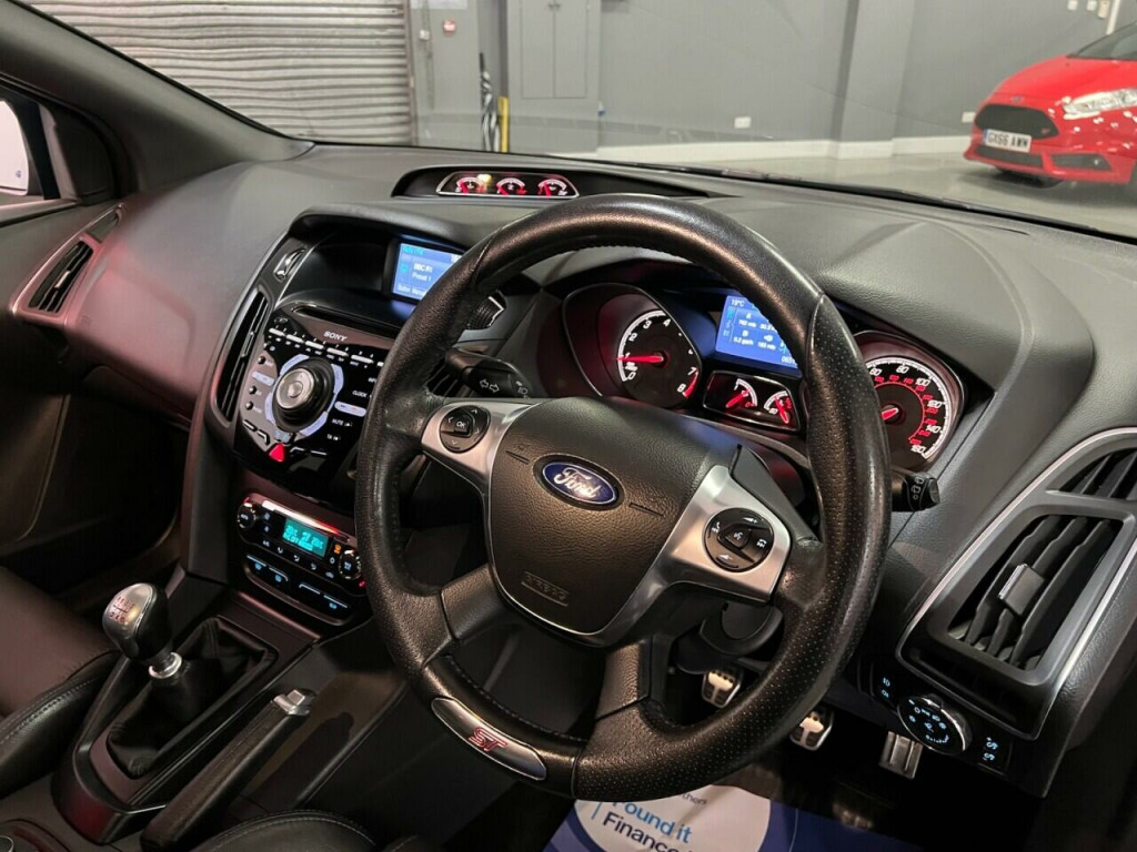 . 12V Power Socket - Front, 18in Alloy Wheels - Unique ST, 4.2in TFT Display, ABS - Anti-lock Braking System, AUX Connection, Air Conditioning - Dual Zone Electronic Automatic Temperature Control, Airbags - Curtain, Airbags - Front Passenger, Airbags - Side Impact, Automatic Dimming Rear View Mirror, Automatic Rain Sensing Wipers, Bluetooth Handsfree and Voice Control, Door Handles - Body Colour, Door Mirrors - Heated - Electric - Integrated Side Indicators - Body Coloured, Drivers Airbag, EBA - Emergency Brake Assist, EBD - Electronic Brakeforce Distribution, EPAS - Electric Power Assisted Steering, ESP - Electronic Stability Programme, Electric Windows - Front and Rear with One Touch Drivers, Emergency Assistance, Emergency Brake Lights, Ford Power Starter Button, Ford SYNC, Front Fog Lights, Headlights - Automatic, Heated Front Windscreen, Heated Washer Jets, IPS - Intelligent Protection System, ISOFIX - Child Seat Attachments, Locking Wheel Nuts, Mini Steel Spare Wheel, Remote Central Locking, ST Front Door Scuff Plates, ST Full Body Styling Kit, Seats - 60-40 Rear Split Back, Seats - Front Recaro Sports, Sony CD-Radio Player-MP3 Compatibility, Sony DAB CD MP3 and USB, Speakers - x9, Steering Column - Rake and Reach Adjustment, Steering Wheel - 4 Spoke Leather Trimmed, Steering Wheel - Multifunction, Suspension - Sports, TVC - Torque Vectoring Control, Thatcham Category 1 Alarm, Traction Control - TC, Trip Computer, Tyre Pressure Monitoring System, USB Connection - iPod Connectivity, Unique ST Floor Mats - Front and Rear, Unique ST Leather Gearshift Knob, Unique ST Rear Spoiler, Unique ST pedals, Voice Control - Audio, Spirit Blue, Sony DAB Premium Sound System - Includes Ford Sync, Sony DAB Navigation System, Driver Assistance Pack, Active City Stop, Door Edge Protectors, ST Style Pack, Rear Privacy Glass.