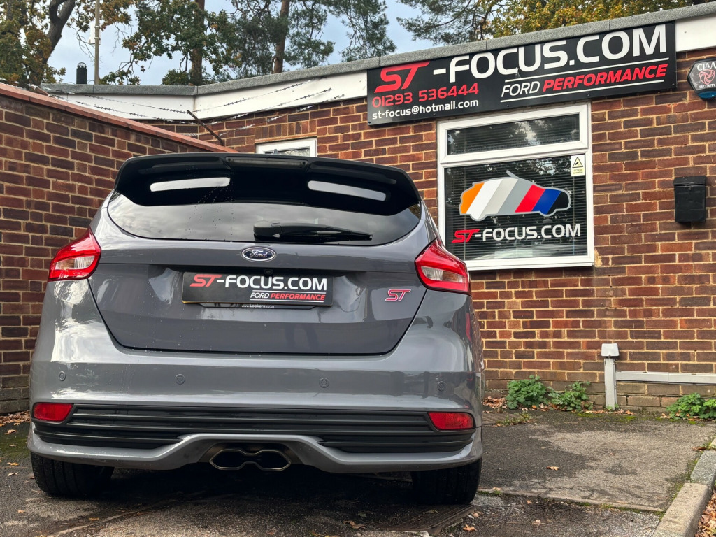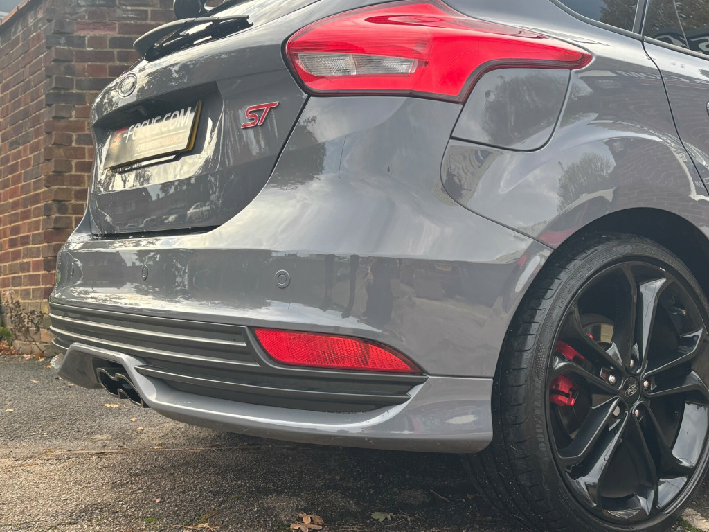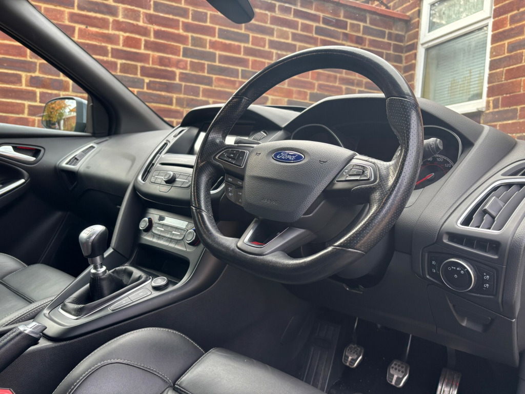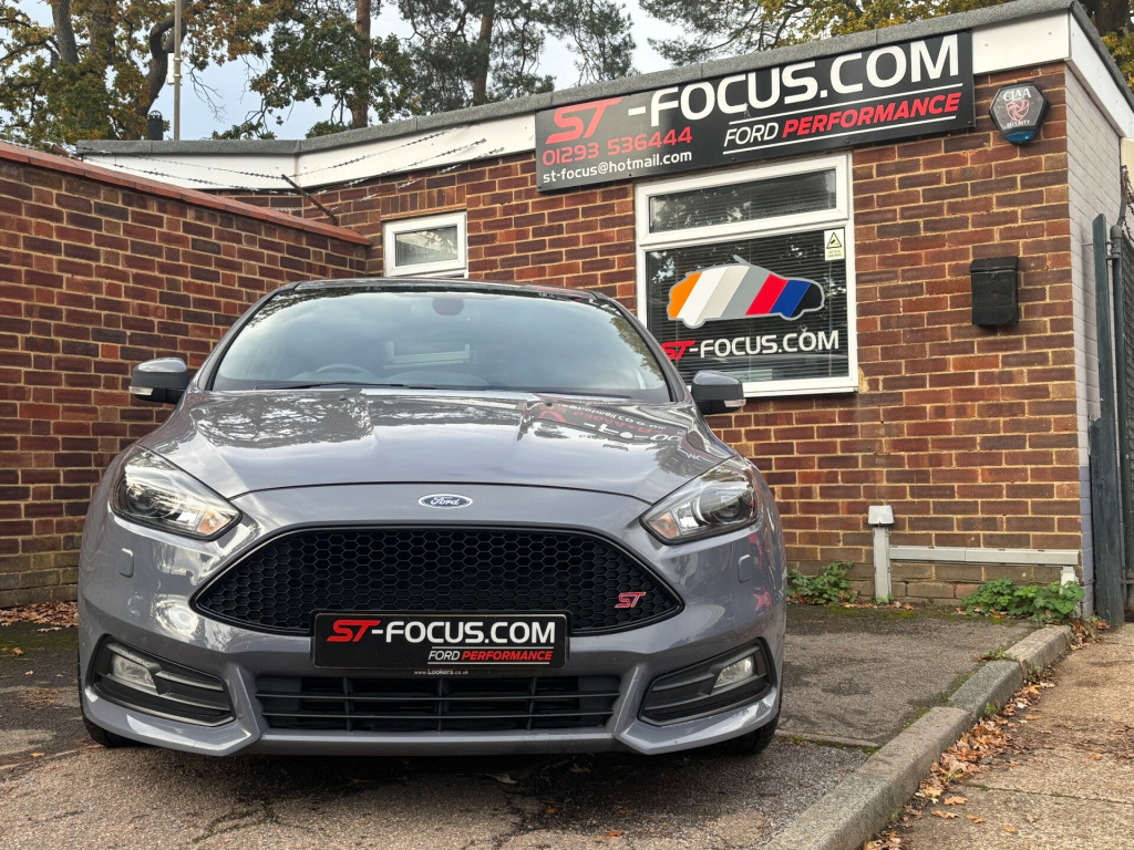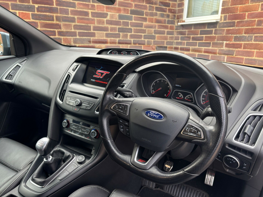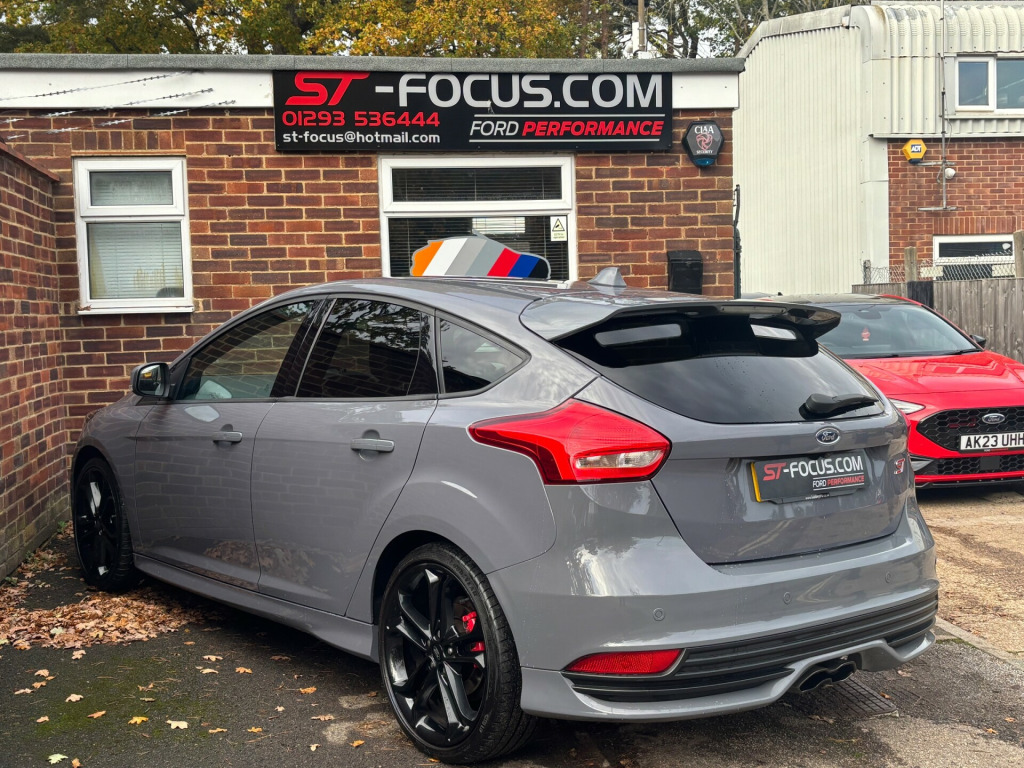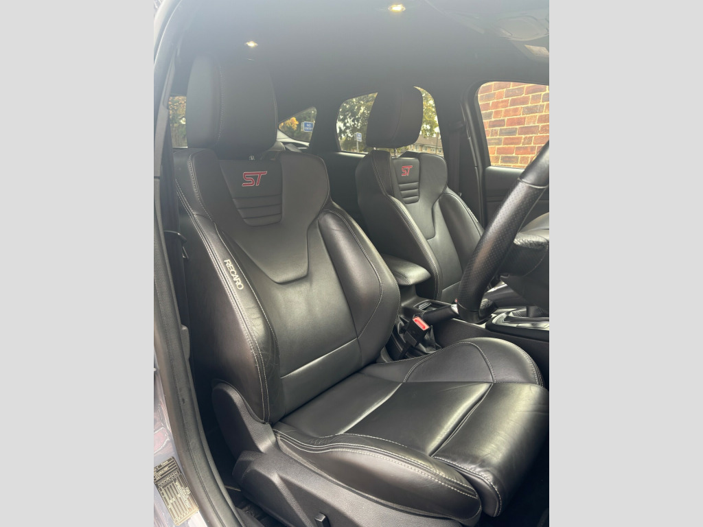 We are pleased to offer this beautiful Stealth Grey Focus ST-3.This car has never been modified it is completely standard and original. Also comes with FULL SERVICE HISTORY. This car has been cherished and very well maintained! The service history comprises of Ford Main Dealer and Matt Lewis Motorsport a very reputable ST/RS specialist. This car also comes with added SECURITY (Please contact for more information).It comes with a great factory spec including:*RECARO FULL LEATHER HEATED AND ELECTRIC SEATS.*CRUISE CONTROL.*SAT NAV.*SYNC 3 MEDIA SYSTEM.*SPARE WHEEL.*REAR PARKING SENSORS.*REVERSE CAMERA.*STYLE PACK WHICH INCLUDES RACE RED BRAKE CALIPERS AND ILLUMINATED 'ST' DOOR SILLES.*19'' GENUINE FORD UPGRADED FROM FACTORY GLOSS BLACK ALLOY WHEELS.*MUCH MORE!We can offer finance on this vehicle and we also accept part exchange if required..... Please be aware if a third party finance company is used there will be a small admin fee applied.WWW.ST-FOCUS.COM 01293 536444.Email: ST-FOCUSHOTMAIL.COM'THE ORIGINAL FORD PERFORMANCE SPECIALISTS!' ar parking sensor, trip computer, front fog lights, led daytime running lights, 18'' Alloys