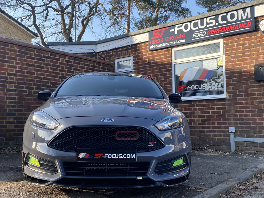 We are pleased to offer this absolutely stunning Stealth Grey ST-3.We supplied this car just over a year ago and we just had to buy it back into stock as it really is a one off it has had a fortune spent in upgrades and has been so well looked after its whole life by real enthusiasts. The spec of modifications is amazing and has had all of the highest quality parts fitted! Also comes with FULL SERVICE HISTORY! With every invoice for maintenance and any parts purchased.The spec list is as follows:*DREAMSCIENCE ULTIMA MAPPING WITH IMAP HANDSET. *DREAMSCIENCE EXHAUST SYSTEM*AIRTEC STAGE 2 INTERCOOLER*SUMMIT FRONT STRUT BRACE*KW V3 COILOVERS*WHITELINE DROPLINKS.*UPGRADED GENUINE FORD MK3 RS BREMBO BIG BRAKES .*GENUINE FORD RS EDITION ALLOY WHEELS FINISHED IN SATIN MAGNATITE.*AIRTEC QUICKSHIFTER.*MOUNTUNE UPRATED RECIRC VALVE*AIRTEC PRO HOSES BOOST HOSE UPGRADE KIT.*MAXTON DESIGNS REAR VALANCE IN STEALTH GREY.*DELTA STYLING FRONT SPLITTER AND SIDE SKIRT EXTENSIONS*COMES WITH ADDED SECURITY (For more info please give us a call).This car is remarkable the attention to detail is a real credit to the previous owner.We can offer finance on this vehicle and we also accept part exchange if required... Please be aware if a third party finance company is used there will be a small admin fee applied.WWW.ST-FOCUS.COM 01293 536444.EMAIL: ST-FOCUSHOTMAIL.COM'THE ORIGINAL ST SPECIALISTS!' r bag, power steering, trip computer, rear parking sensor, front fog lights, led daytime running lights, 18'' Alloys