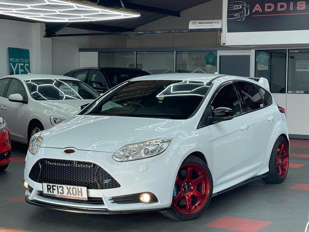 3 MONTHS PARTS AND LABOUR WARRANTY, 12 MONTHS AA BREAKDOWN COVER, FULL SERVICE HISTORY, MOT VALLID UNTIL 04/2026,, Full Exhaust (including Sports, Catalytic Convertor), Airtec Intercooler, Uprated Exhaust Hanger,, Uprated Gearbox mount,, Quaife Limited Slip Differential. Polly Bushing (Powerflex ), The Gearbox was Rebuilt the same time as the LSD install and Carbon Fibre Syncro Mesh was installed from gears 1-5,, Hybrid Turbocharger,, Ford Mustang Throttle Body, Airtec Large Crossover Pipe, K&N Air filter System,, Ford Focus Mk3 RS Clutch Upgrade, Uprated American Driveshafts Both Sides,, Throttle Body Spacer,, Bola B1 Candy Red (unmarked ) Alloy Wheels with Michelin ps5 235/40/18, Tyres All Round, Ford Focus mk3 RS Brembo Front Calipers in Nitrous Blue with RS Brake Discs and RS Brake Hoses,, Focus RS Spoiler In Frozen White, Rear Maxton Bumper Diffuser,, Dash Cam Front and Back,, Front Center Console and Panels Carbon Wrapped, Maxton Side Skirts and Front Bumper Splitter Kit, Smoked Rear LED Lights, Painted colour Coded Mist Washer Jets, Neon Blue ST Kick Plates,, We offer affordable car financing options with competitive APRs, including Zero deposit options, making it easier for you to get the car you want. Applying for finance and signing the agreement can be conveniently done online. Once everything is finalized, you can choose to have the car delivered to your doorstep or arrange a convenient collection time. Please note we deliver cars for only £99+fuel cost for any distance in the Uk between our store and your delivery location. There is also a 5-day Drive-Away insurance available. Our business takes great care in providing our customers with the best service possible from start to finish,, Family run business since 2005 that you can trust,, For further information please contact us on 07724 656445
