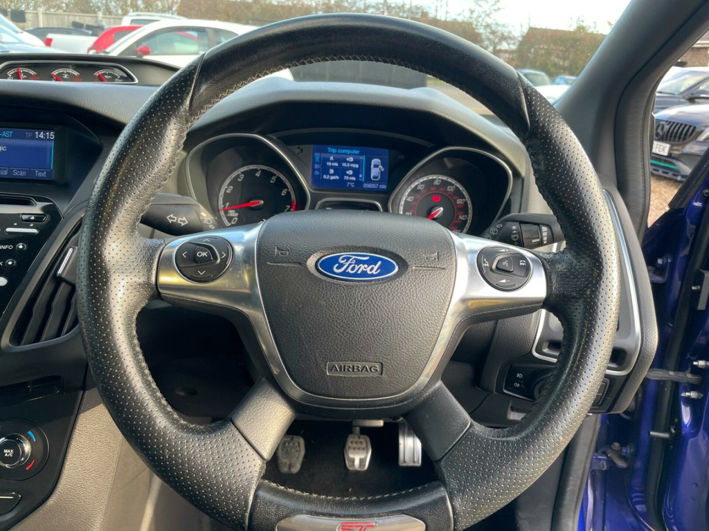 FREE 12 MONTHS AA BREAKDOWN COVER, 6 MONTHS NATIONWIDE WARRANTY, Just been serviced, Service history, all previous Mot's avail. We are located in CANVEY ISLAND, ESSEX SS8 0QDThis 2013 Ford Focus ST-3 presents an exceptional opportunity with its remarkably low mileage of just 56,000 miles. Under the bonnet, it boasts a powerful 2.0 litre petrol engine, capable of accelerating from 0 to 62 miles per hour in a swift 6.5 seconds. The ST-3 trim level ensures a premium experience, featuring key comforts such as heated seats for both the driver and front passenger, and the convenience of keyless entry. For enhanced practicality, this Focus includes rear parking sensors to aid manoeuvring and Bi-Xenon headlights for superior visibility.The DEATC dual-zone electronic automatic temperature control system allows for personalised comfort for both front occupants, ensuring a pleasant environment regardless of the weather outside. These carefully selected features, combined with the vehicle's impressive performance figures, demonstrate a higher standard compared to other similar models. This Ford Focus ST-3 offers a compelling blend of exhilarating driving dynamics and refined comfort, making it a standout choice for discerning drivers.. 12V Power Socket - Additional Front, 12V Power Socket - Additional Rear, 12V Power Socket - Front, 18in Alloy Wheels, 4.2in TFT Display, ABS - Anti-lock Braking System, AUX Connection, Airbags - Curtain, Airbags - Front Passenger, Airbags - Side Impact, Armrest - Centre Console, Automatic Dimming Rear View Mirror, Automatic Rain Sensing Wipers, Bi-Xenon Headlights, Black Roof Rails, CD storage, Central Locking - Keyless Entry, Centre Console with open Stowage Bins, City Pack, DAB Digital Radio, DDS - Deflation Detection System, DEATC - Dual-Zone Electronic Automatic Temperature Control, Drivers Airbag, EBA - Emergency Brake Assist, EBD - Electronic Brakeforce Distribution, EPAS - Electric Power Assisted Steering, ESP - Electronic Stability Programme, Emergency Brake Lights, Ford Easy-Fuel Capless Refuelling System, Ford Power Engine Start-Stop Button, Ford SYNC, Front Fog Lights, Front Grille - Chrome, Headlights - Jet Wash, Headlights - Static Cornering Lights, Heated Driver and Passenger Seats, Heated Front Windscreen, Heated Washer Jets, IPS - Intelligent Protection System, LED Daytime Running Lights, Locking Wheel Nuts, Mini Steel Spare Wheel, Open Stowage Bins, Parking Sensor - Rear, Rear Lights - Dark Smoke Tinted LED, Rear Seat - Two height adjustable head restraints, Rear Spoiler - Body Colour, Recaro Sculpted 3-Seater Rear Bench Seat, ST Front Door Scuff Plates, ST Full Body Styling Kit, Seats - Drivers Electric Adjustment, Seats - Front Recaro Sports, Seats - ISOFIX Mounting Brackets for Child Seats, Sony Radio-CD, Sports tuned suspension, Steering Wheel - 4 Spoke Leather Trimmed, TVC - Torque Vectoring Control, Thatcham Category 1 Alarm, Tonneau Cover, Traction Control - TC, Trip Computer, USB Connection, Unique ST Floor Mats - Front and Rear, Unique ST Instrument Cluster Binnacle, Unique ST Leather Gearshift Knob, Unique ST Rear Spoiler, Unique ST pedals, Voice Control - Audio, Z-Shape Handbrake.
